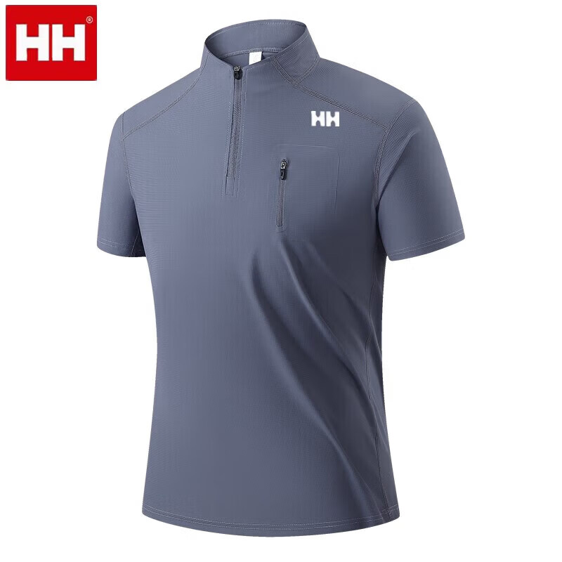 HHT恤男夏季户外运动短袖休闲速干衣半拉链冰丝立领上衣 深蓝 XL【1 海丽汉森(HH)黑色 海丽汉森(HH)6XL【220-240斤左右】