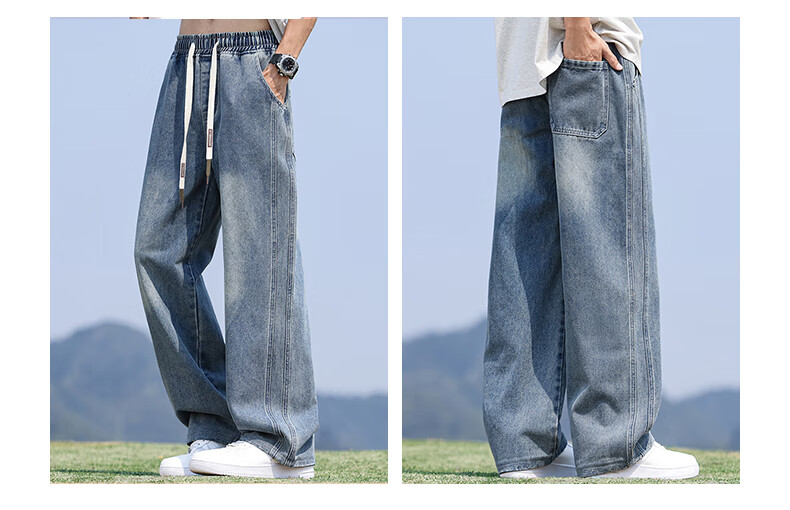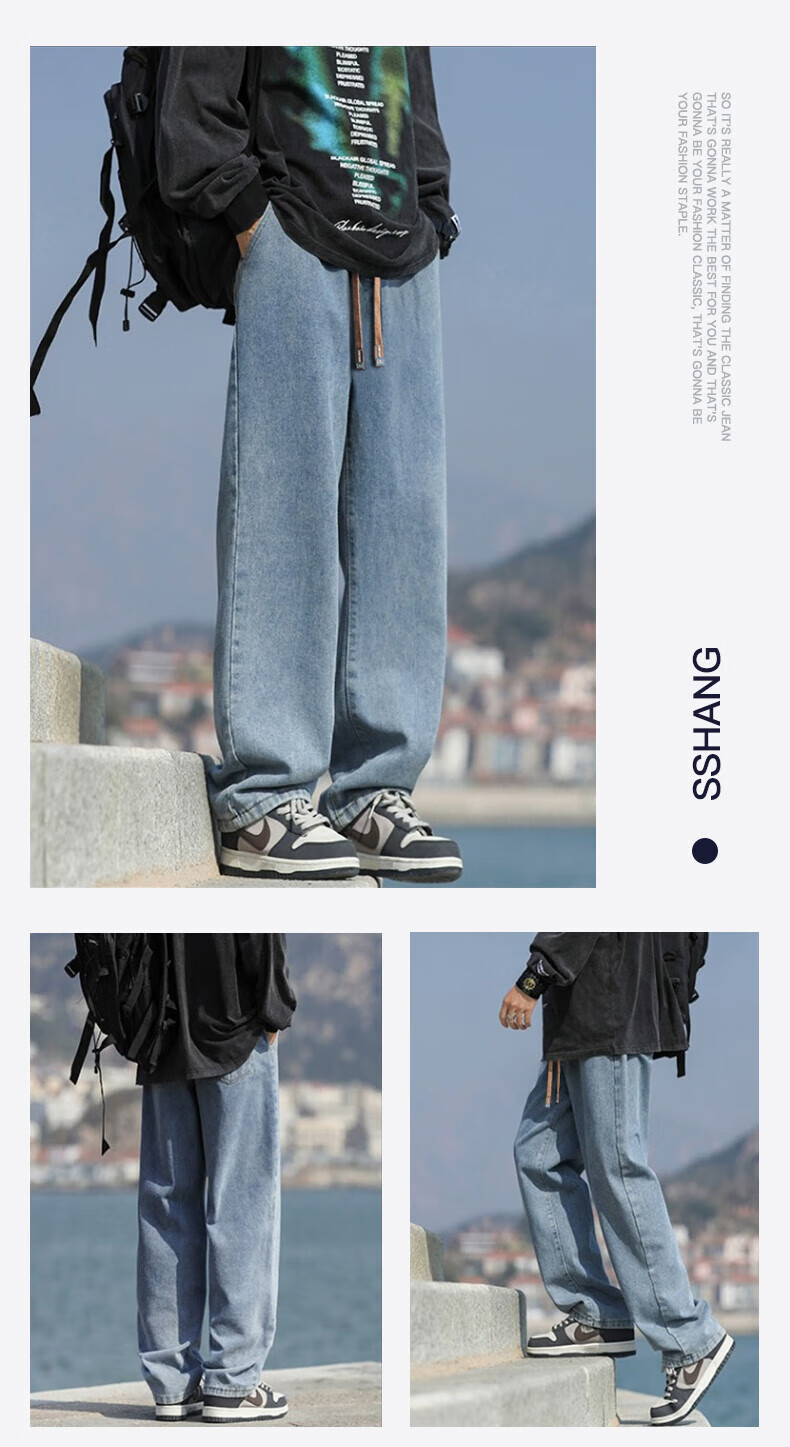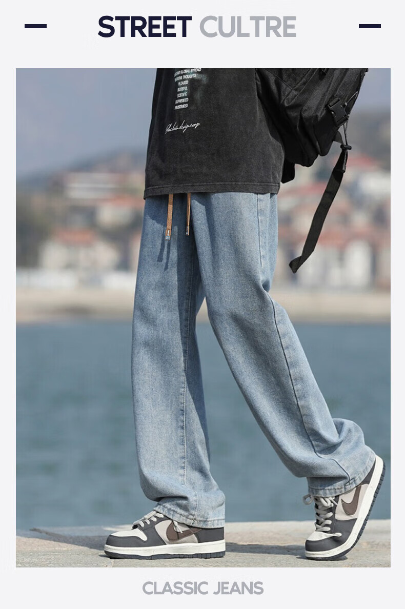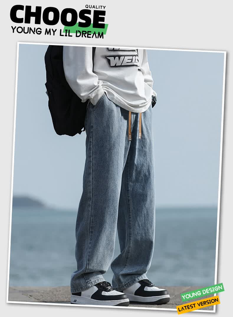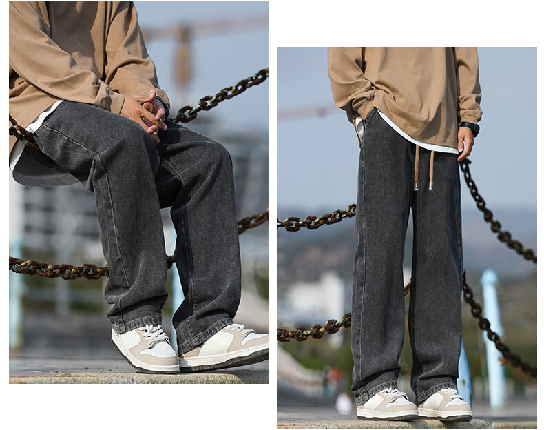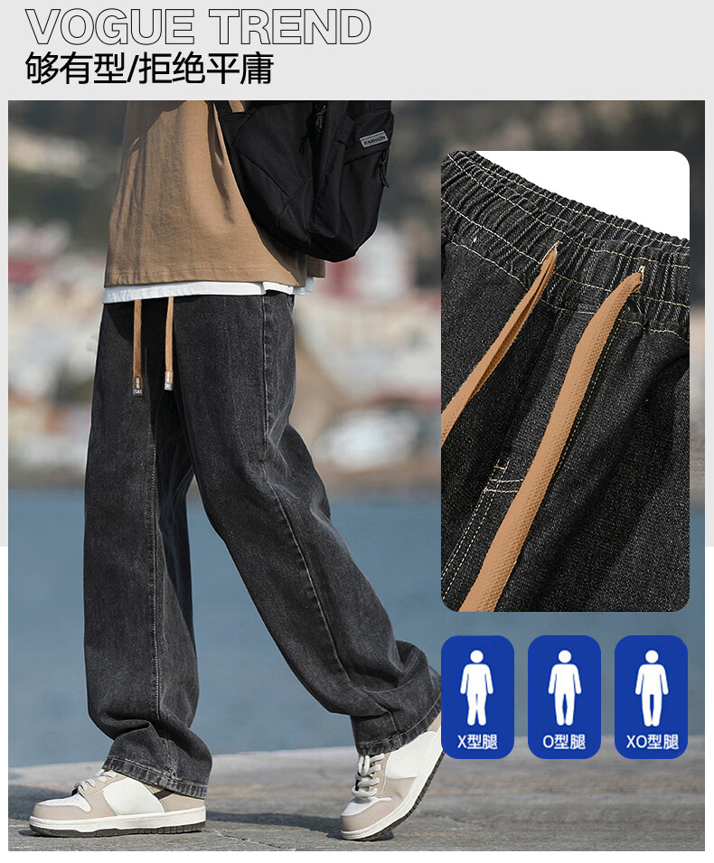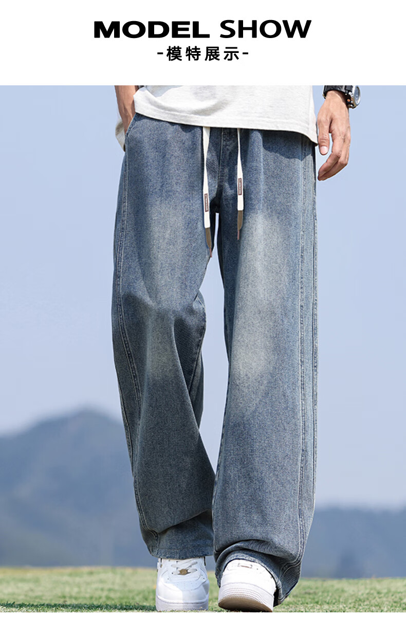 回力牛仔裤男春夏季男士美式裤子男宽松直筒休闲裤男阔腿裤子百搭男裤