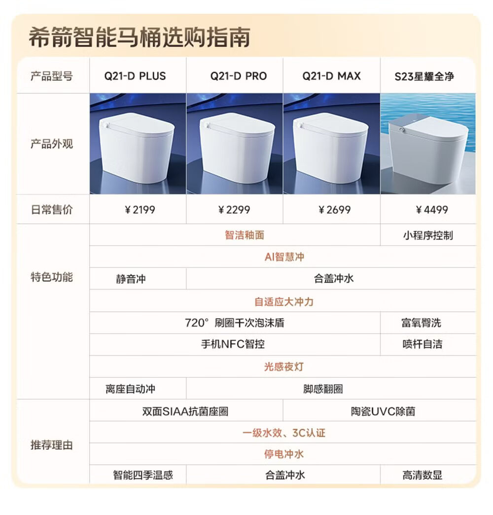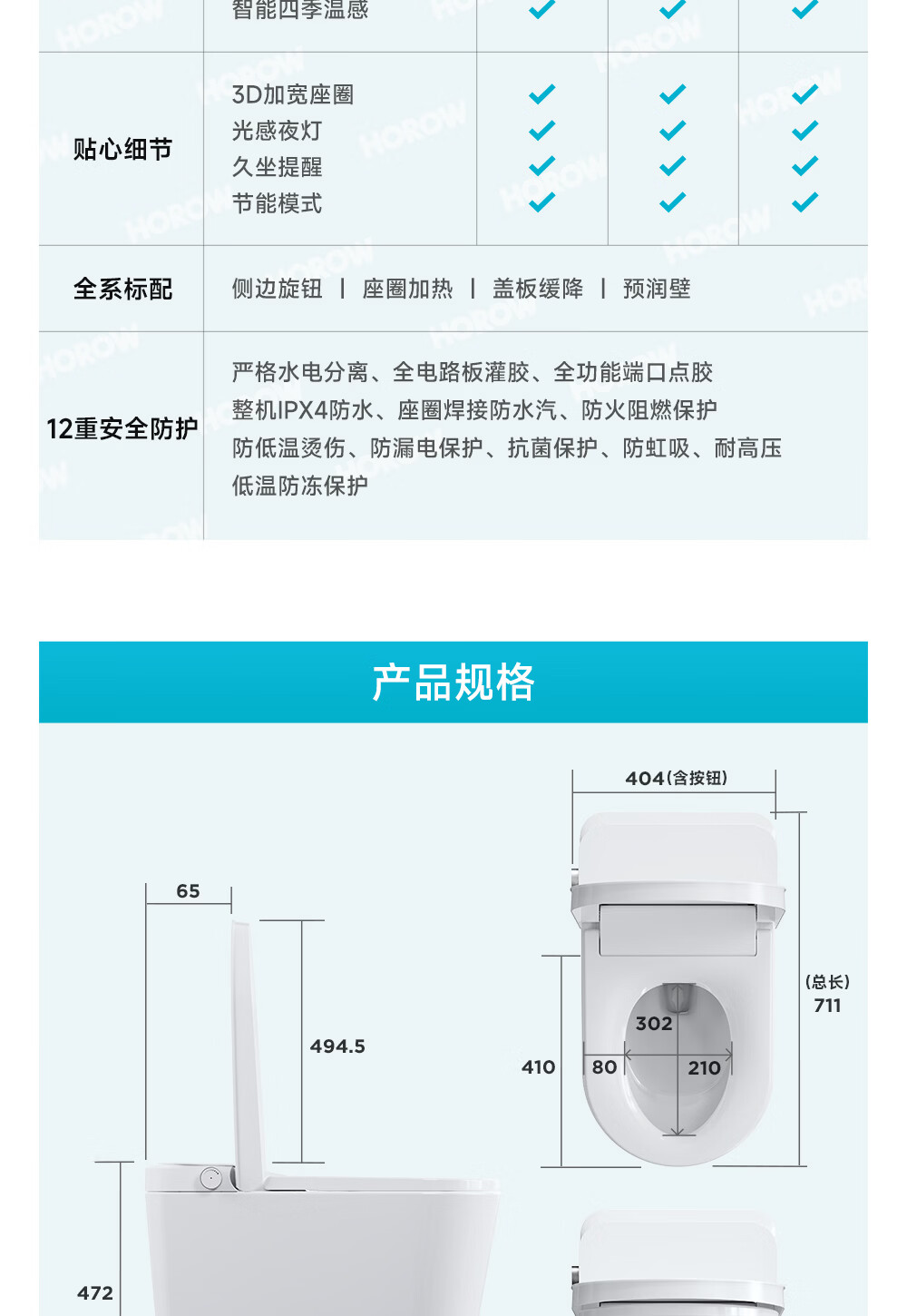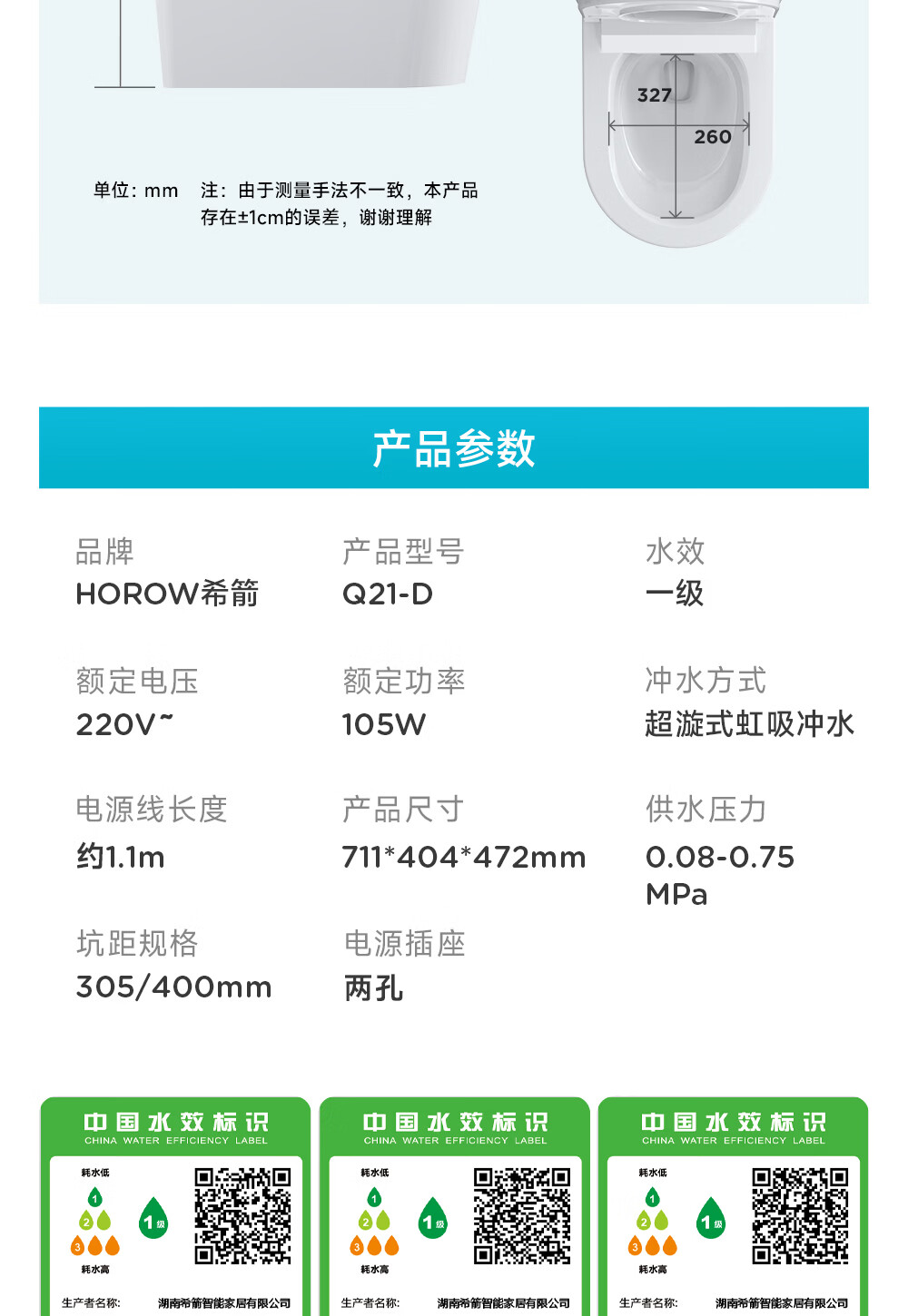 希箭(HOROW)轻智能马桶Q21-DMaxUVC除菌NFC智控开盖CZNT159051【305mm】