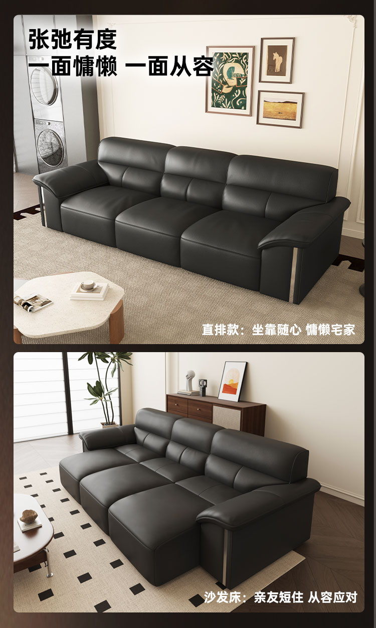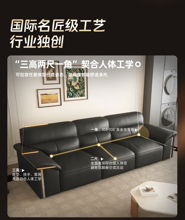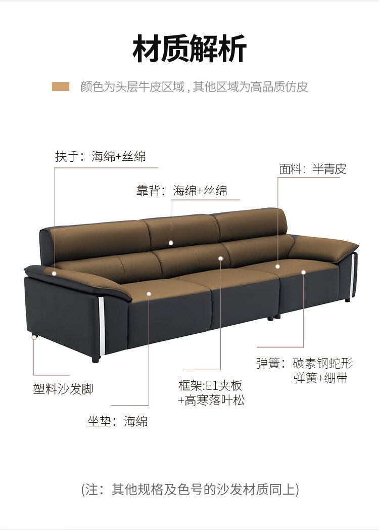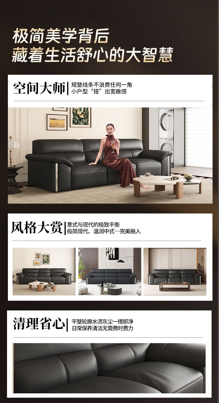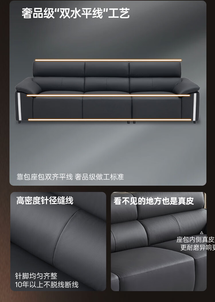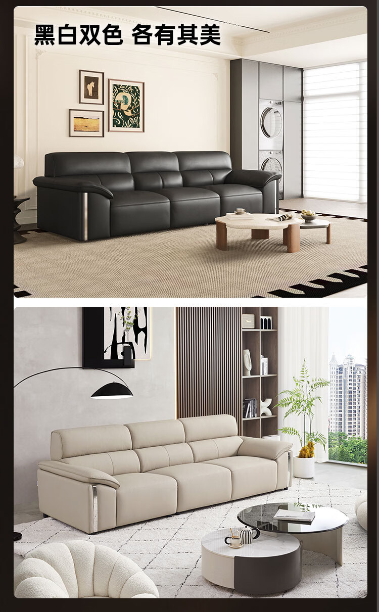左右大黑牛真皮沙发现代简约客厅轻奢升级款半青皮中小型家具DZY6050 [5]轻奢半青皮 2.76m三人位柔茶白