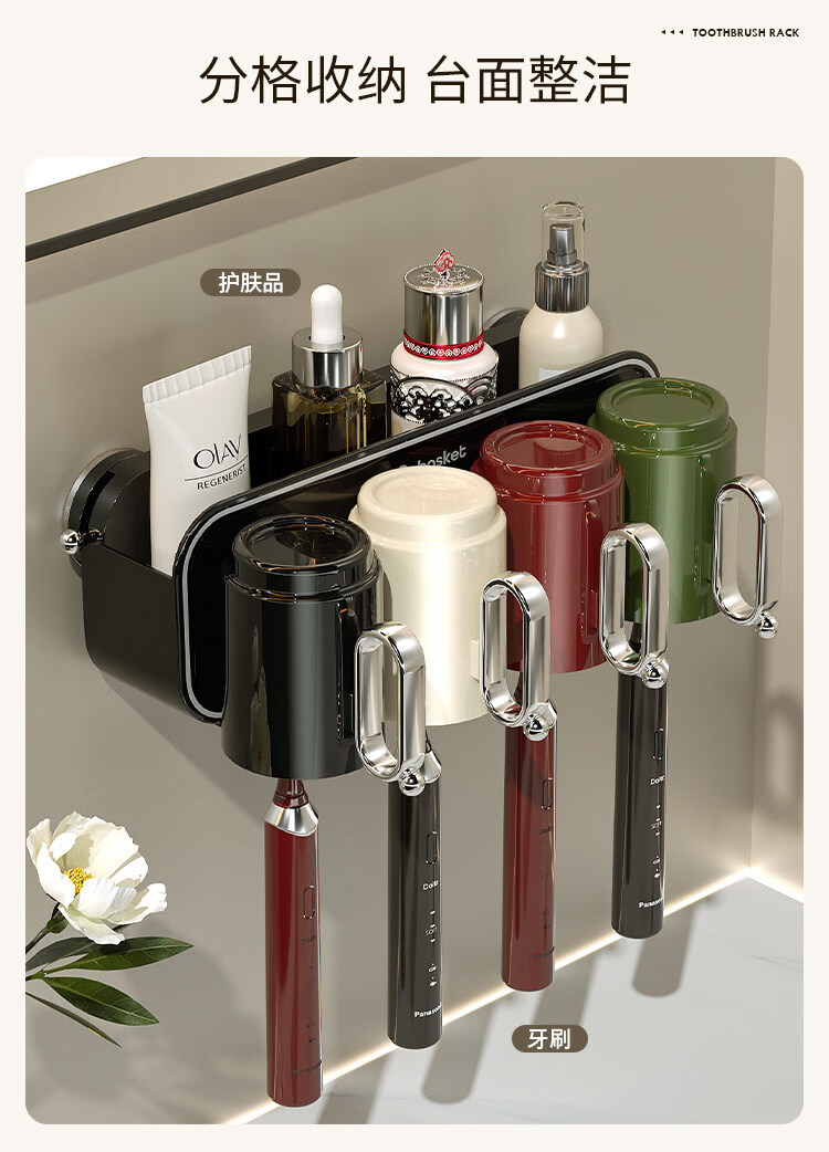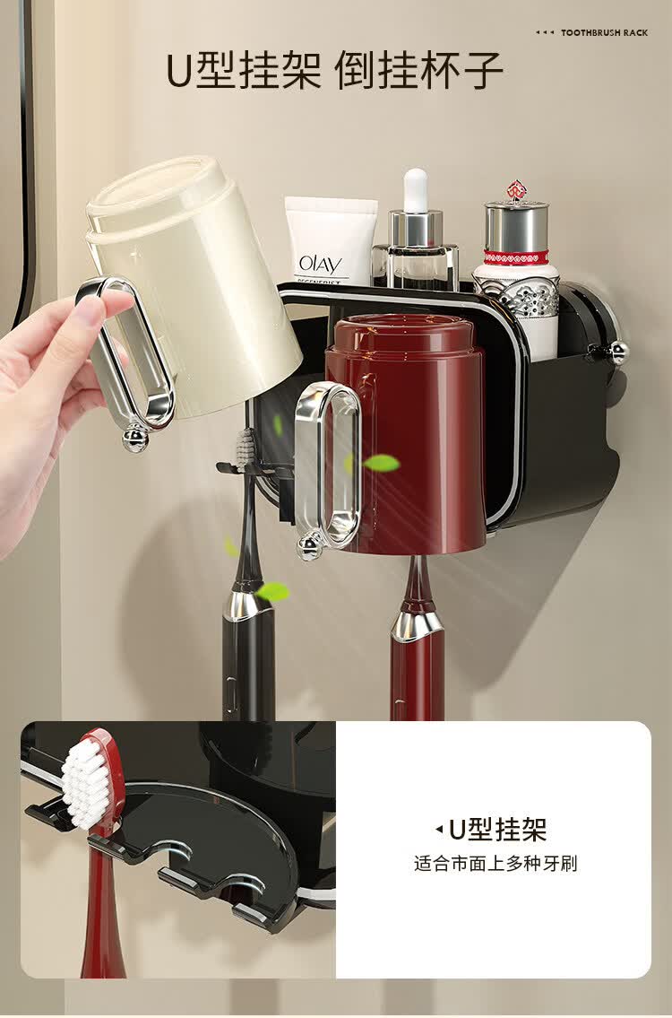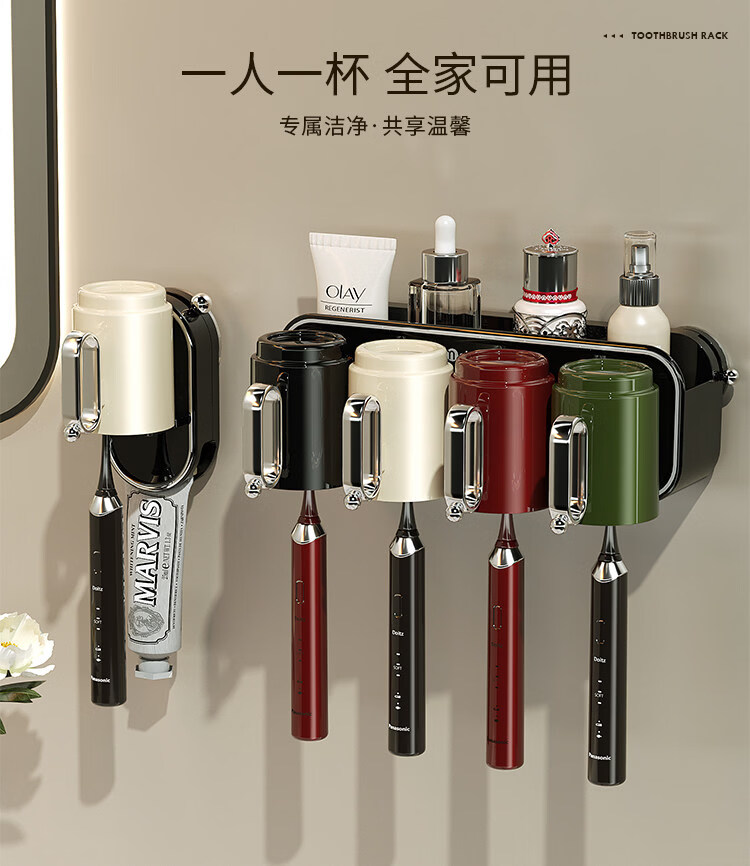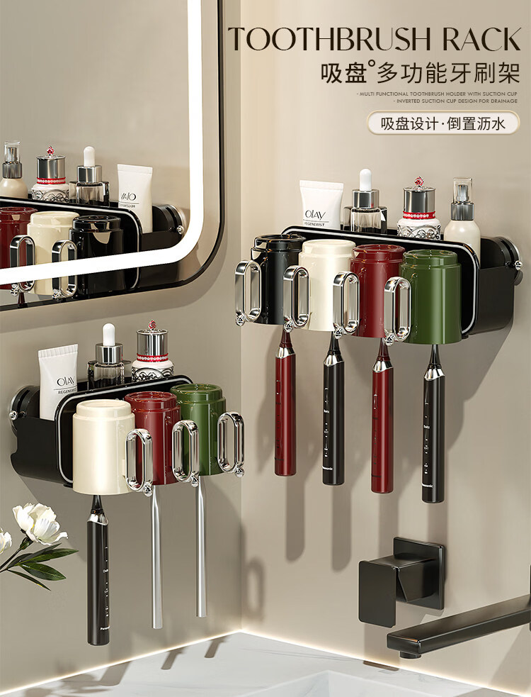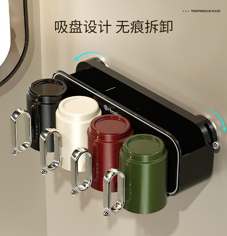 艾仕可(ASCOR)吸盘牙刷置物架壁挂式刷牙漱口杯收纳架卫生间免打孔牙膏牙杯架子 混合色两杯【情侣款】