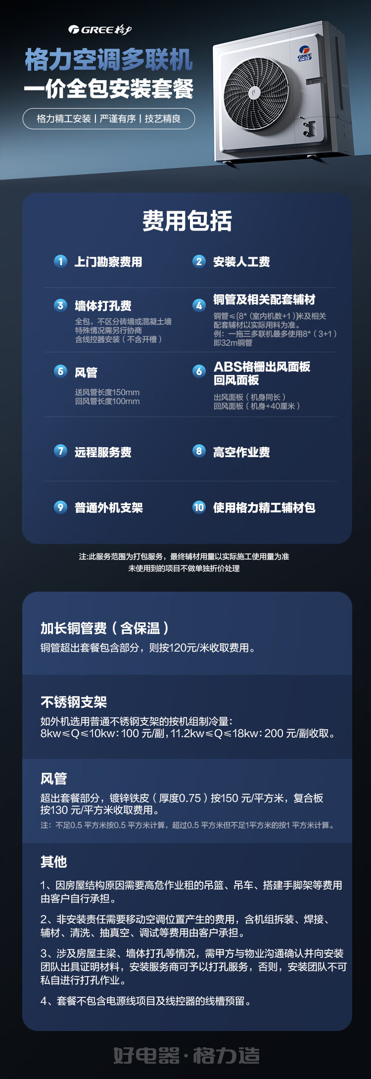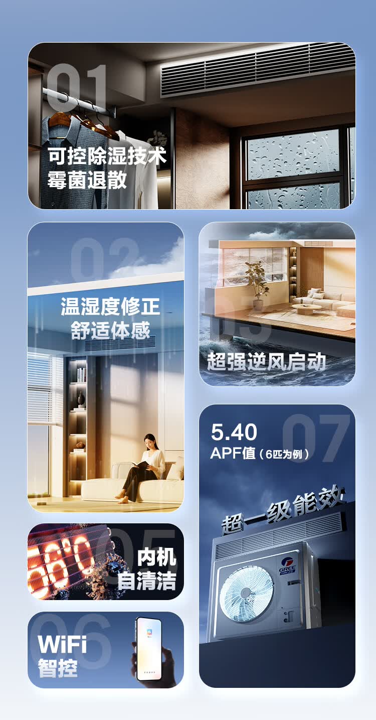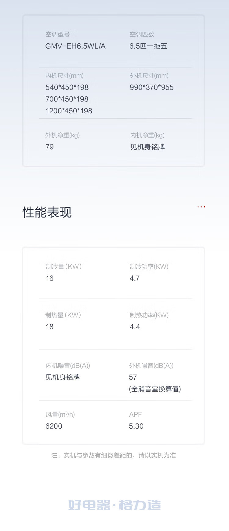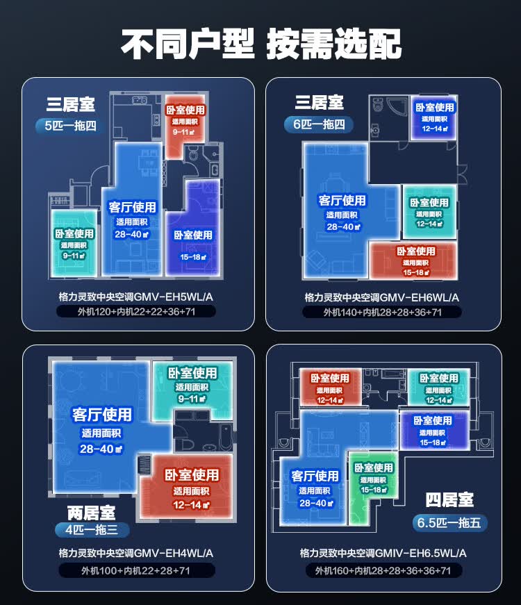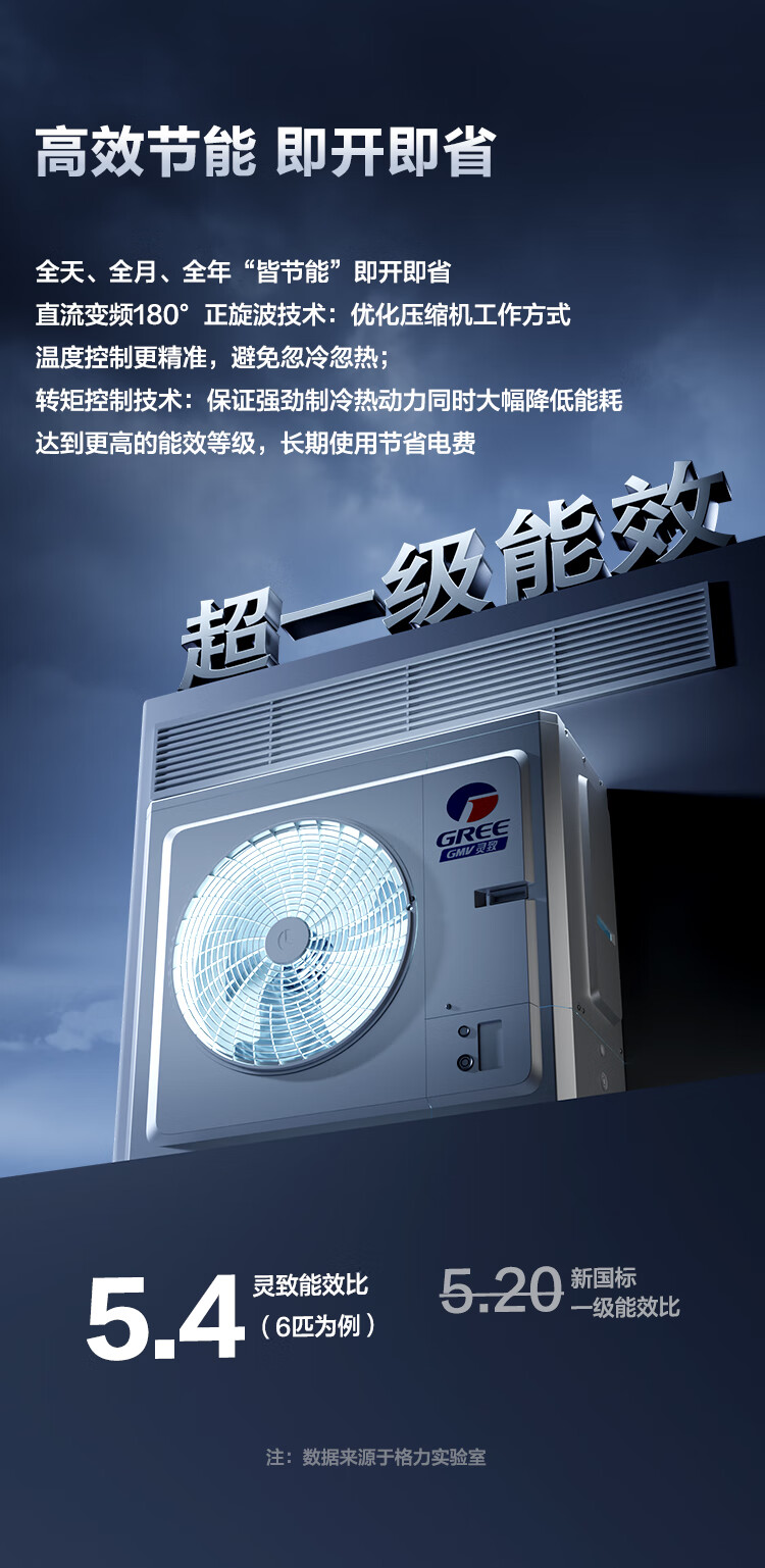 格力中央空调 灵致Pro多联机大6匹GMV-EH6.5WL/B 一拖五 四室一厅 一价全包 精工安装