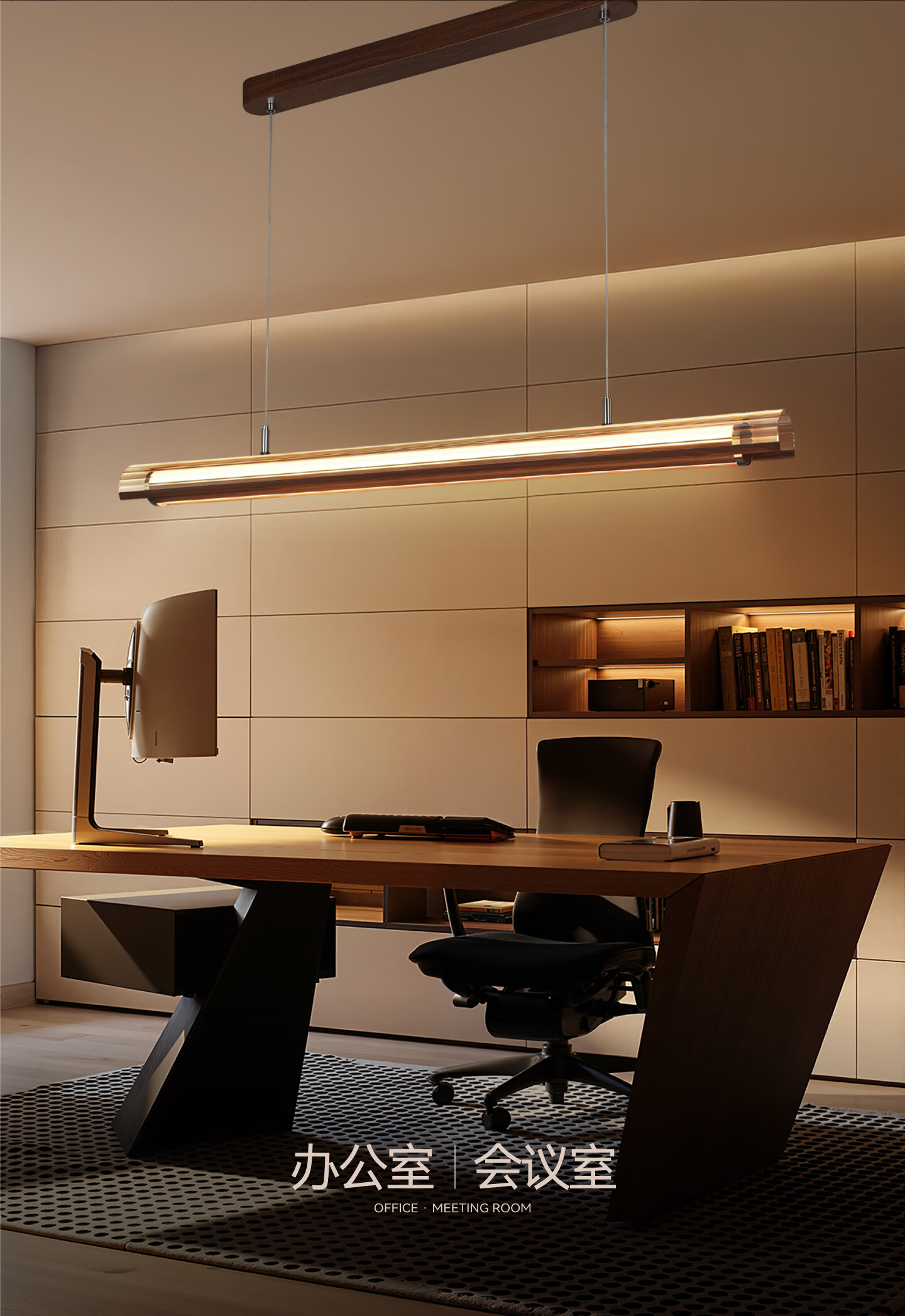 亮源方办公室吊灯LED长条灯会议教室超市吊线灯具商业写字楼健身房照明 黑色120*28cm高亮白光6个装