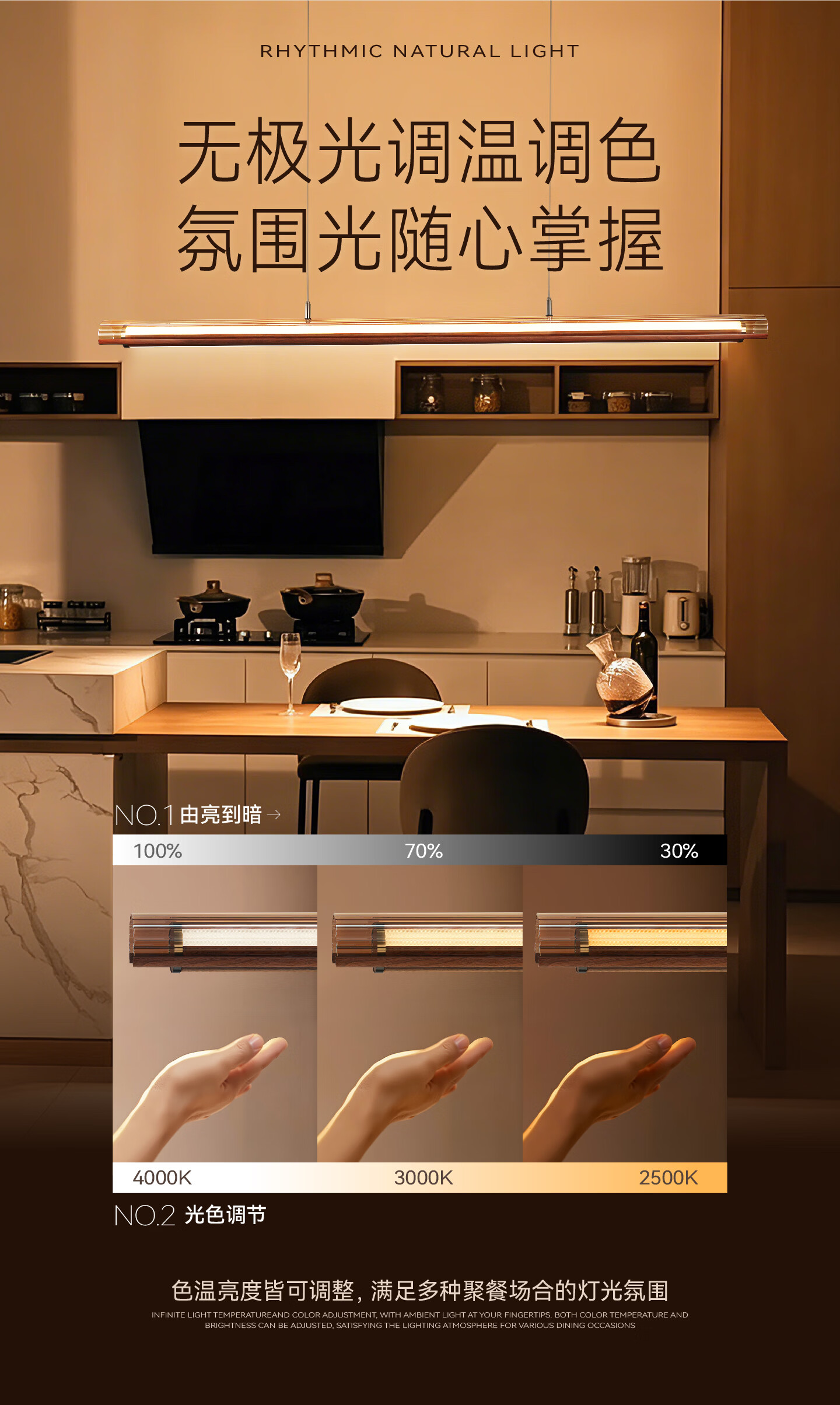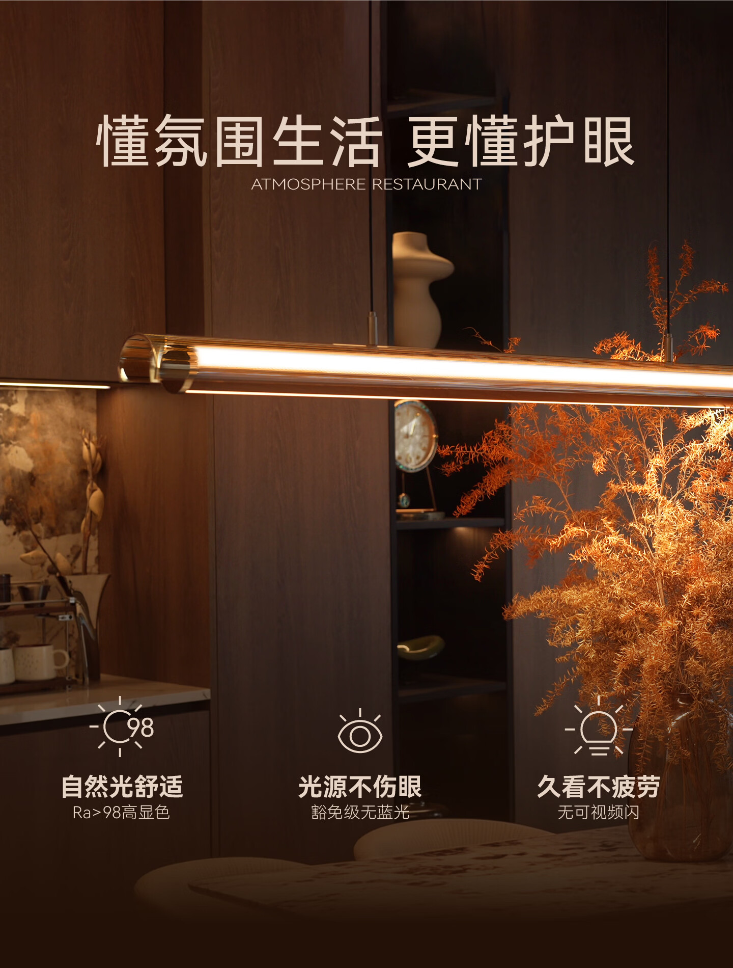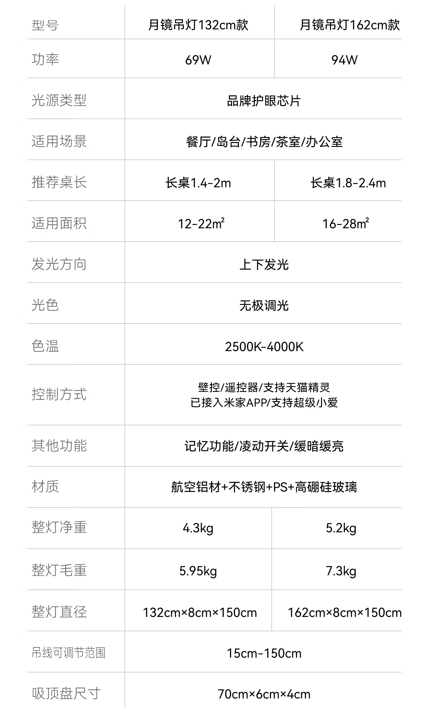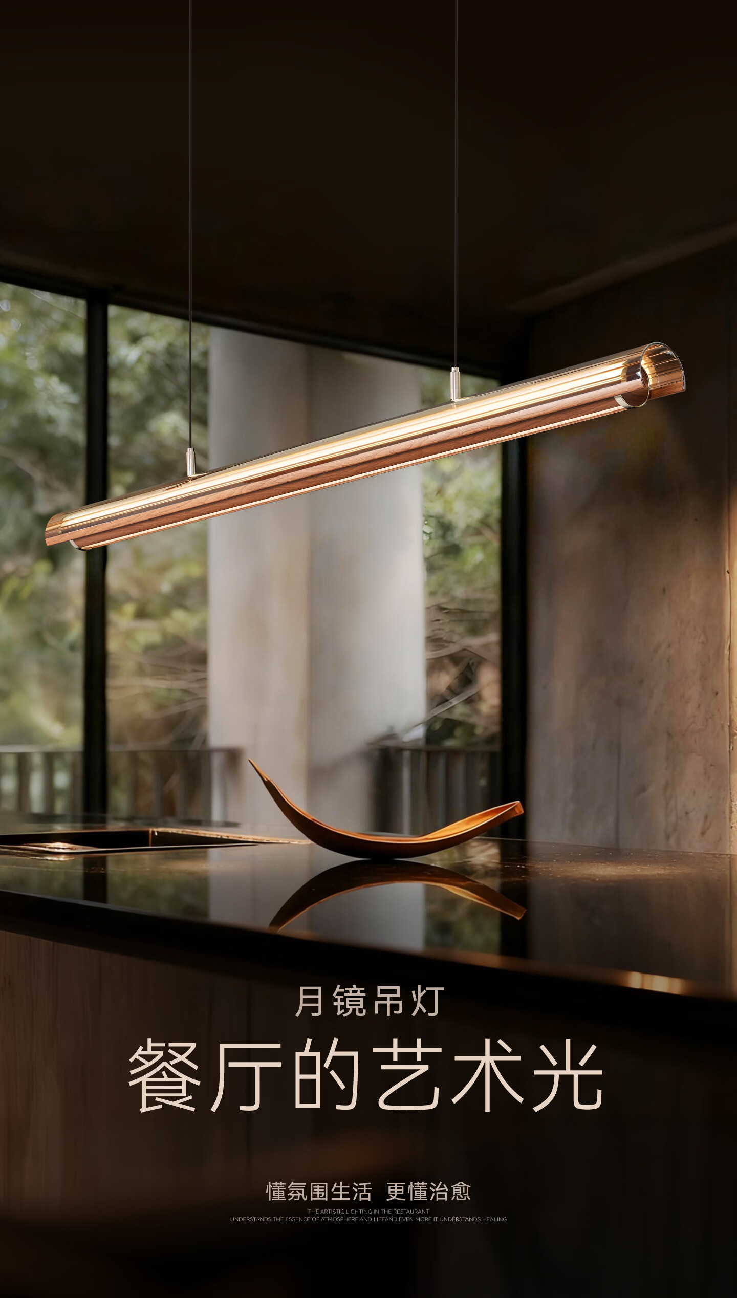 鹿家良品(LUUGAA)月镜餐厅吊灯意式轻奢现代茶室岛台餐桌高端一字长条灯 【1代】全光谱132cm推荐1.4~2m长桌三色光