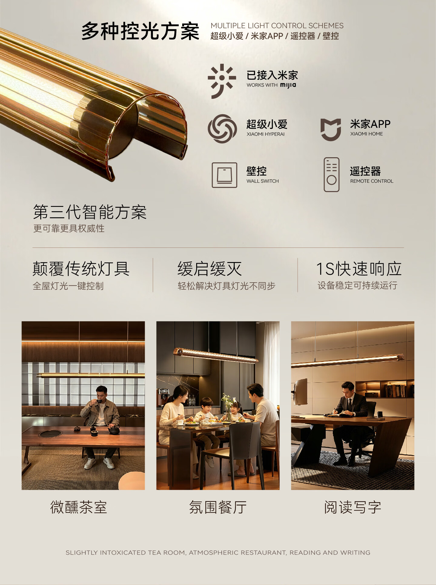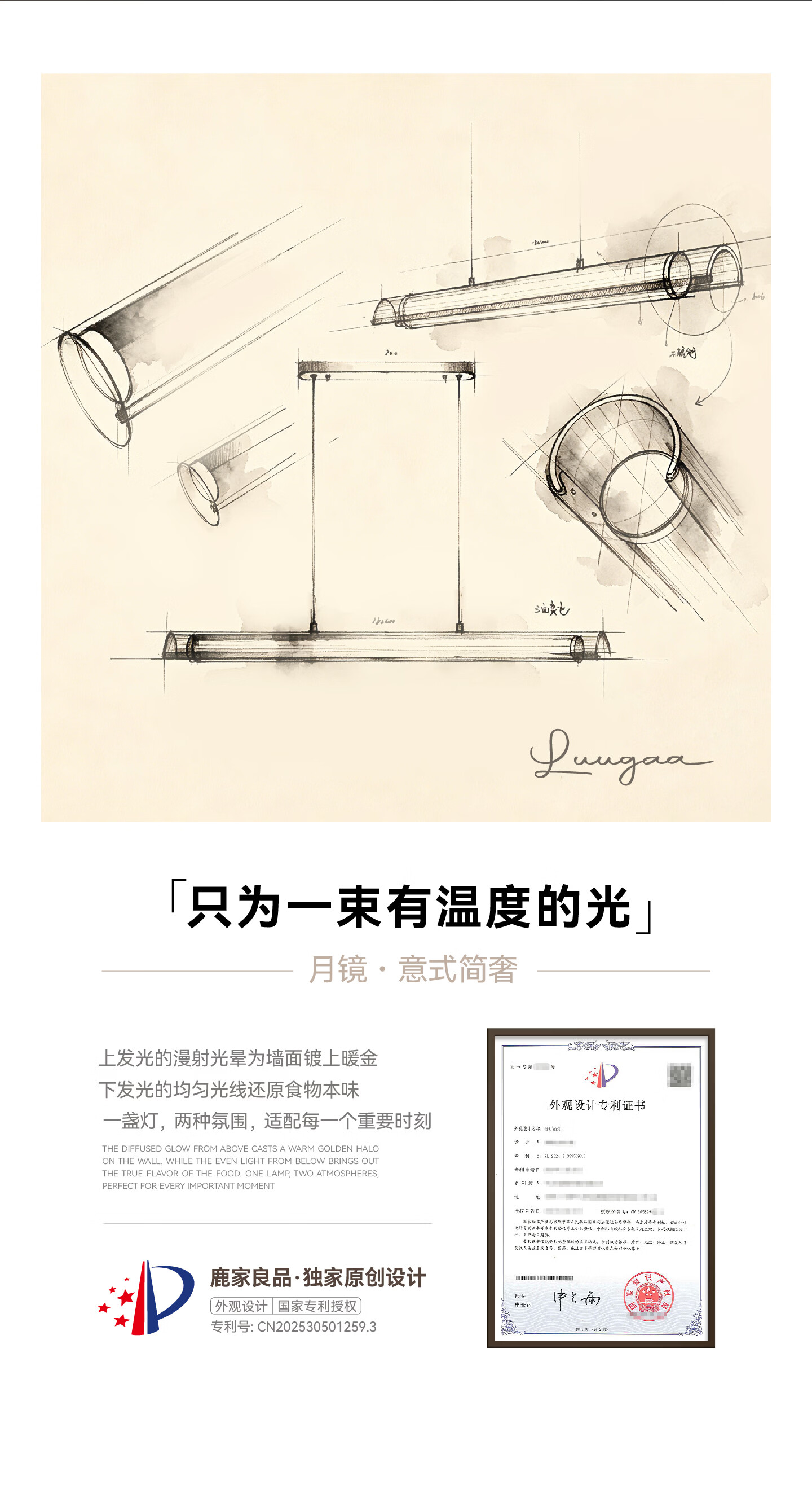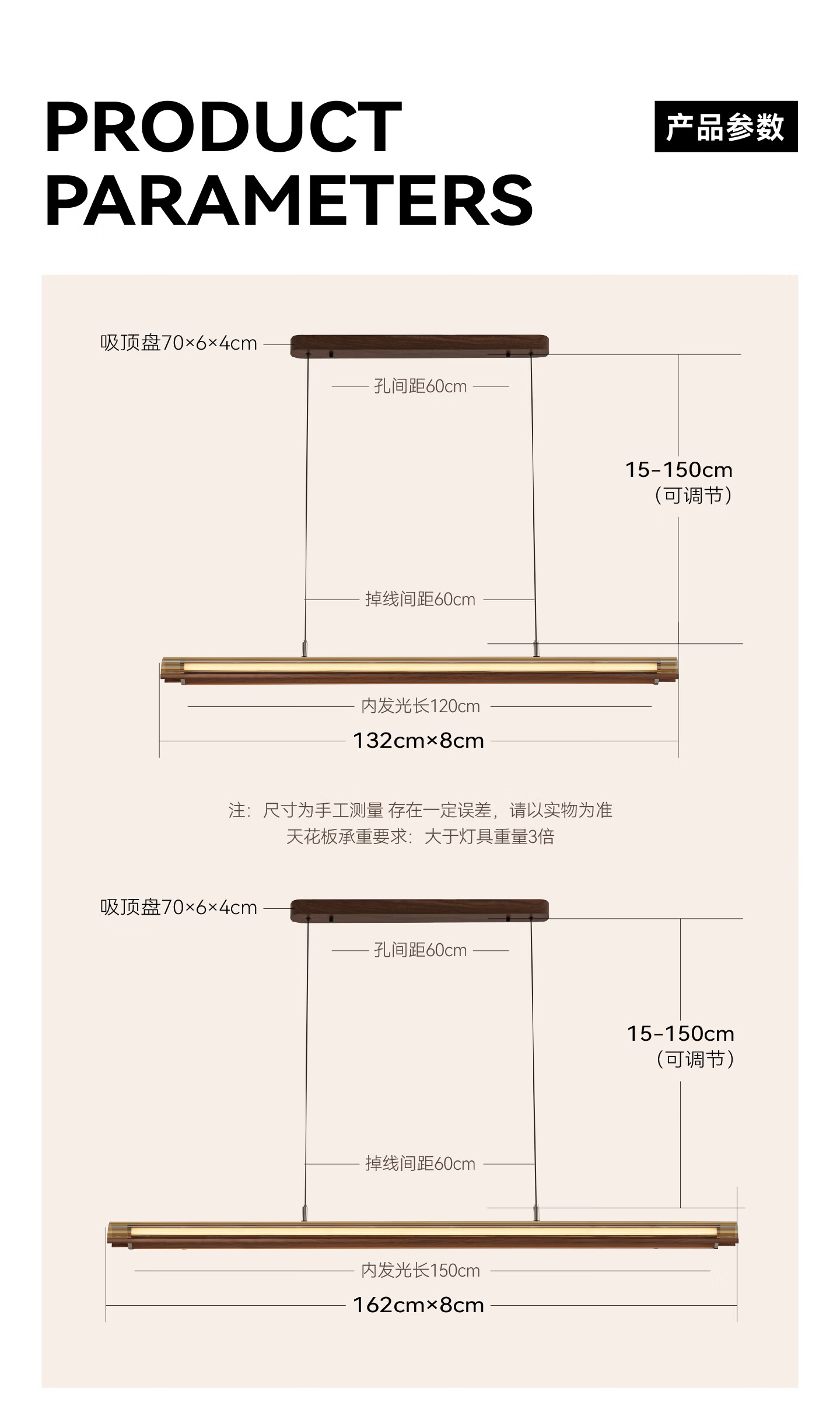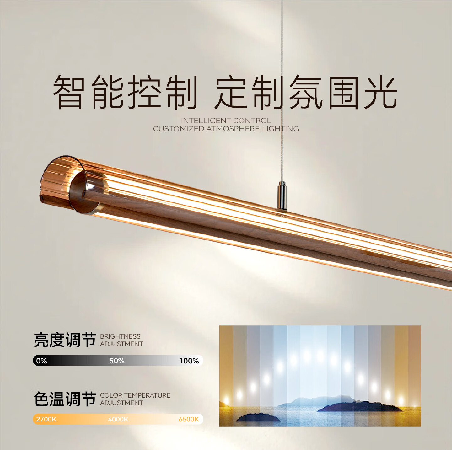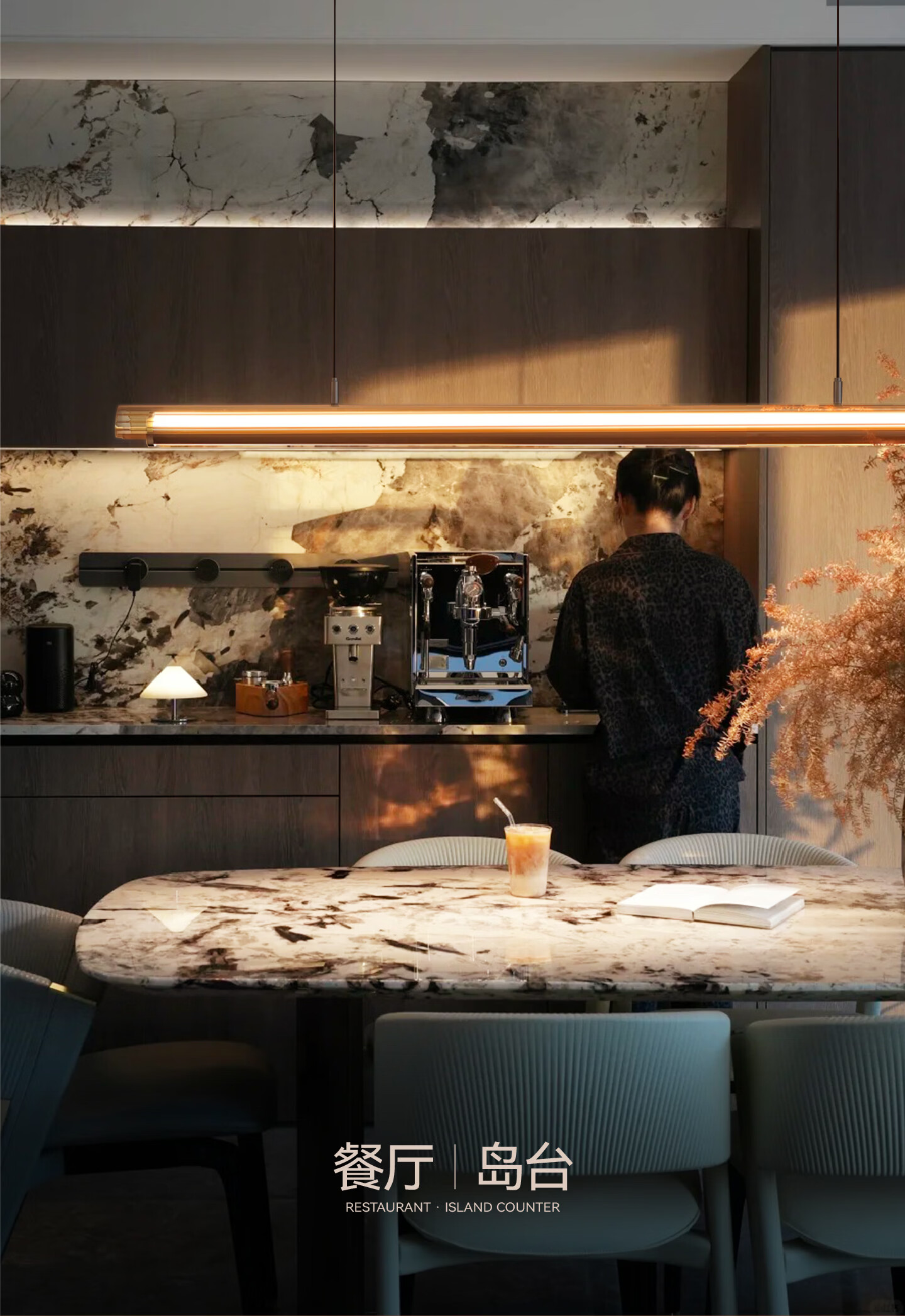 鹿家良品(LUUGAA)月镜餐厅吊灯意式轻奢现代茶室岛台餐桌高端一字长条灯 【1代】全光谱132cm推荐1.4~2m长桌三色光