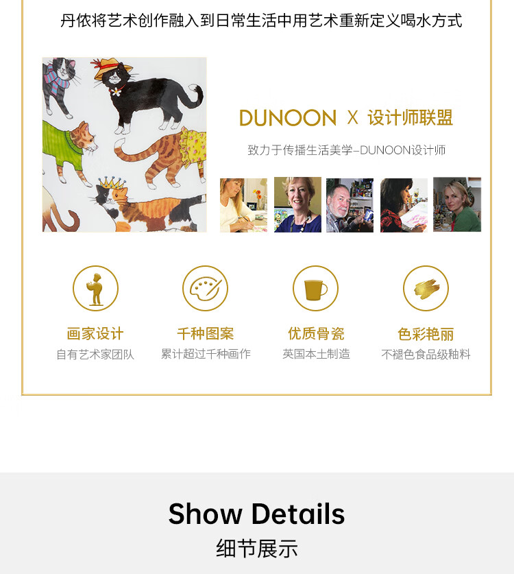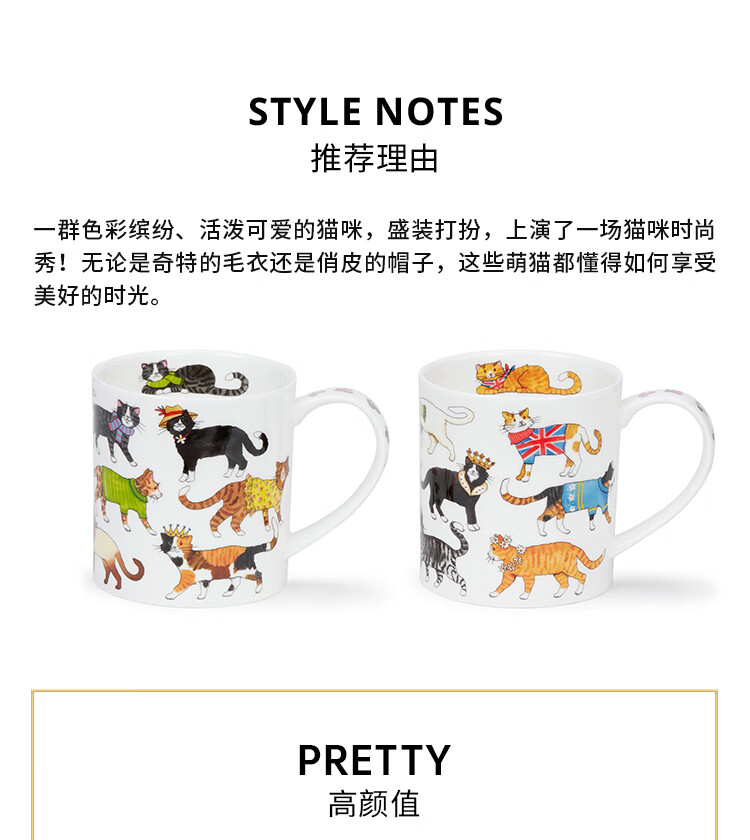 丹侬(DUNOON)英国骨瓷马克杯 潮喵咖啡杯陶瓷可爱水杯猫咪杯子情侣杯 礼盒装 潮喵-帽子(350ml)