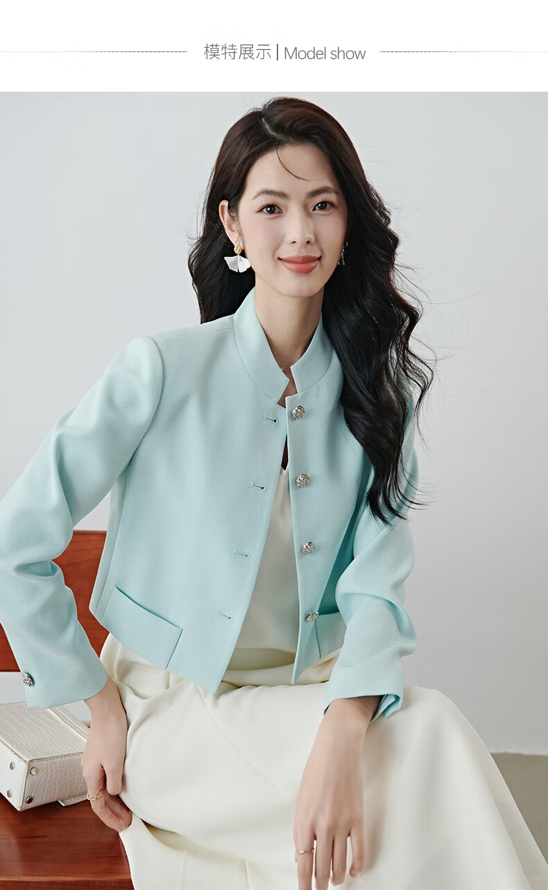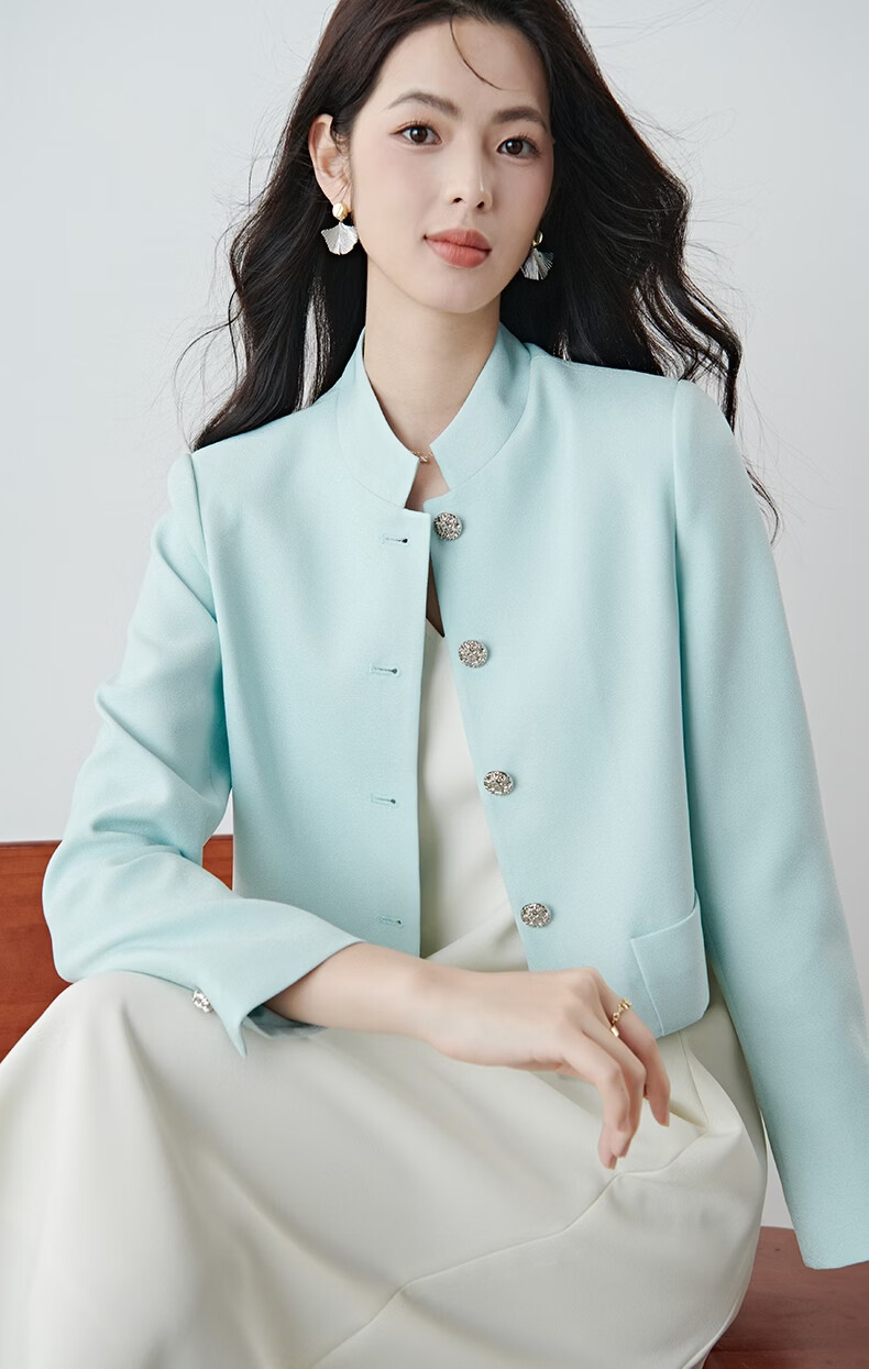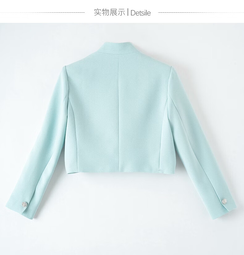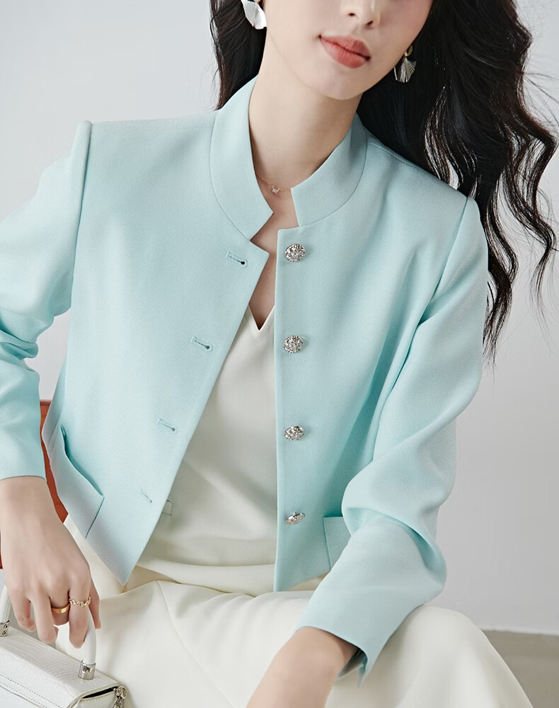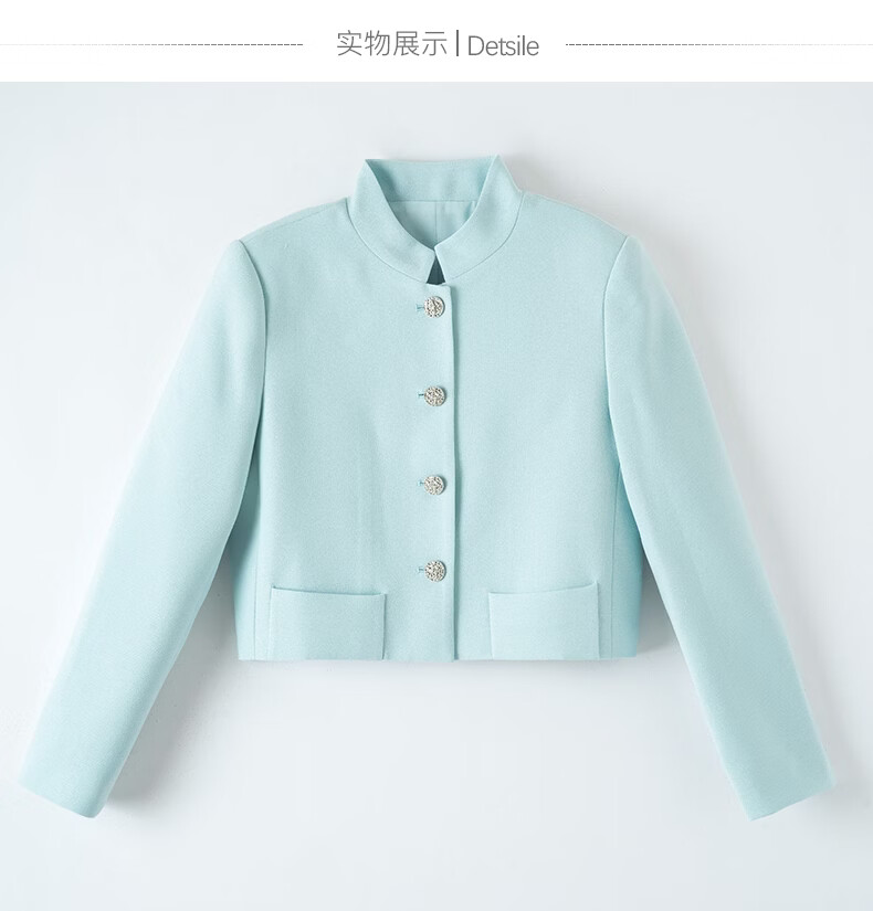 晚白2026春薄荷曼波千金风时尚肌理感立领上衣挺括利落短款小个子外套 浅蓝色 S