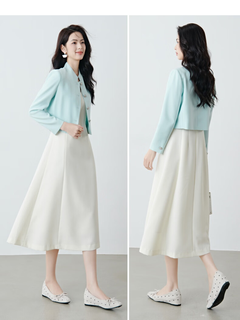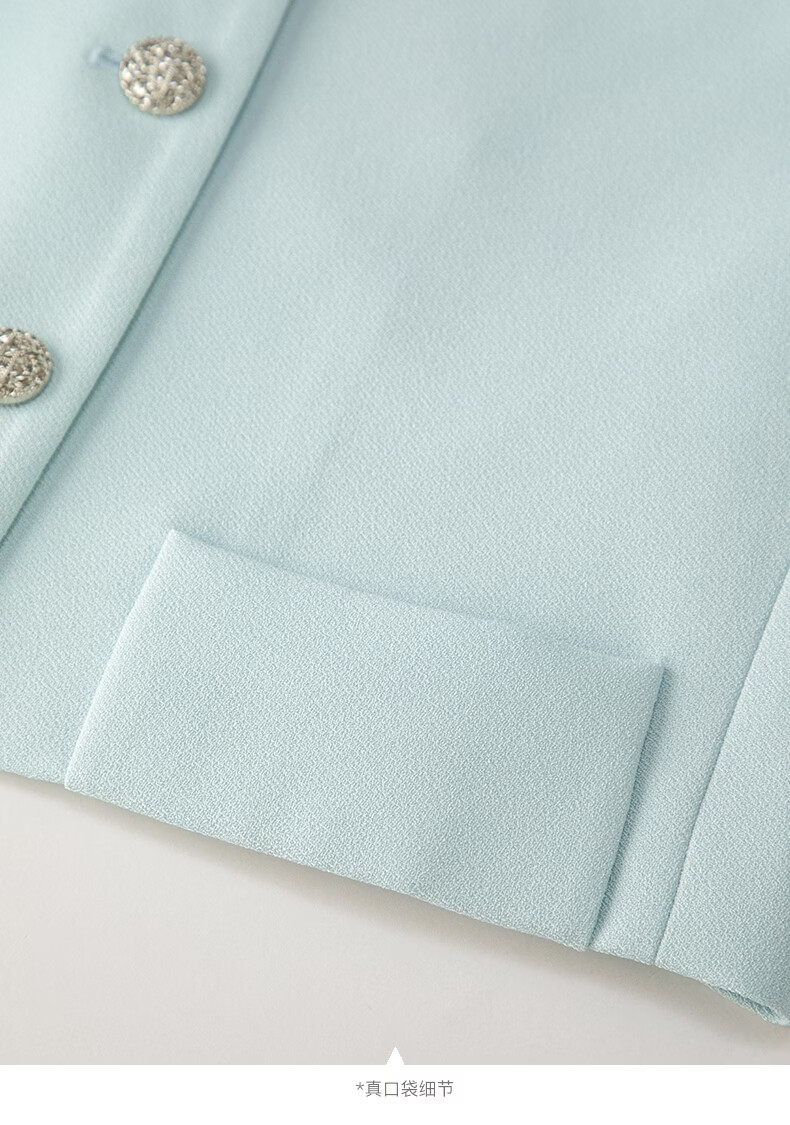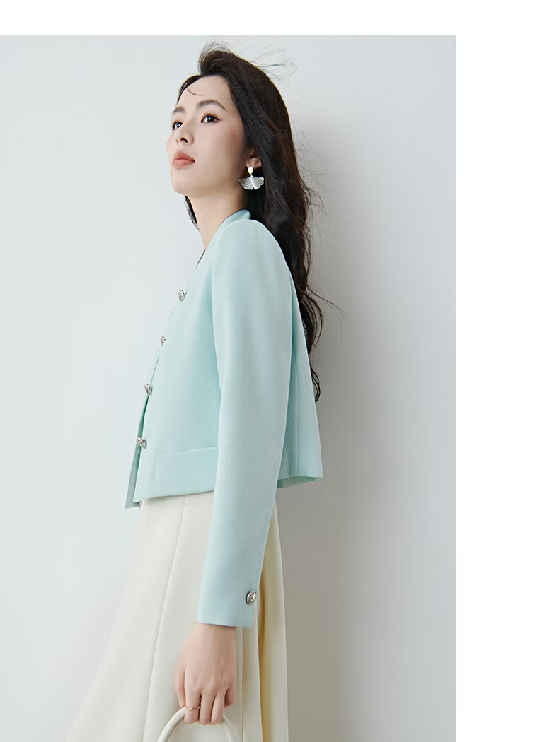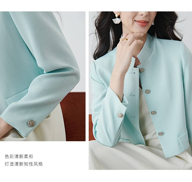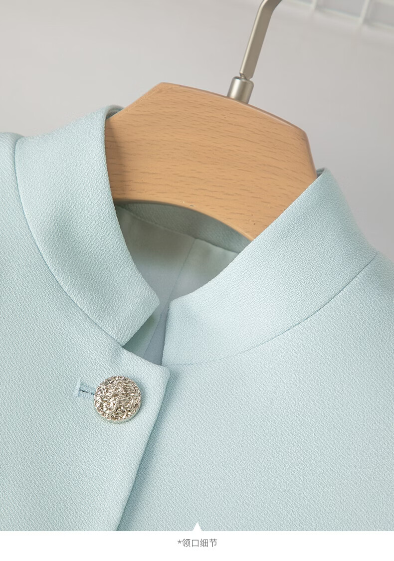 晚白2026春薄荷曼波千金风时尚肌理感立领上衣挺括利落短款小个子外套 浅蓝色 S