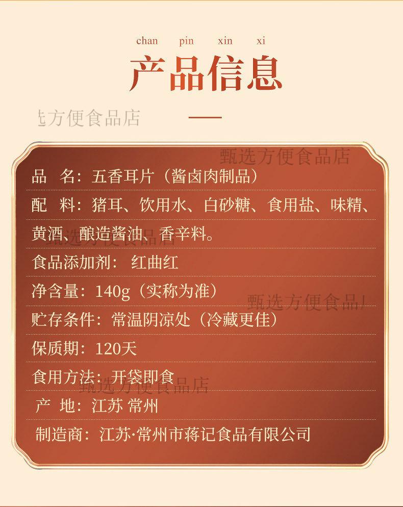 蒋凤记五香猪耳朵真空熟食即食凉菜小吃猪头肉酱卤肉食凉拌下酒菜 五香猪耳140g*1袋