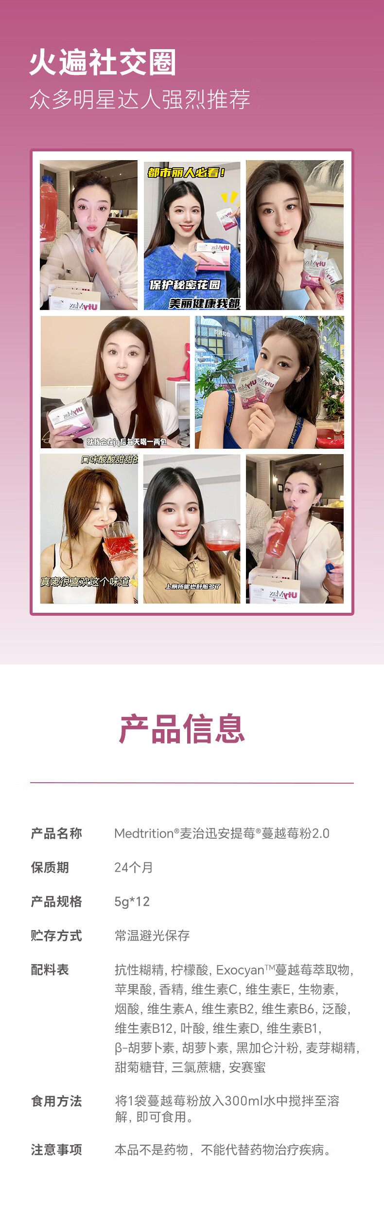 Medtrition麦治迅蔓越莓粉女性益生菌浓缩蔓越莓精华【效期至26年7月27日】 12条*1盒
