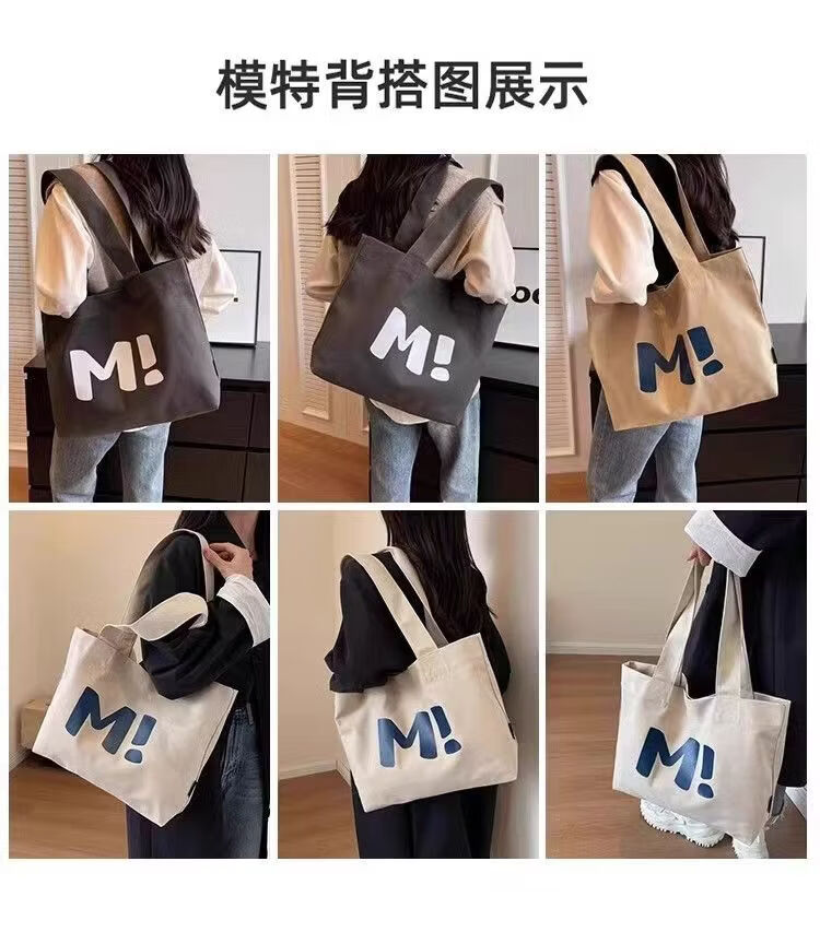 【甄选直发】帆布包女大容量结实超市购物袋简约百搭2024新款单肩 卡其色【拉链款】MI