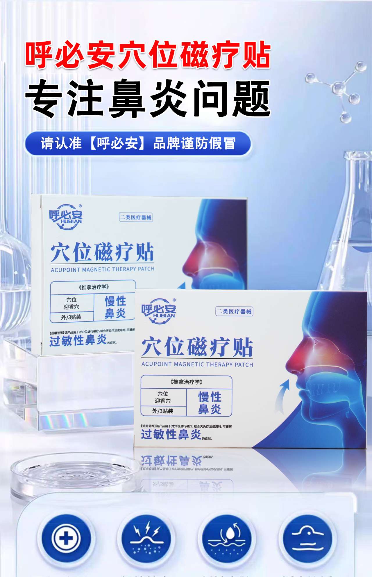 呼必安穴位磁疗贴过敏性鼻炎急慢性鼻炎鼻塞流涕鼻炎贴通气鼻贴官方正品 一盒【体验装】推荐多盒装效果好