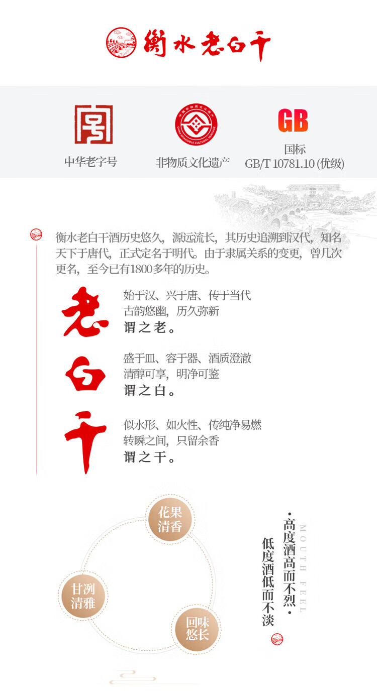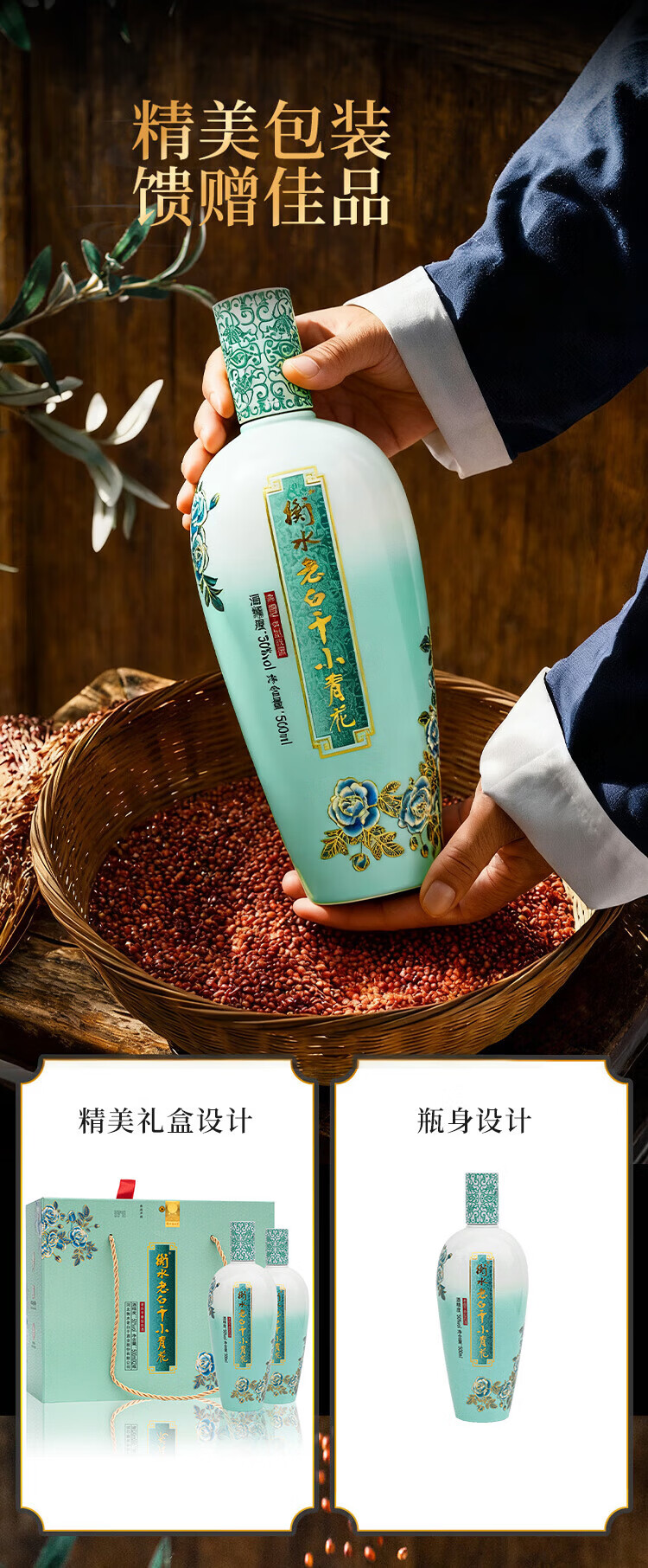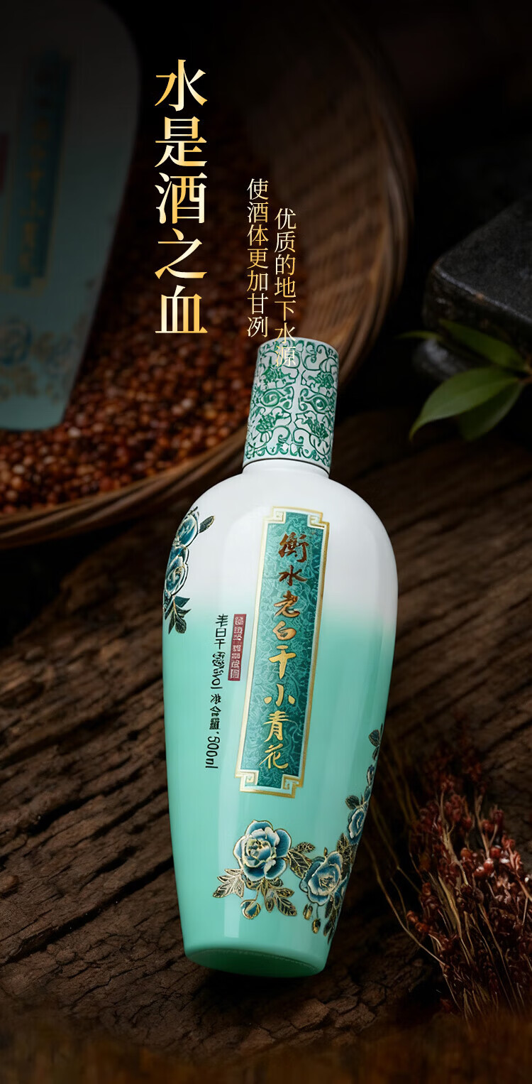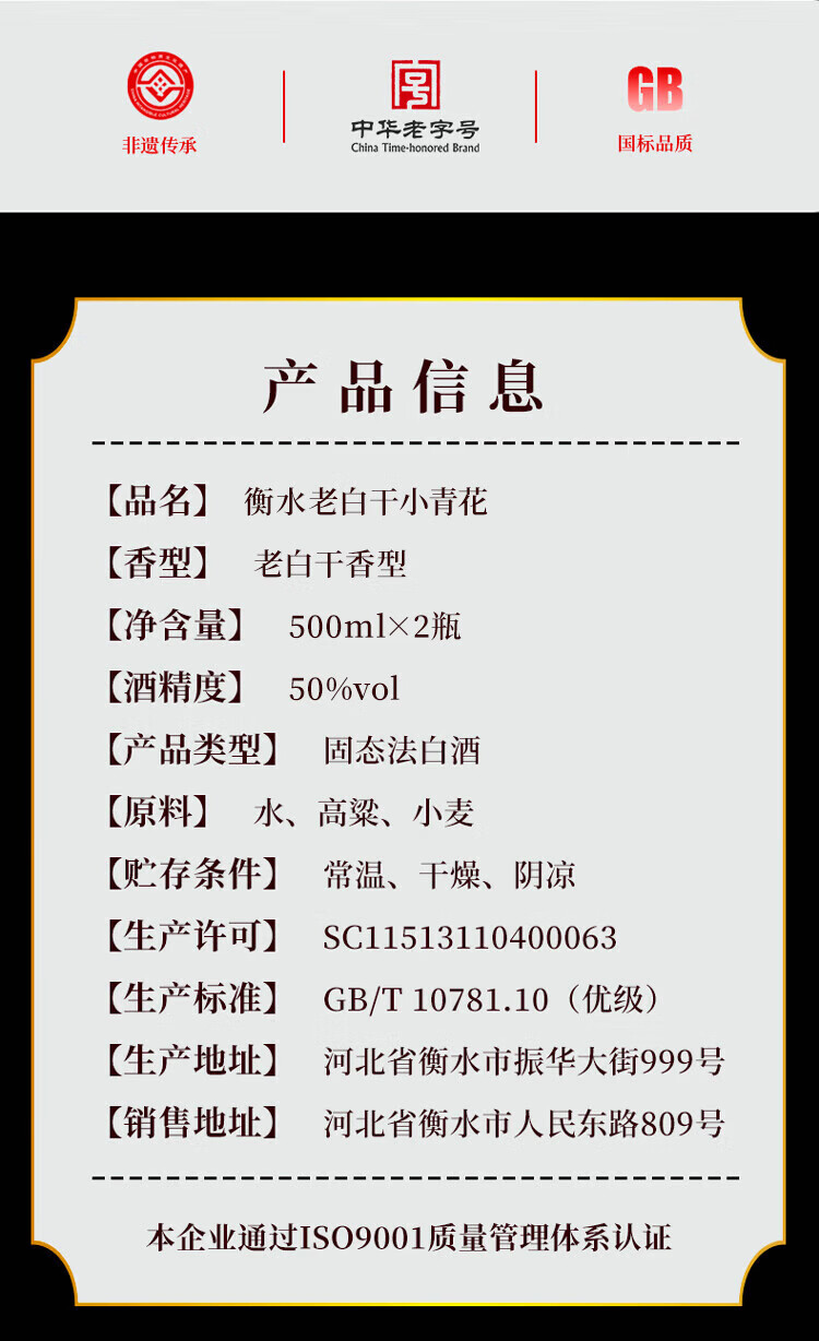 衡水老白干50度小青花礼盒 500mL*2瓶 纯粮白酒易入口 非遗技艺中华老字号 50%vol 500mL 2瓶 礼盒