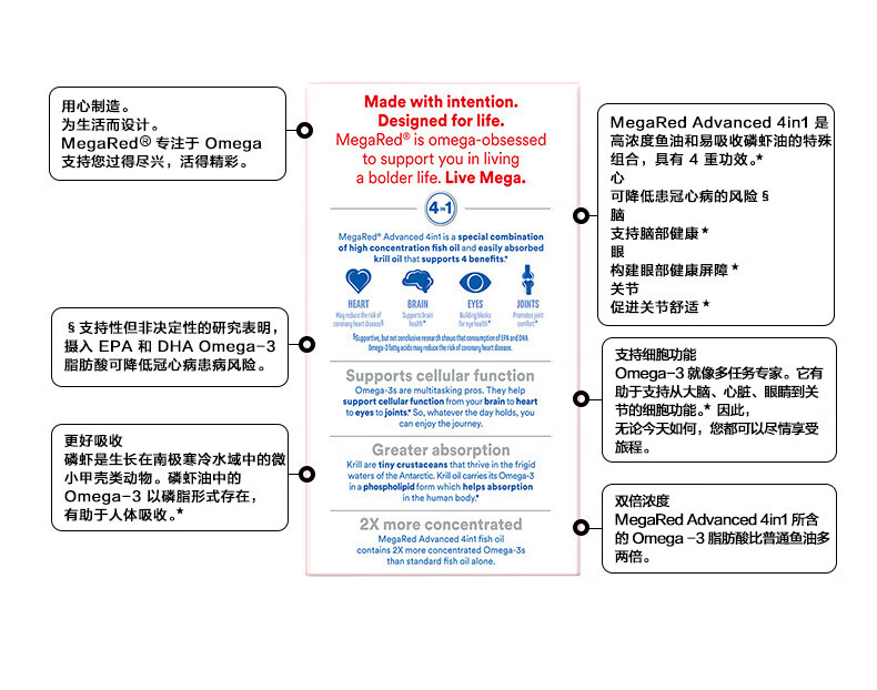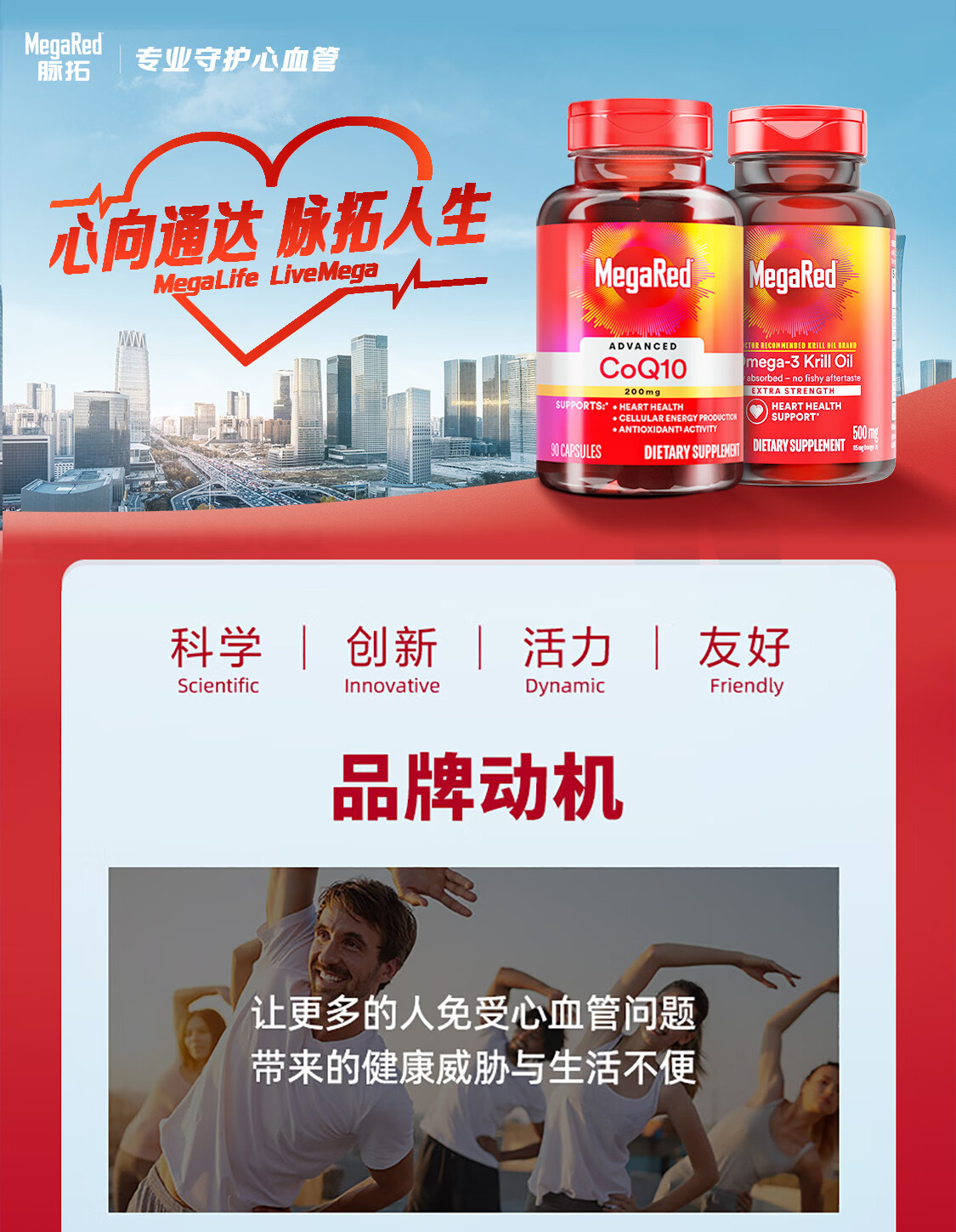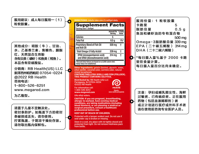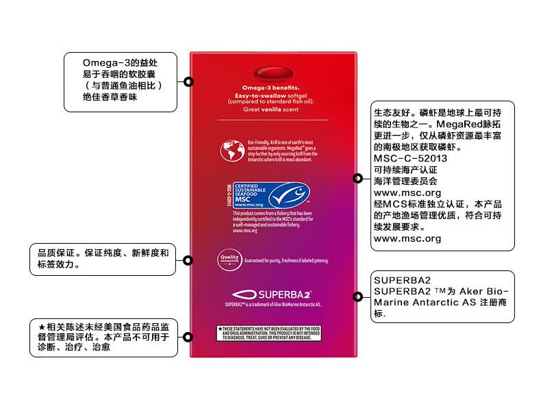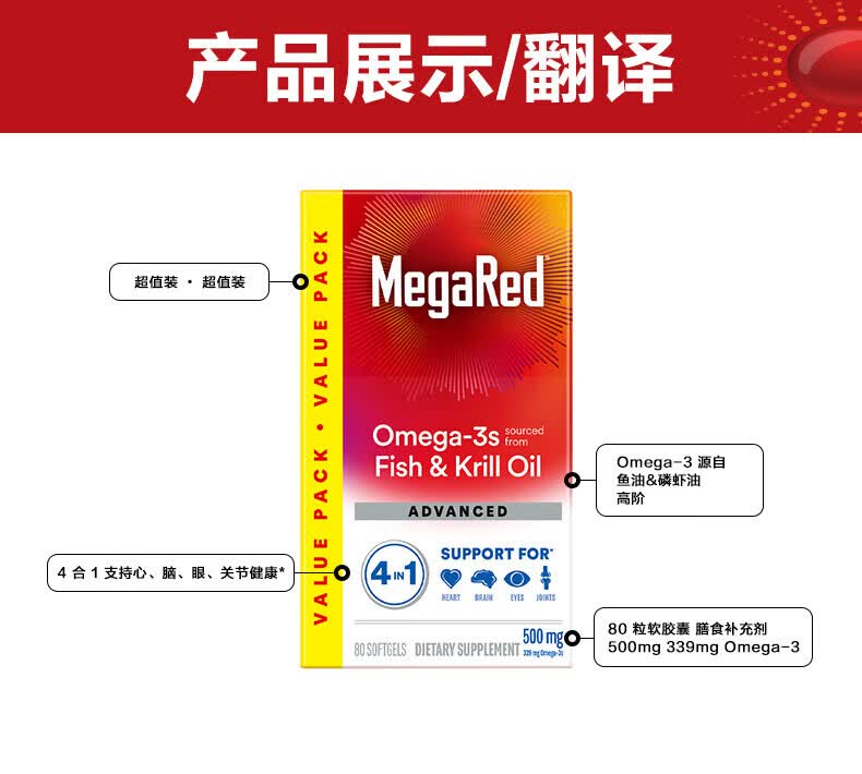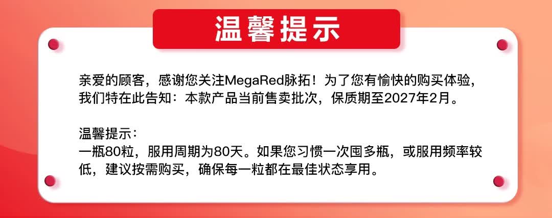 MegaRed脉拓南极深海磷虾油500mg美国进口omega3鱼油升级 效期至26年12月 四合一磷虾油 80粒*2瓶