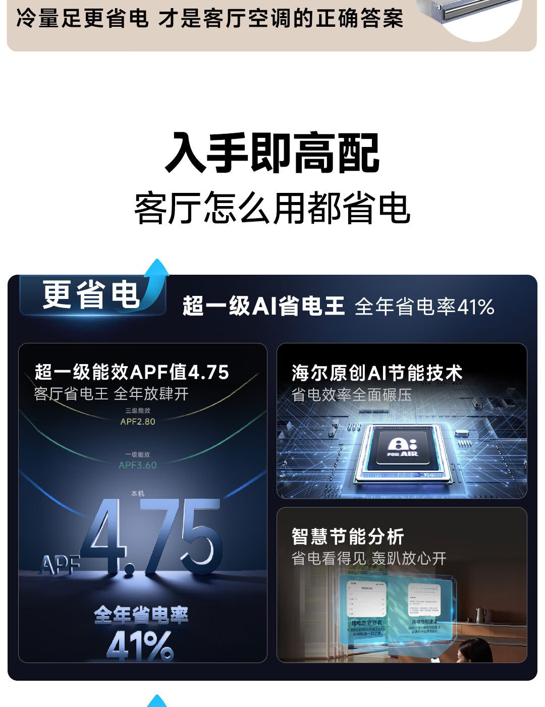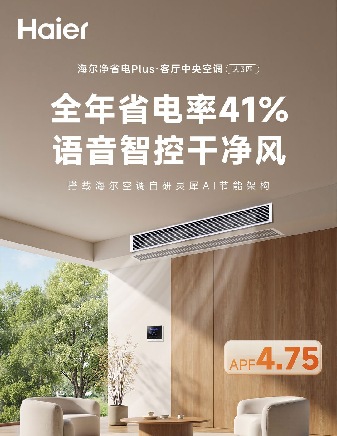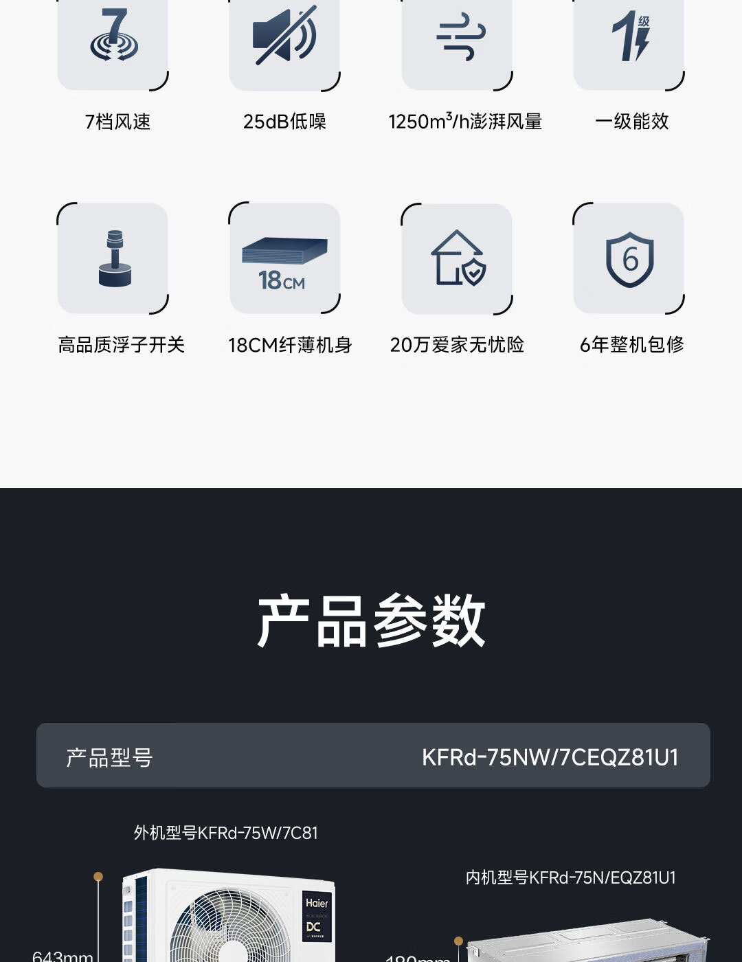 海尔大3匹一级能效中央空调净省电Plus客厅卧室风管机一拖一纯铜管一价全包 KFRd-75NW/7CEQZ81U1 净省电Plus大3匹 全年省电率41%【客厅】 【一价全包】