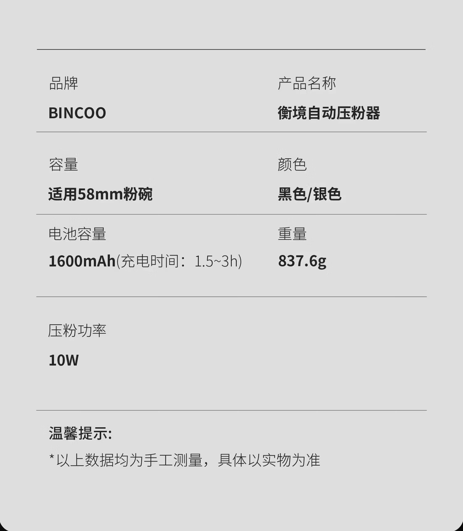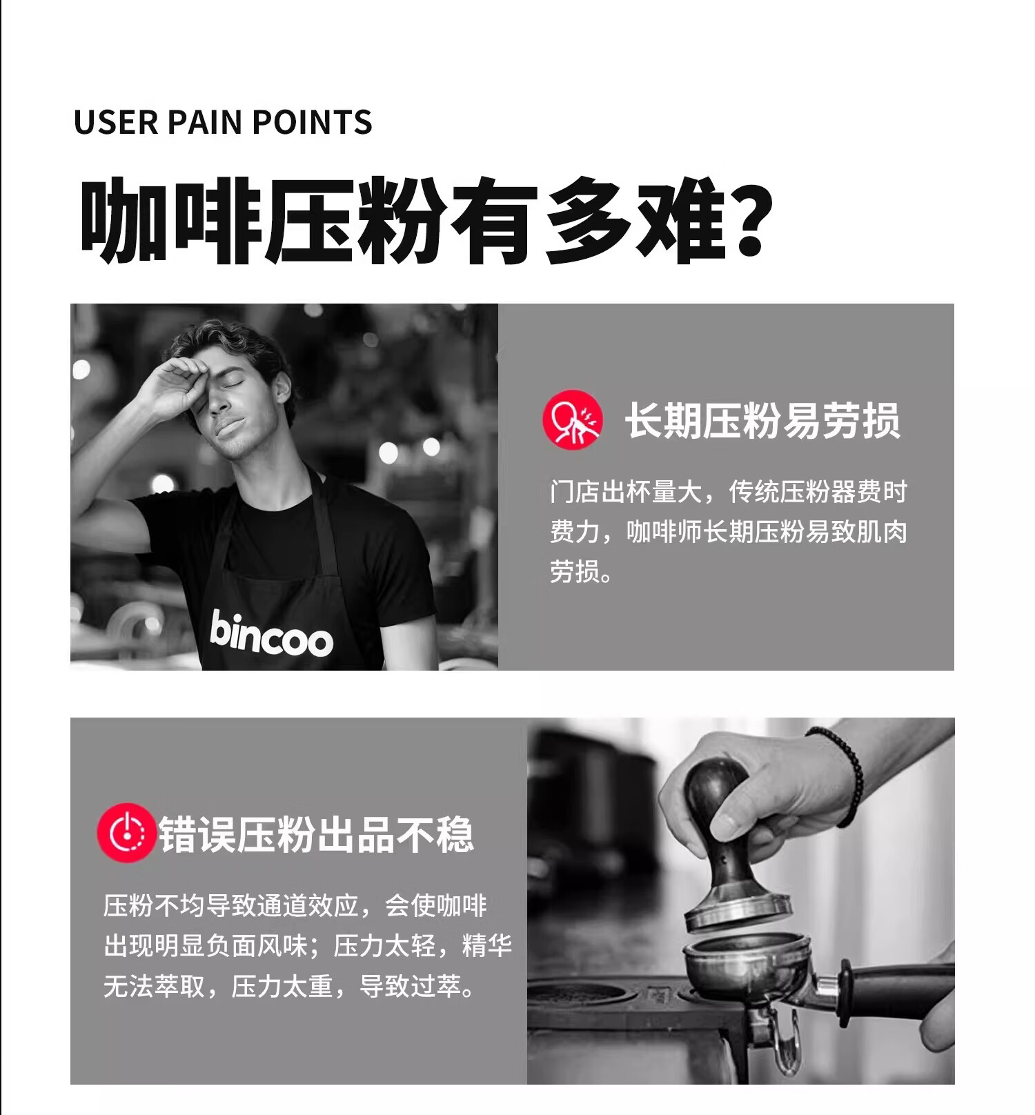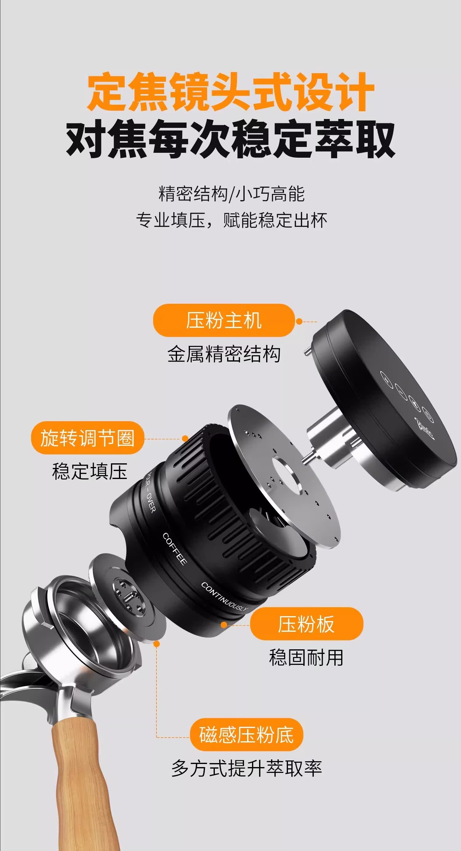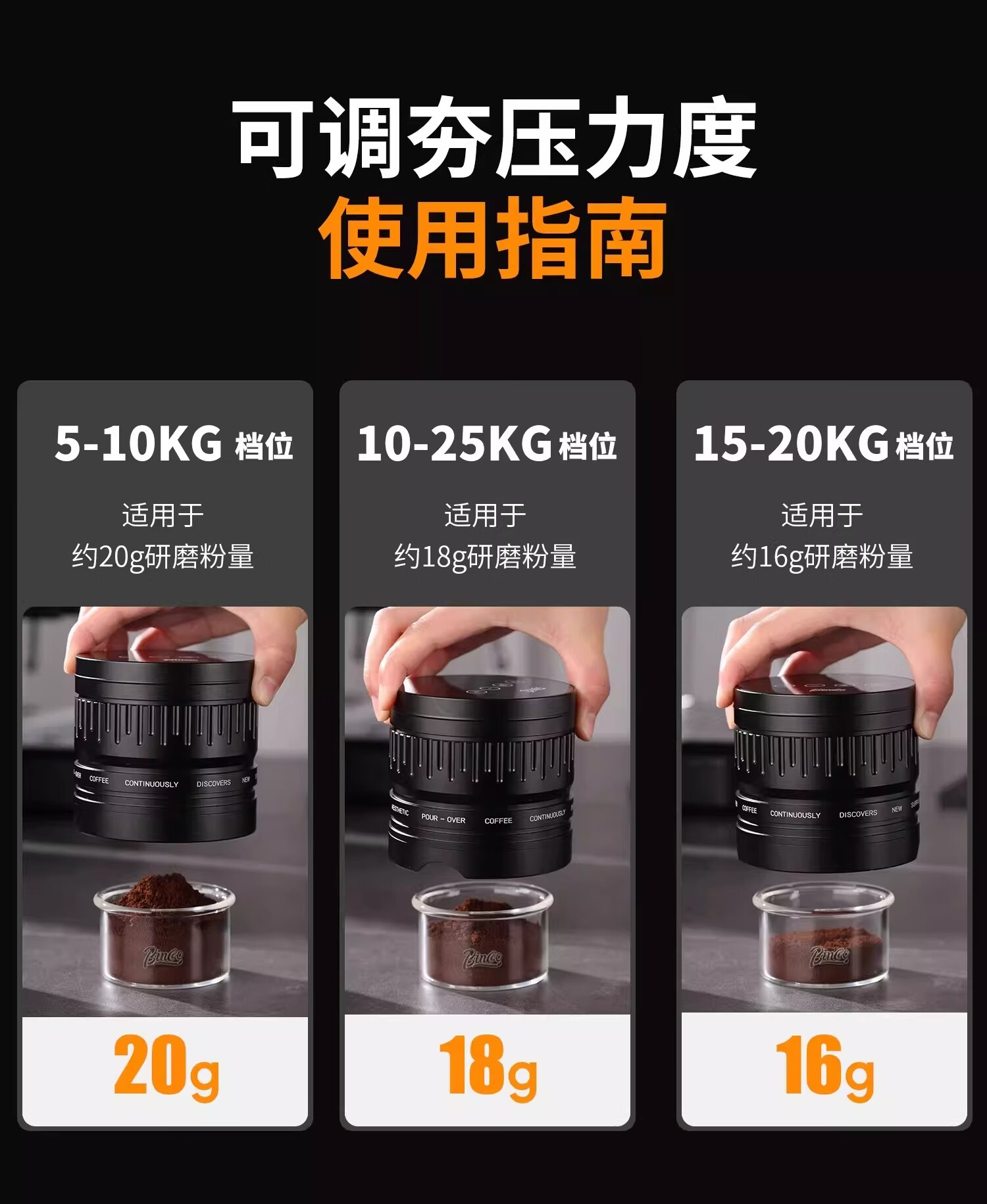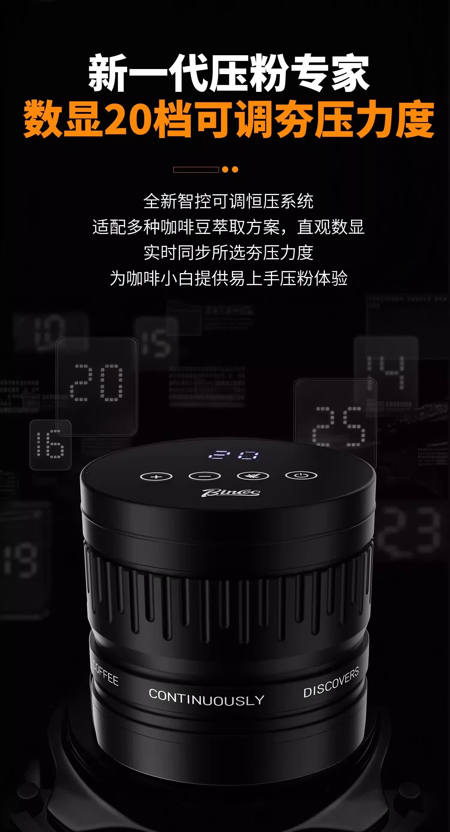Bincoo意式自动布粉器电动咖啡压粉器恒力可调节20磅压粉锤二合一 深空黑-双耳【20磅可调】 58mm
