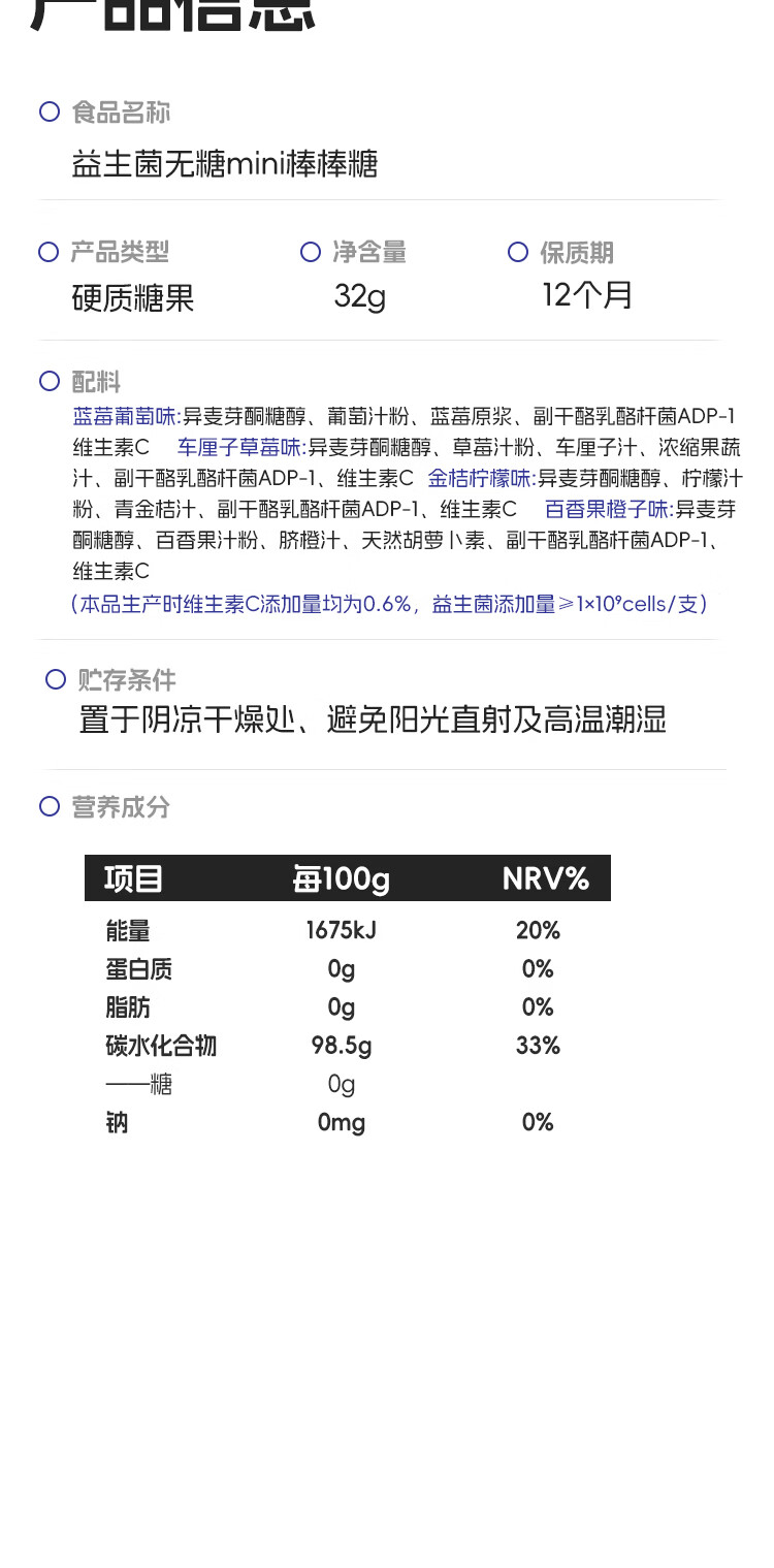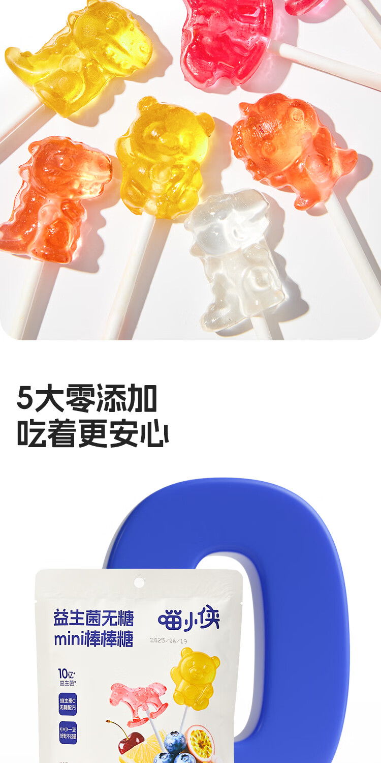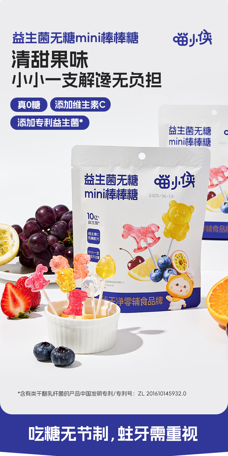 喵小侠益生菌无糖mini棒棒糖儿童营养零食,送宝宝婴幼儿辅食食谱 益生菌无糖mini棒棒糖32g*3袋