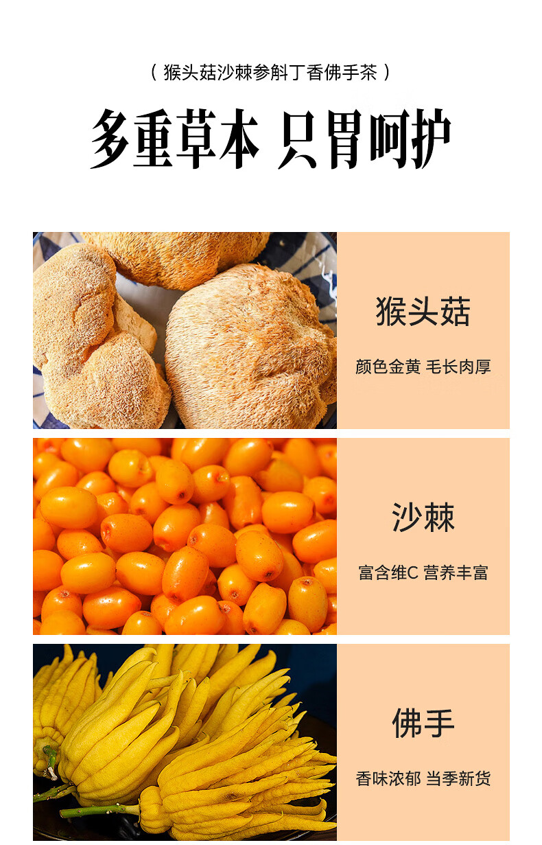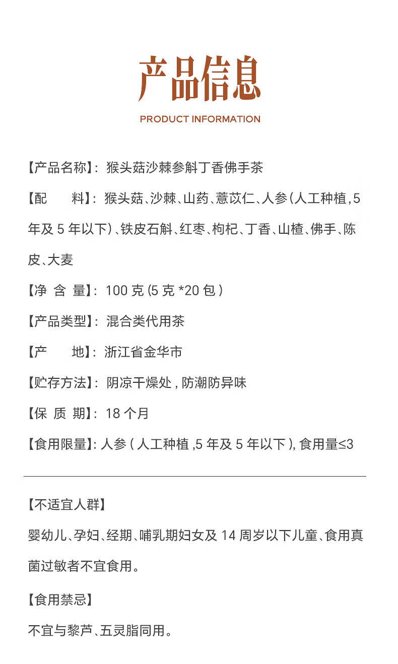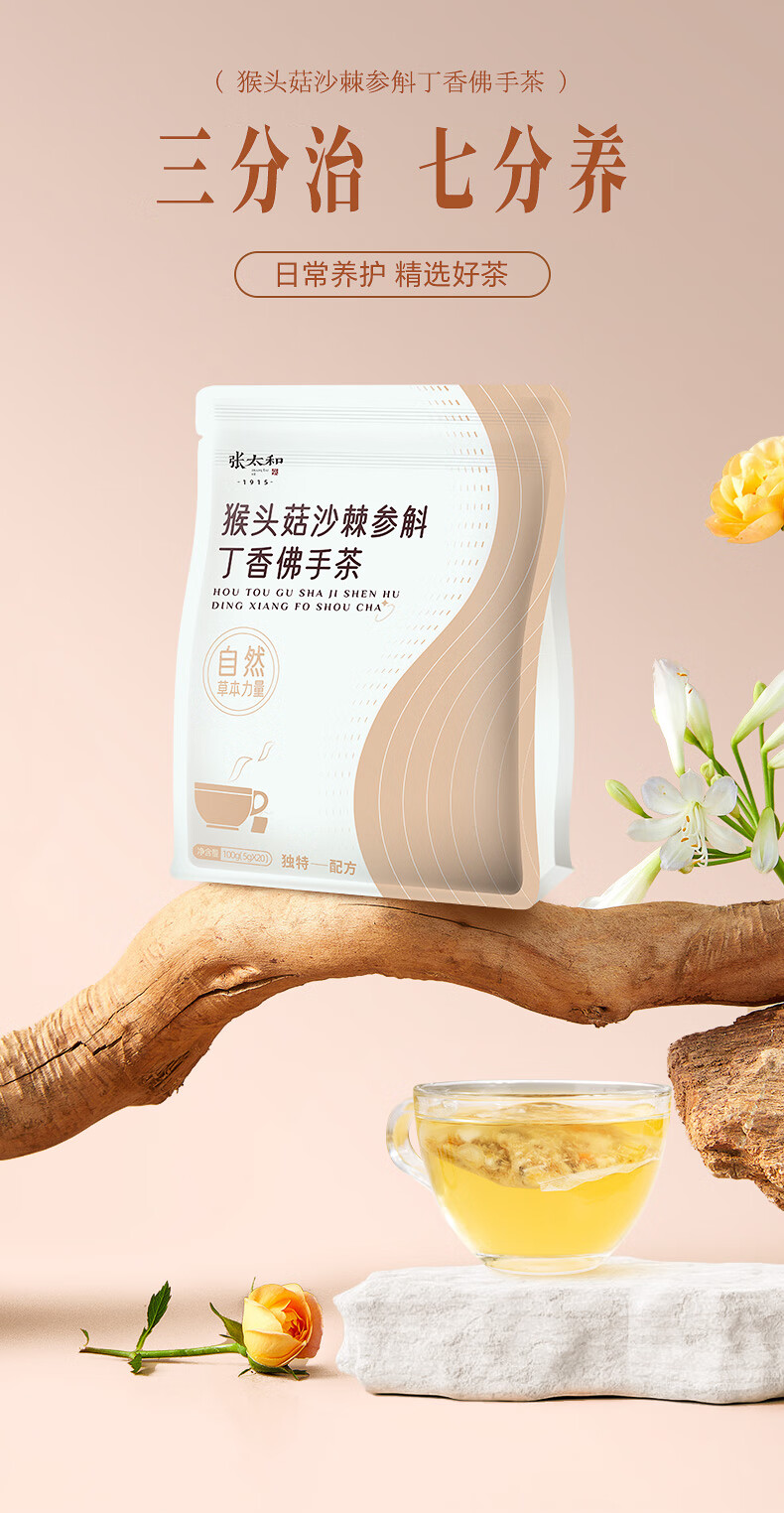 张太和 猴头菇沙棘参斛丁香茶佛手茶 养生茶胃花草茶 猴头菇沙棘参斛丁香佛手茶 100g (5g*20)