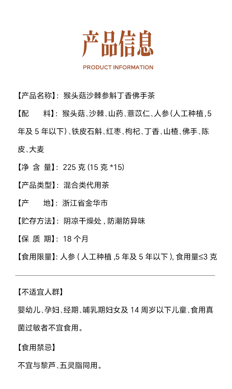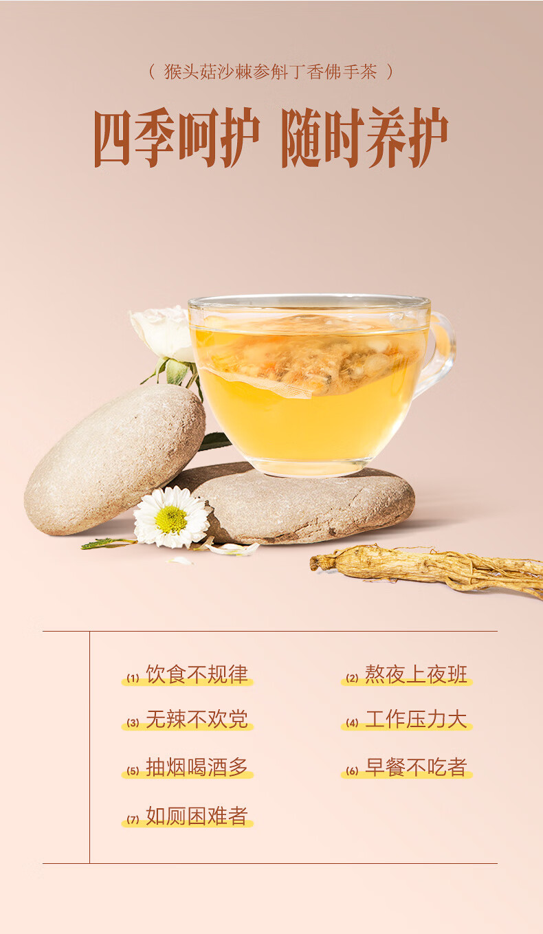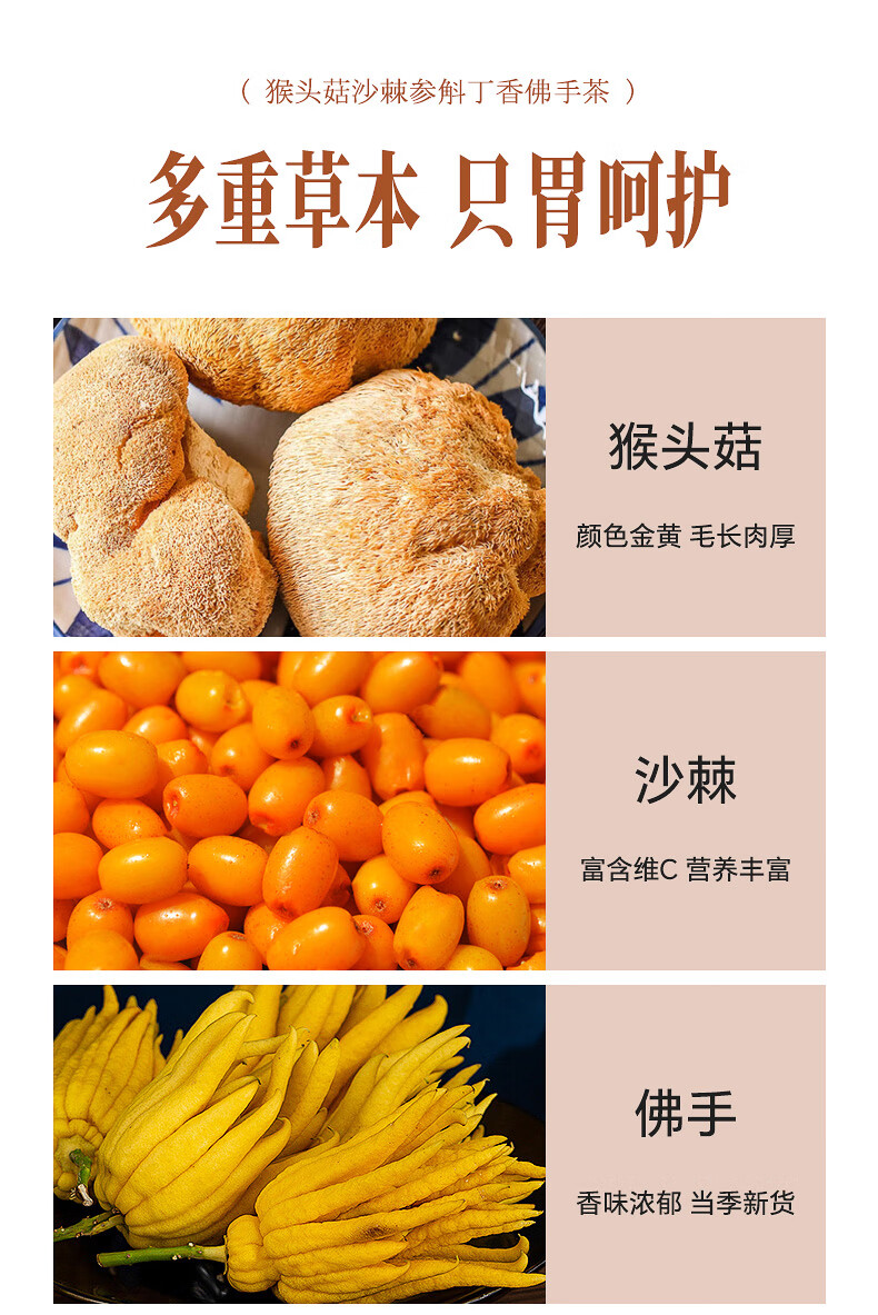 张太和 猴头菇沙棘参斛丁香茶佛手茶 养生茶胃花草茶 猴头菇沙棘参斛丁香佛手茶 100g (5g*20)