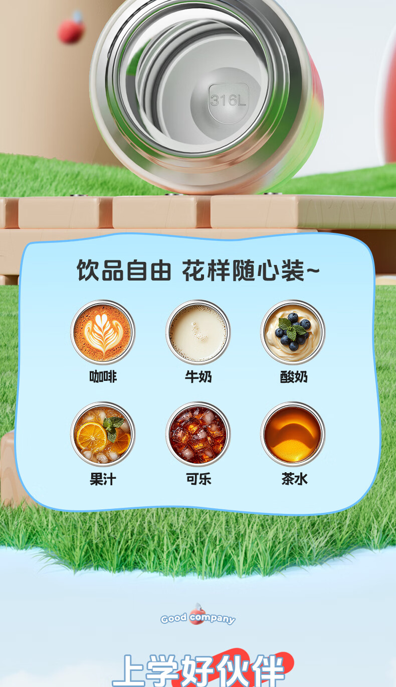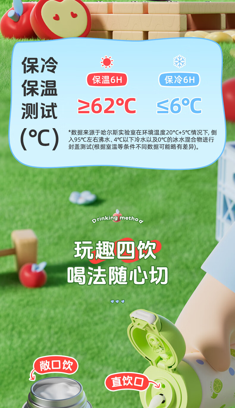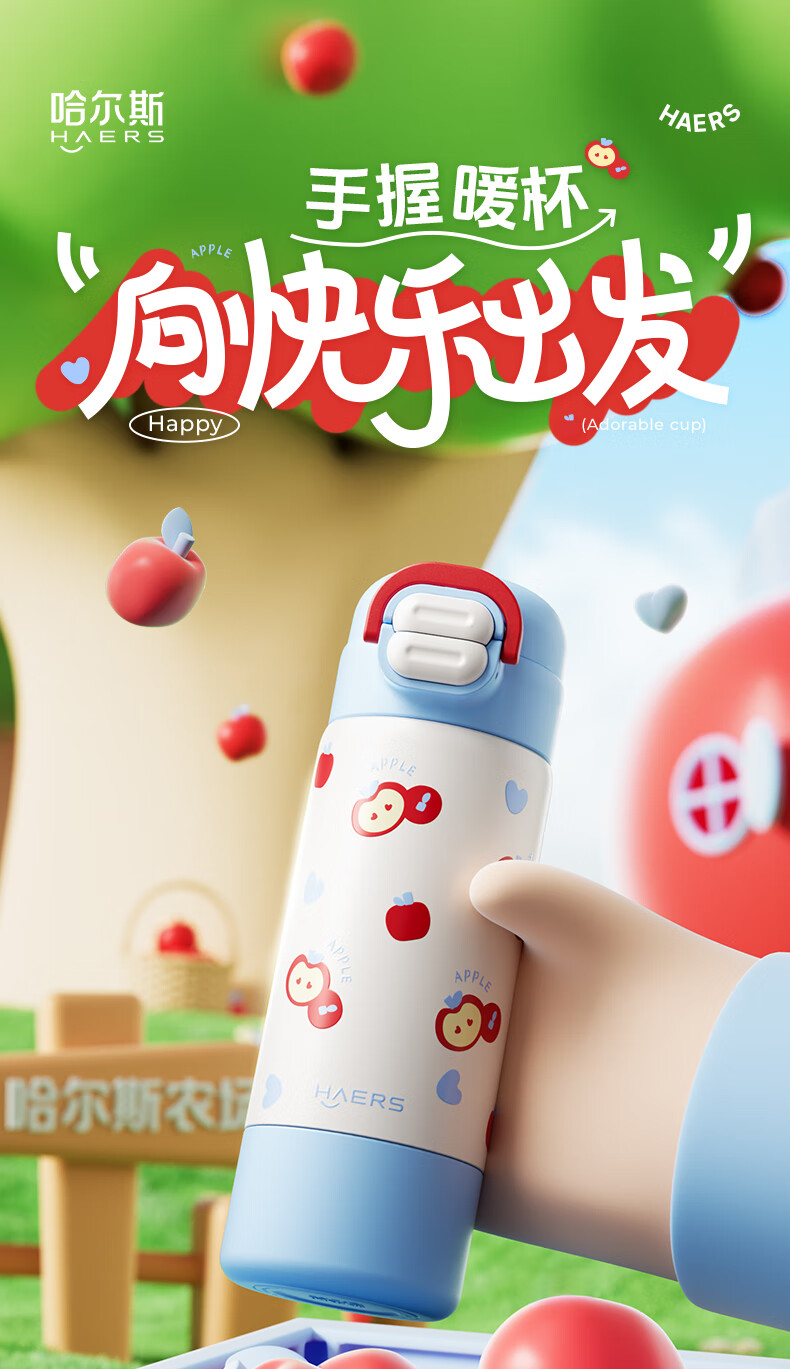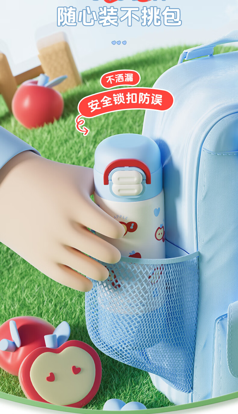 哈尔斯儿童保温杯316L不锈钢水杯学生便携吸管杯大容量实用生日礼物 苹果蓝 480ml【限时特惠】