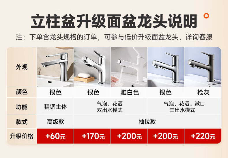 箭牌(ARROW)立柱式洗手盆小户型陶瓷立柱盆洗手池卫生间阳台家用立柱洗脸盆 【大号】立柱盆57.5*44.5cm-含冷热龙头
