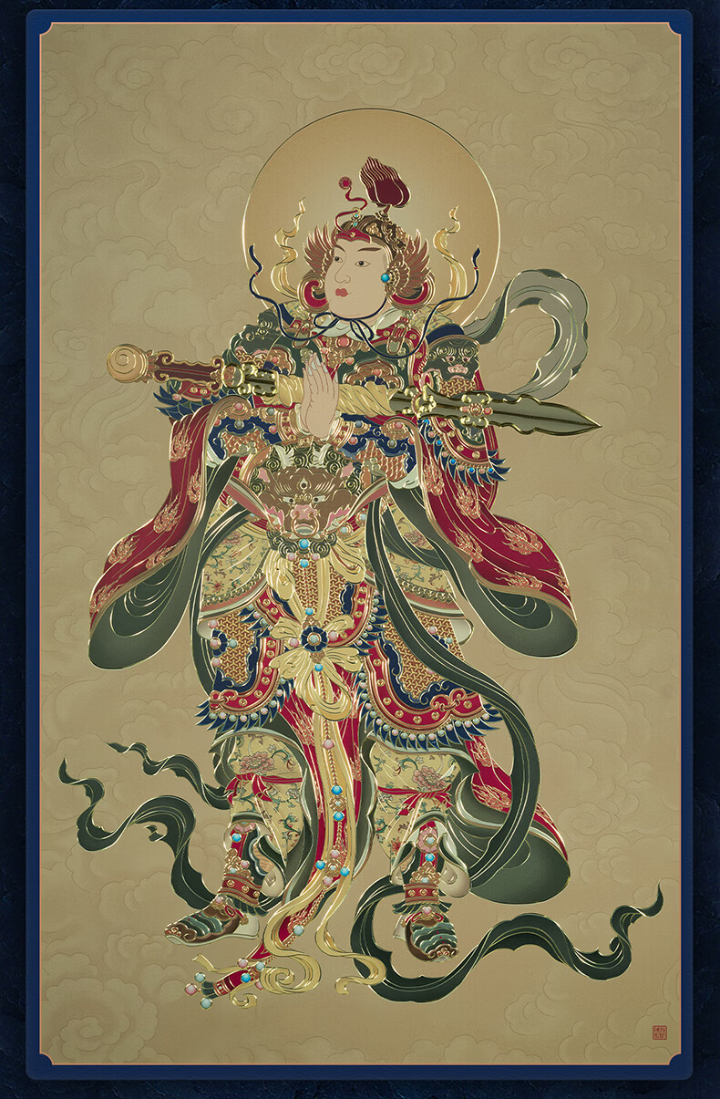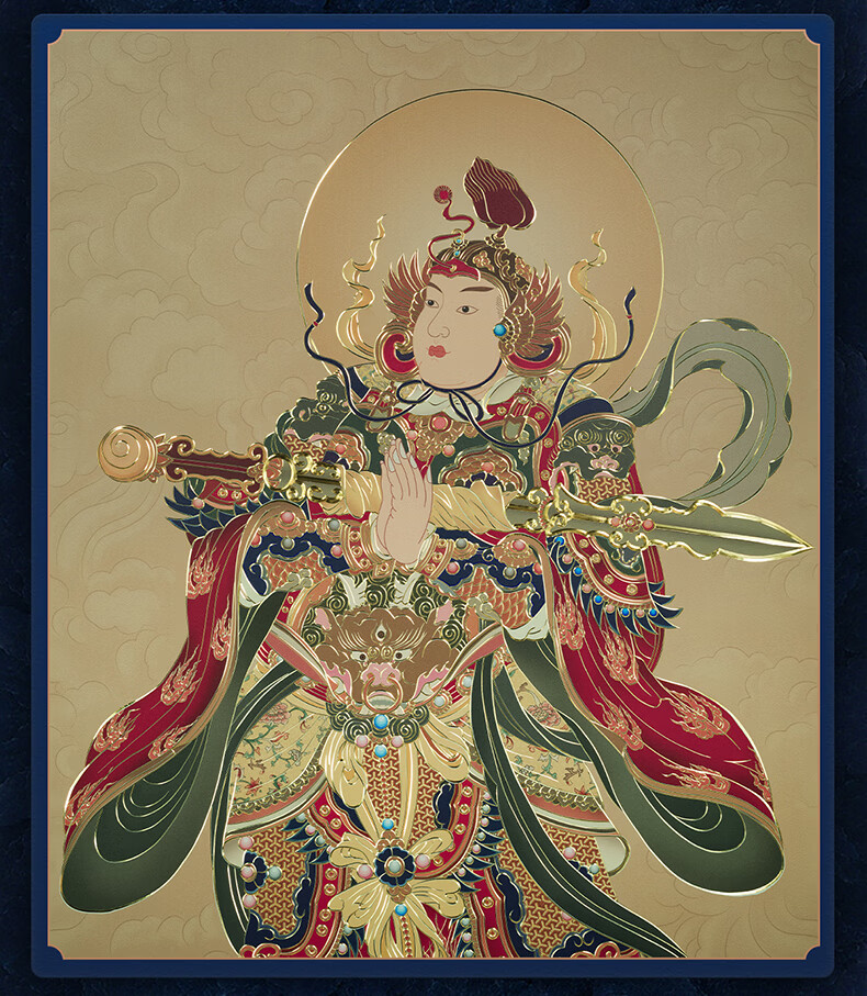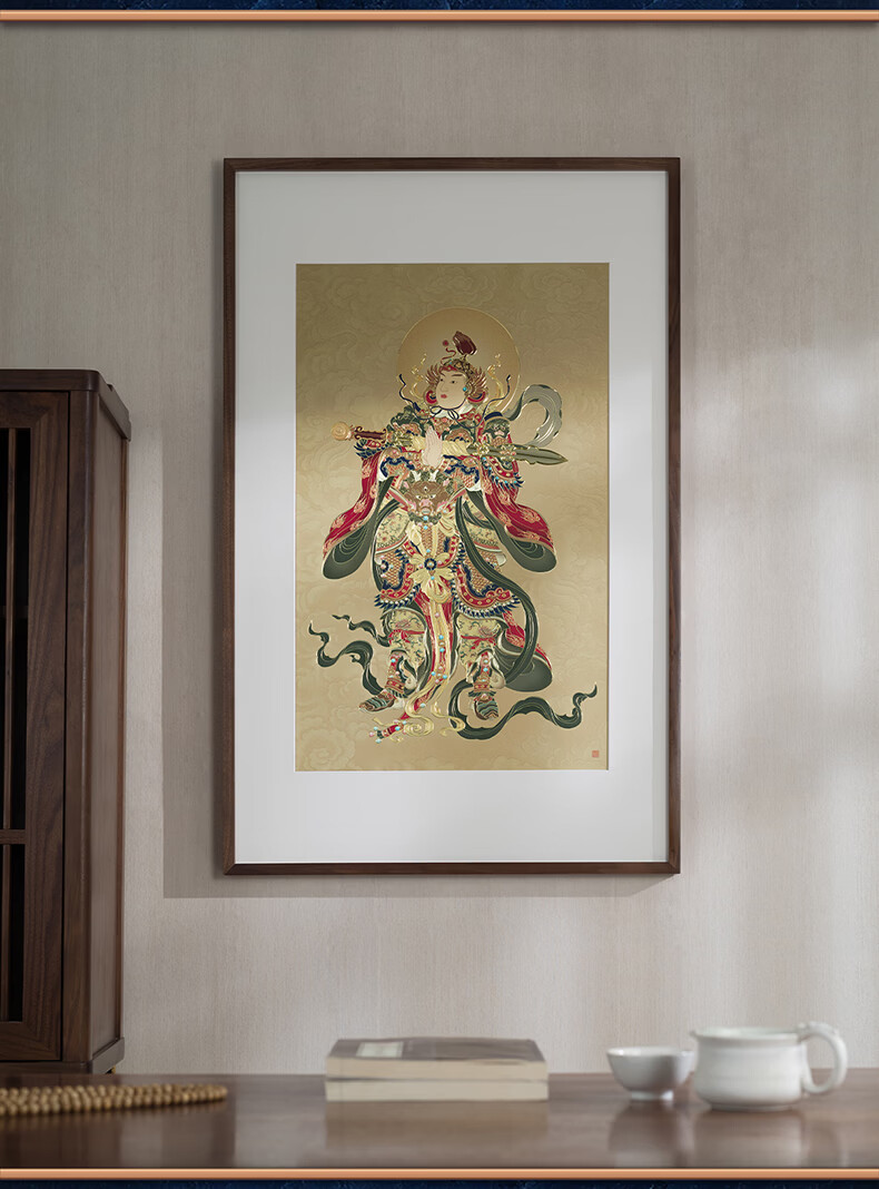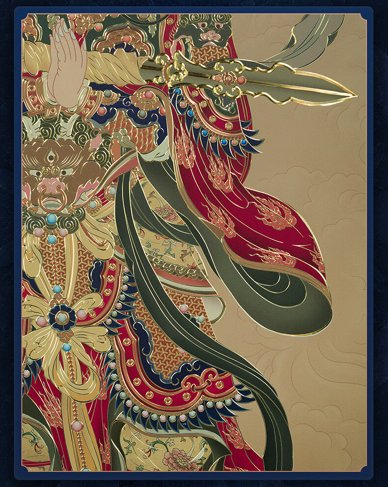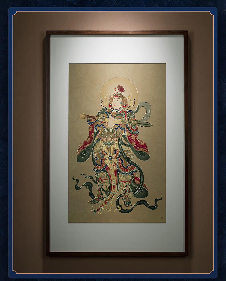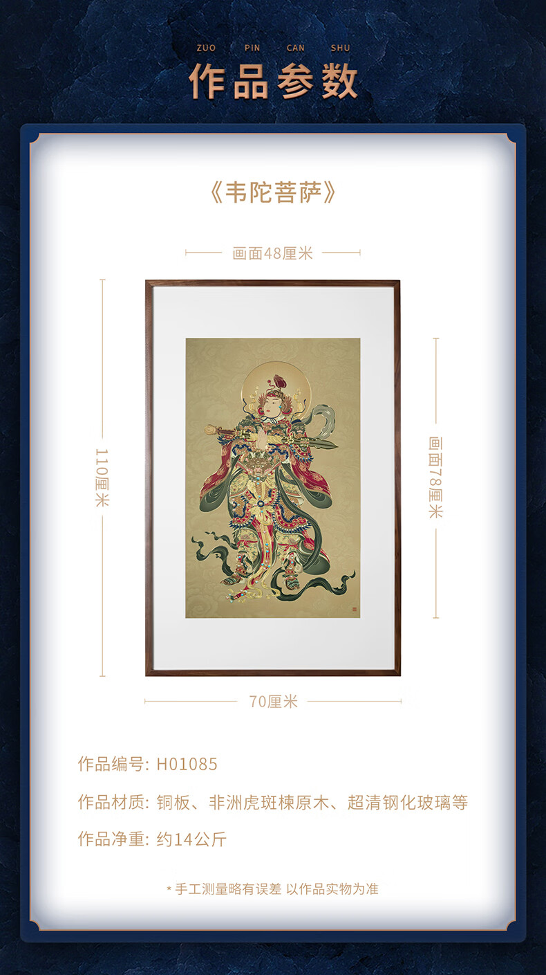 铜师傅手工錾刻 铜雕画《韦陀菩萨》装饰画 背景画 壁画