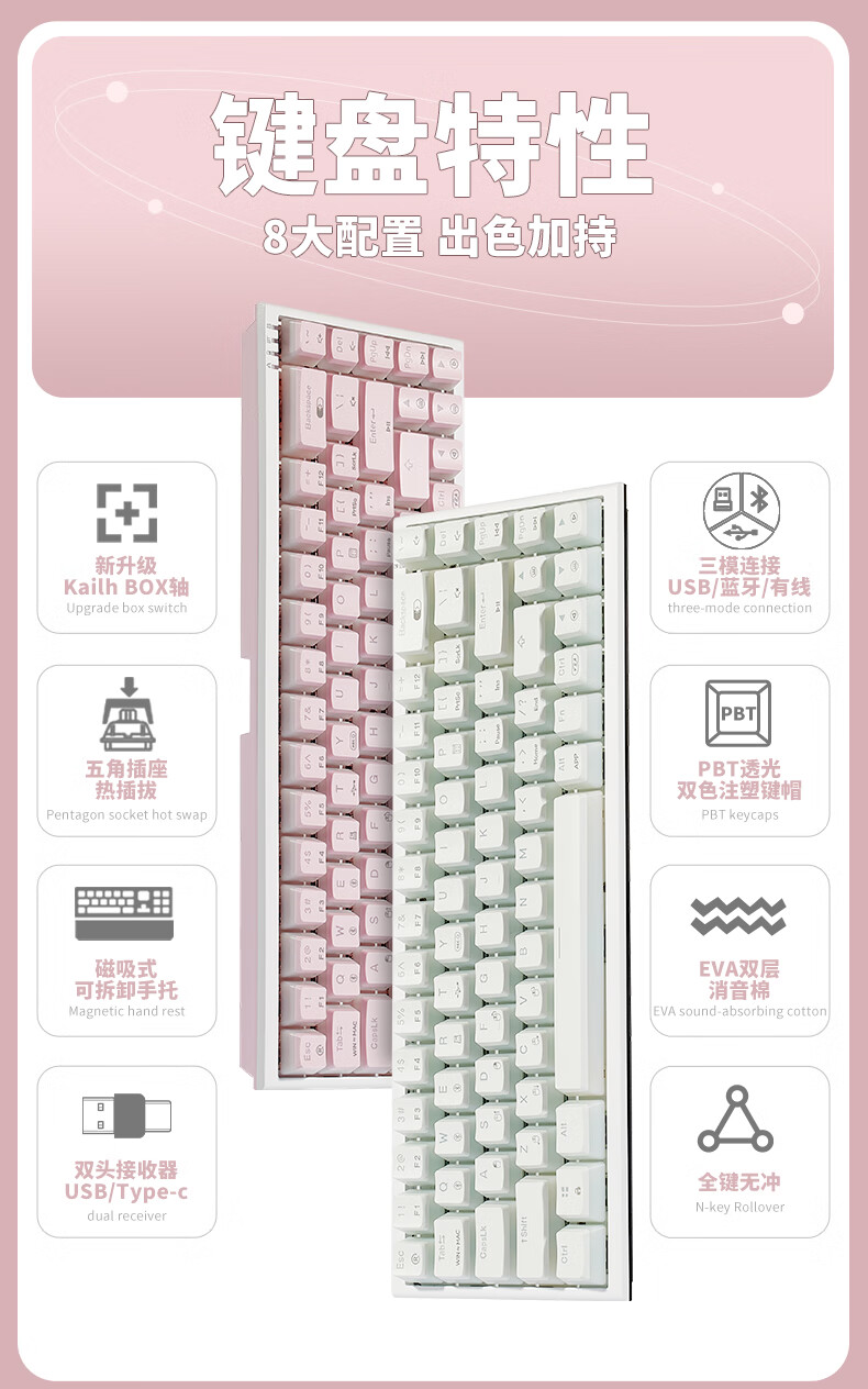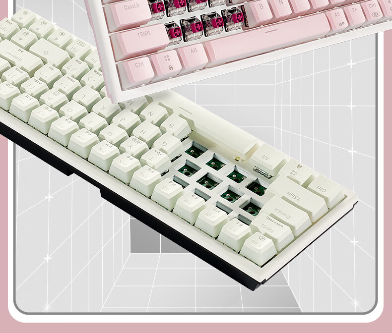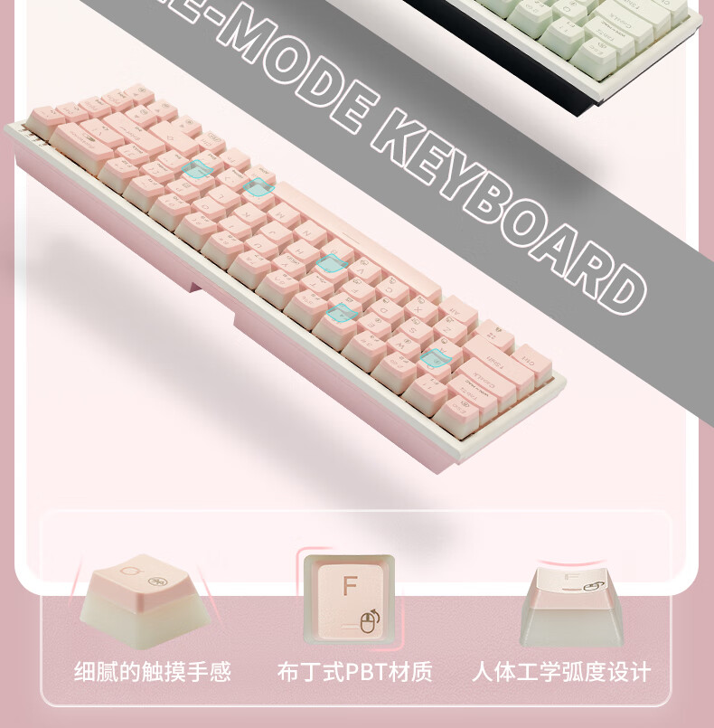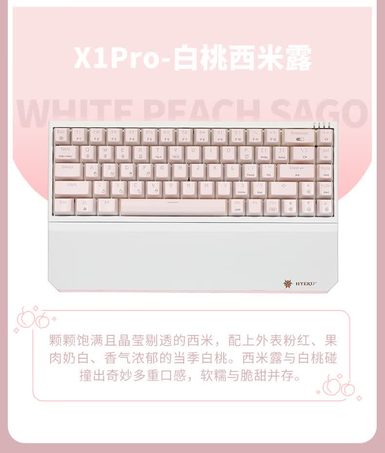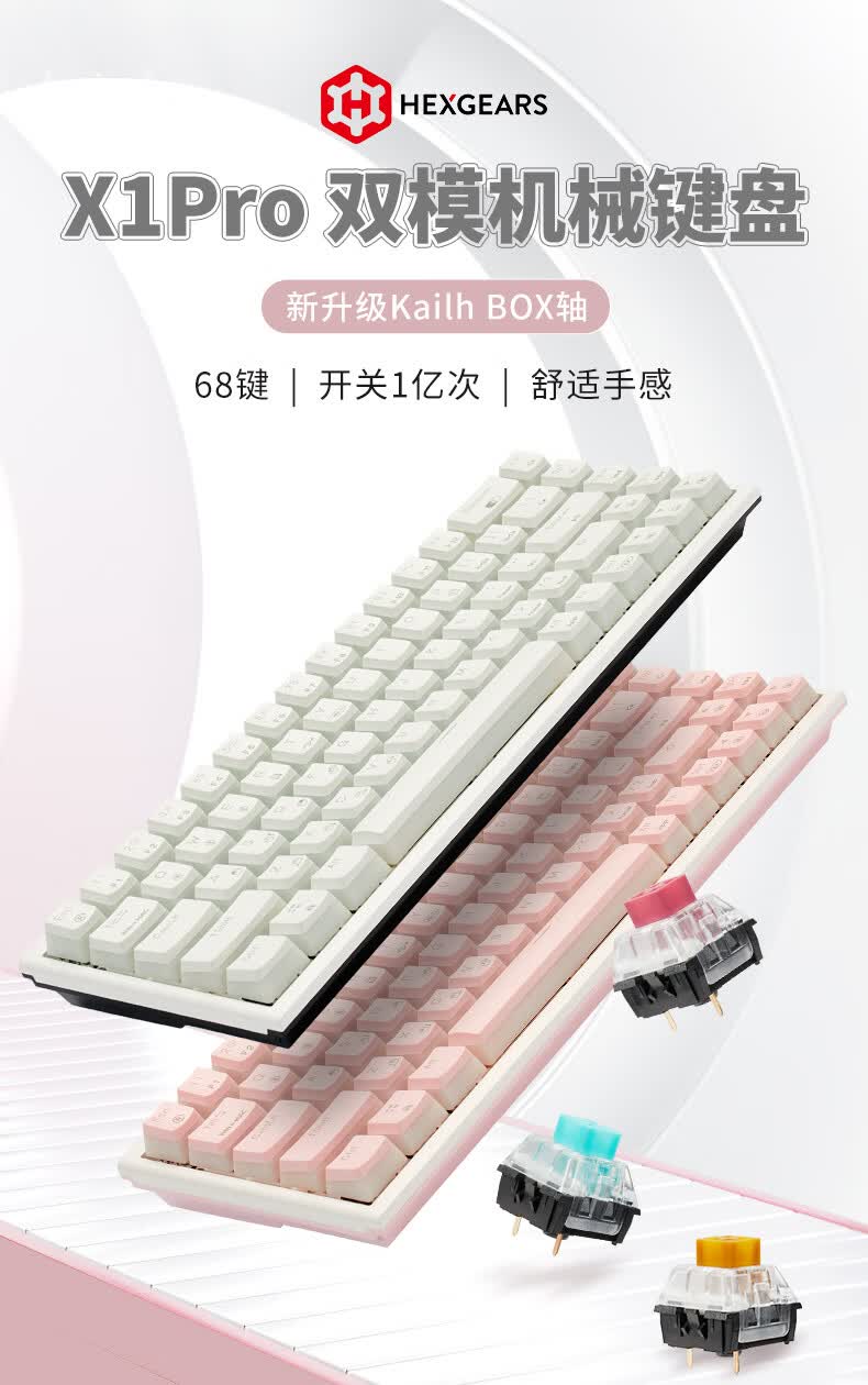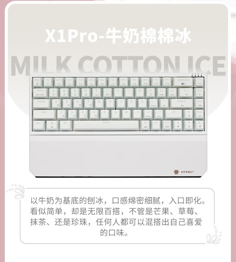黑峡谷X1Pro三模客制化机械68键键盘游戏电竞专用蓝牙办公机械键盘 X1Pro 白桃西米露-凯华玫瑰红轴-轻音速触