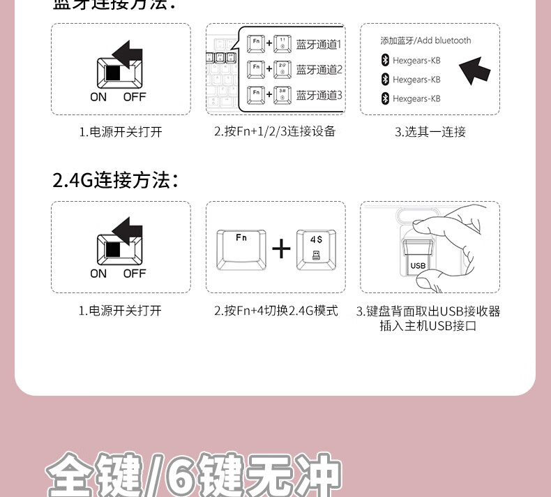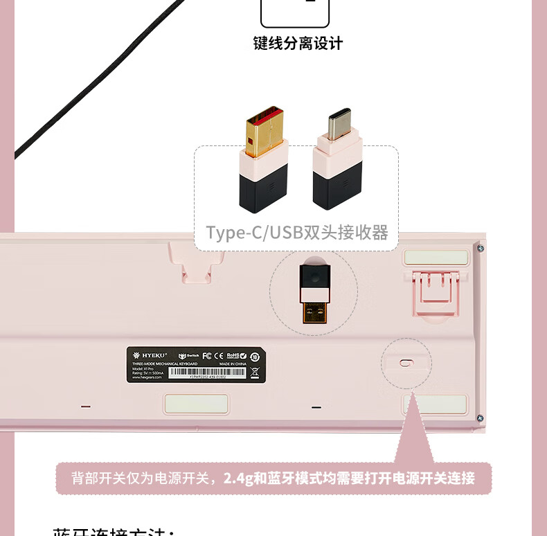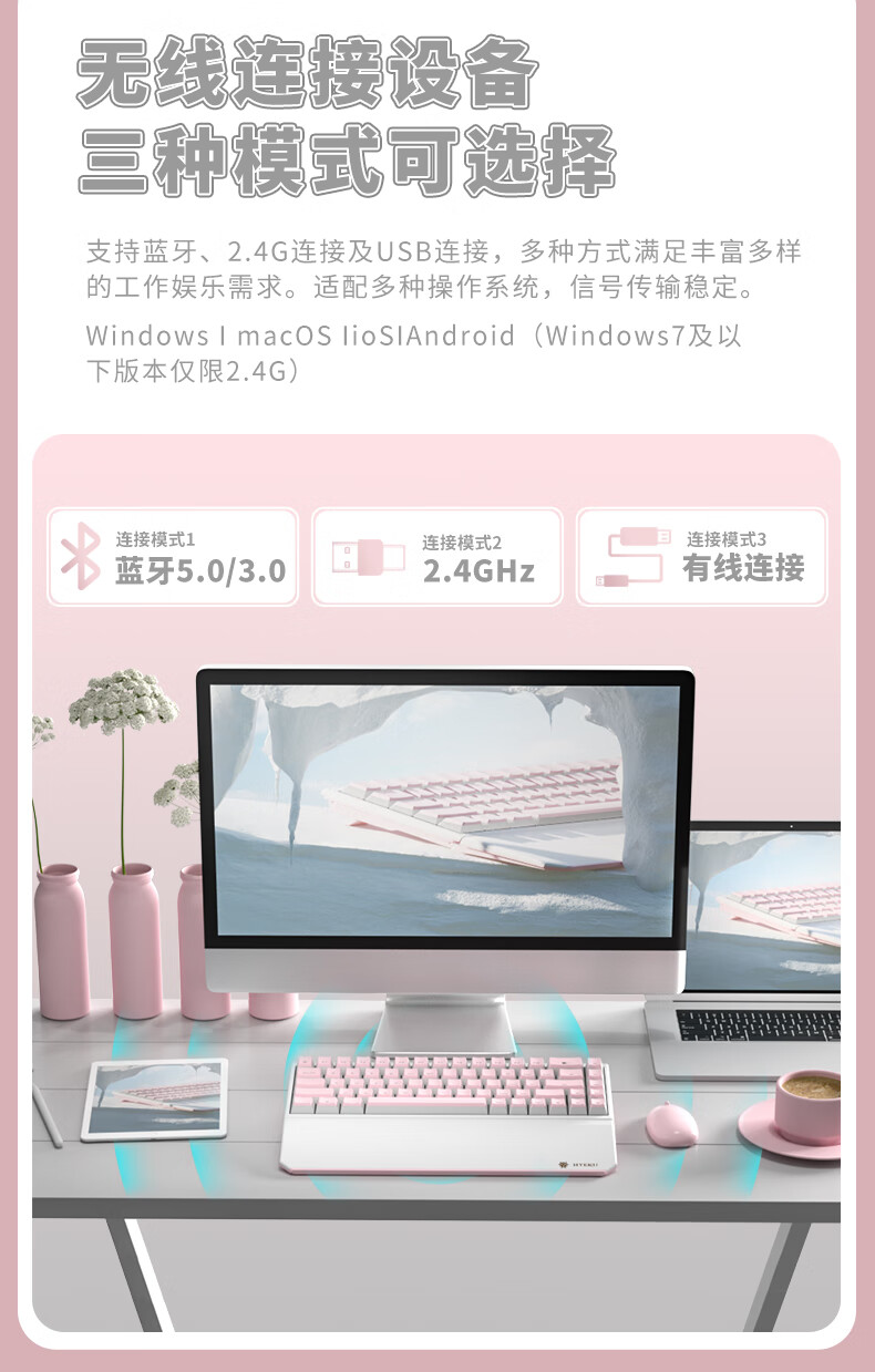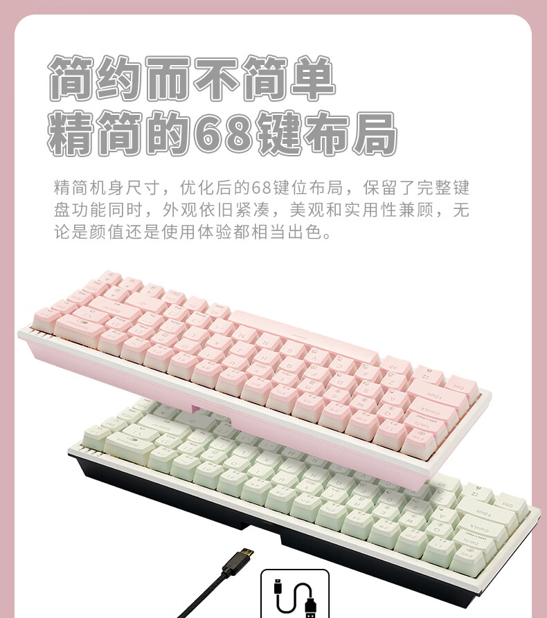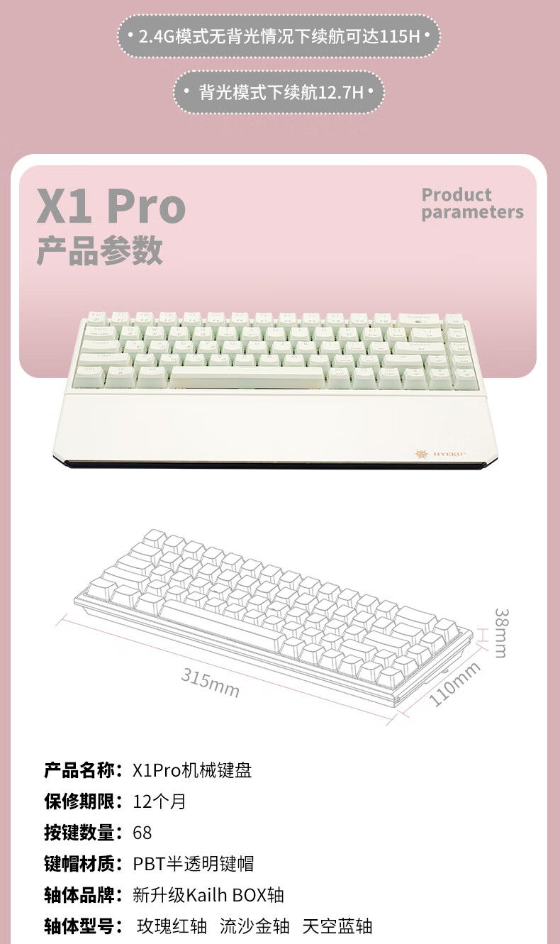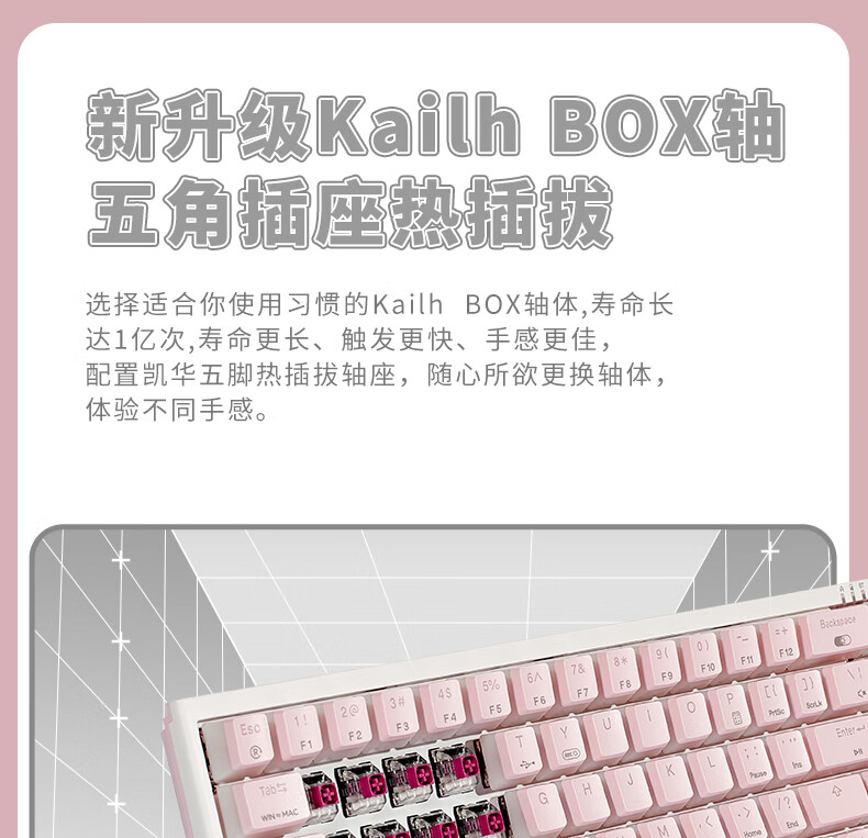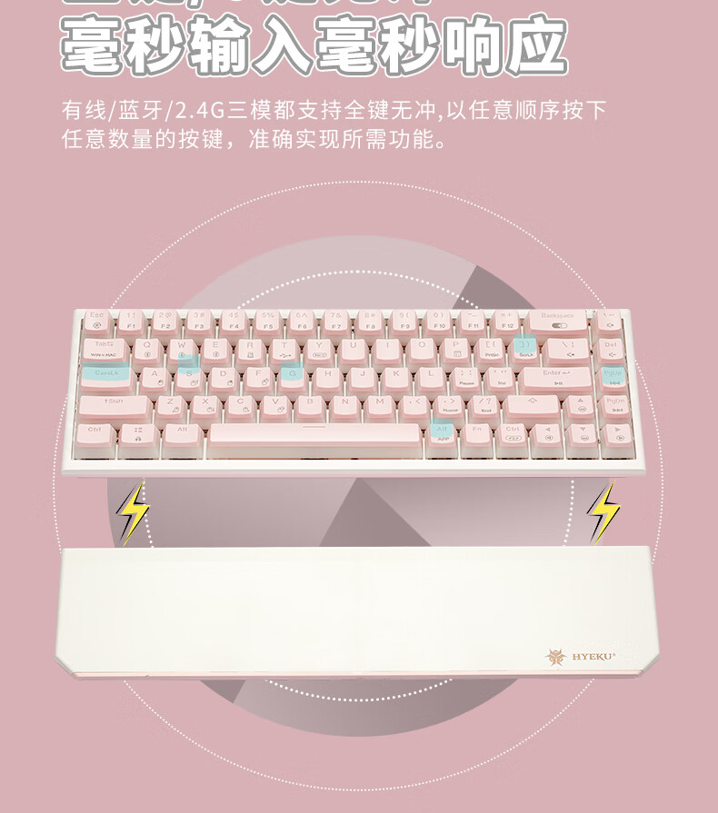 黑峡谷X1Pro三模客制化机械68键键盘游戏电竞专用蓝牙办公机械键盘 X1Pro 白桃西米露-凯华玫瑰红轴-轻音速触