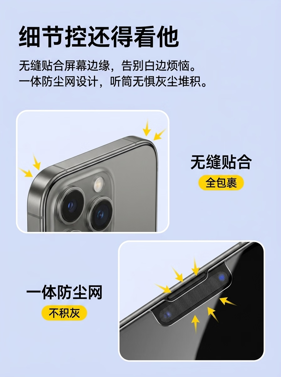 智能仔iPhone16Promax钢化膜苹果15pro手机膜新款14promax保护13屏幕12/11全包XR覆盖plus防尘贴膜不挡屏 超清不伤眼防窥+升级防爆抗压指纹膜2片装 iPhone 17 pro Max
