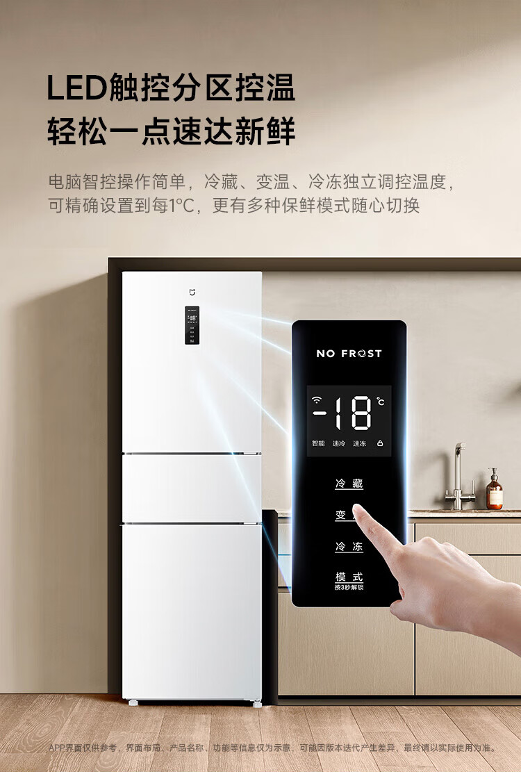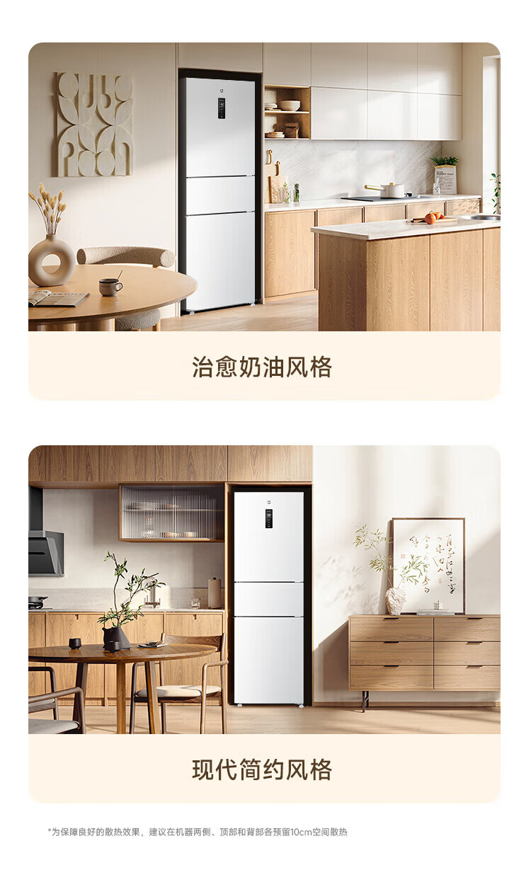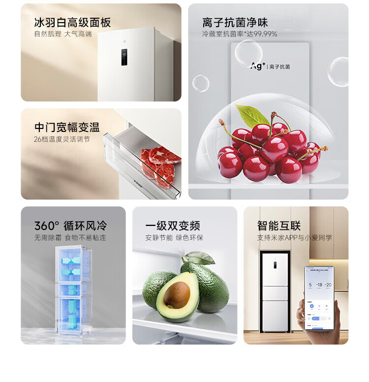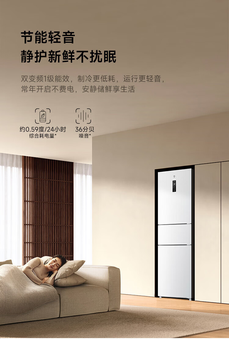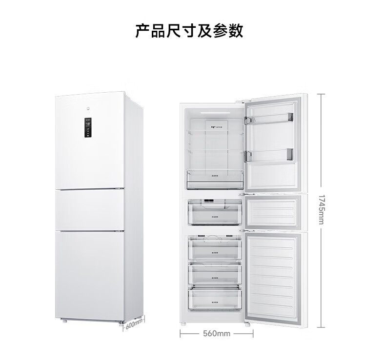米家冰箱256升三门 变频一级能效银离子除菌净味 风冷无霜小型家用电冰箱宿舍租房BCD-256WMSA01 米家冰箱 三门256L