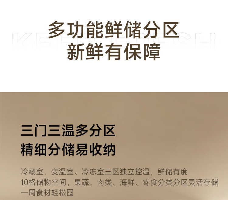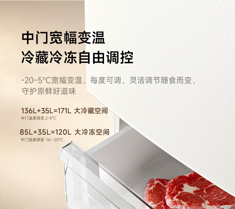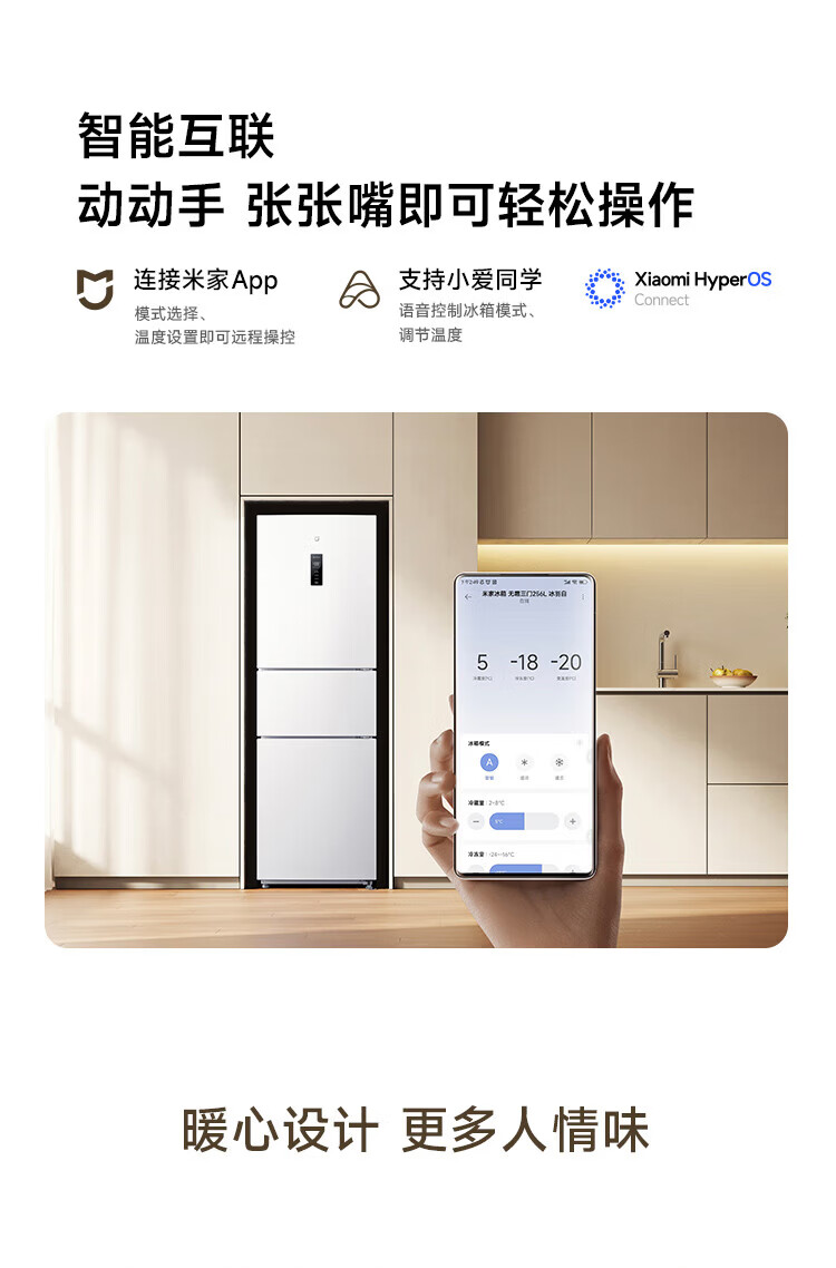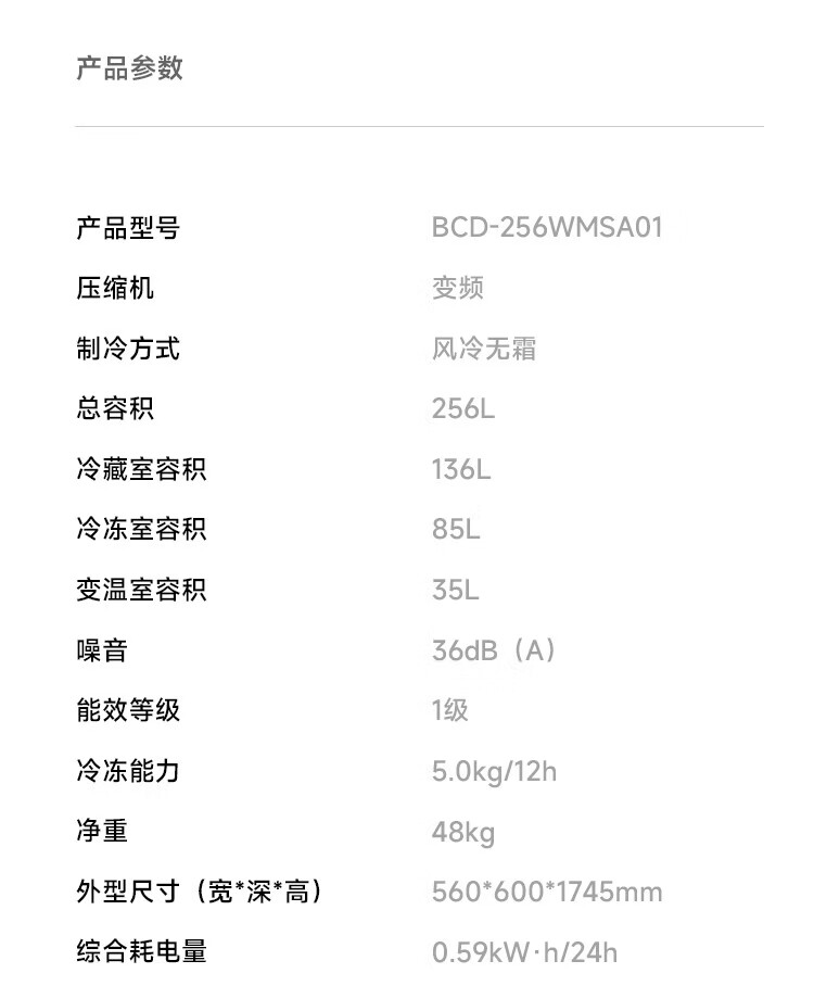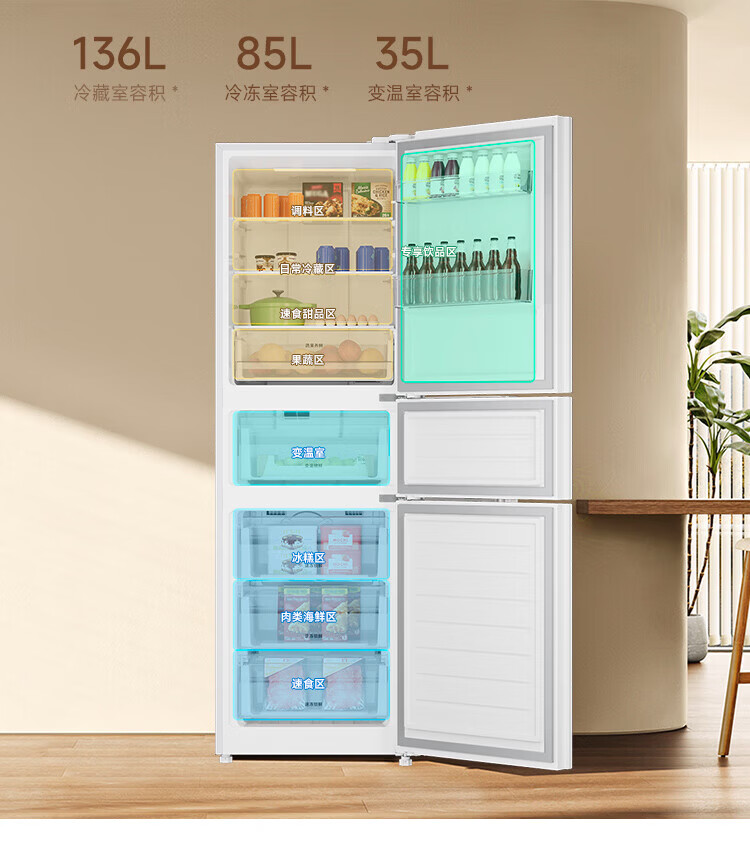 米家冰箱256升三门 变频一级能效银离子除菌净味 风冷无霜小型家用电冰箱宿舍租房BCD-256WMSA01 米家冰箱 三门256L