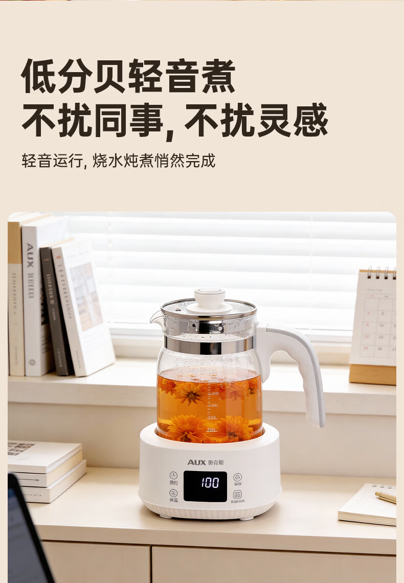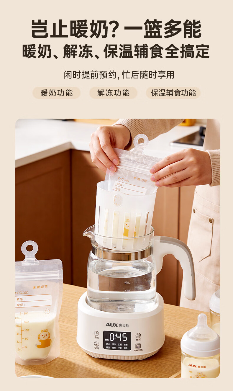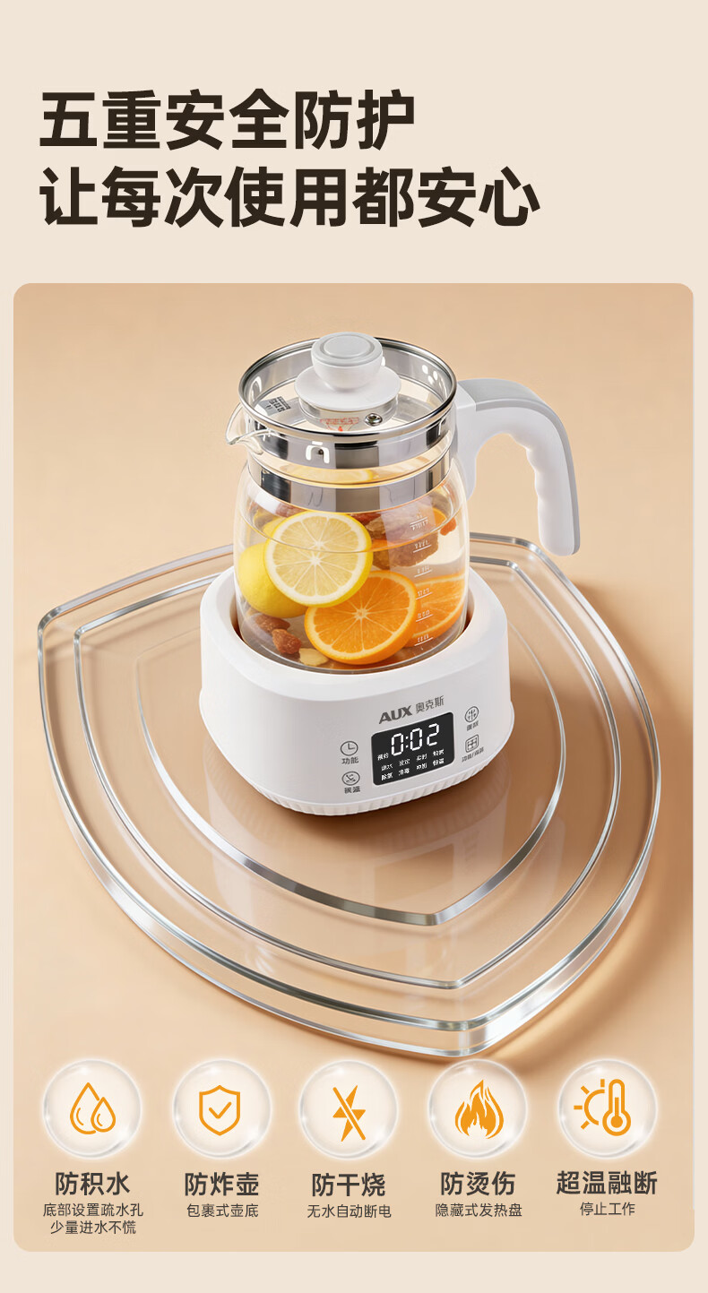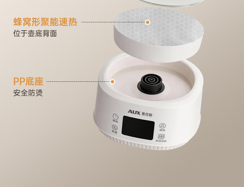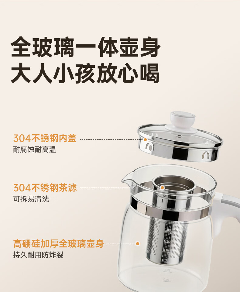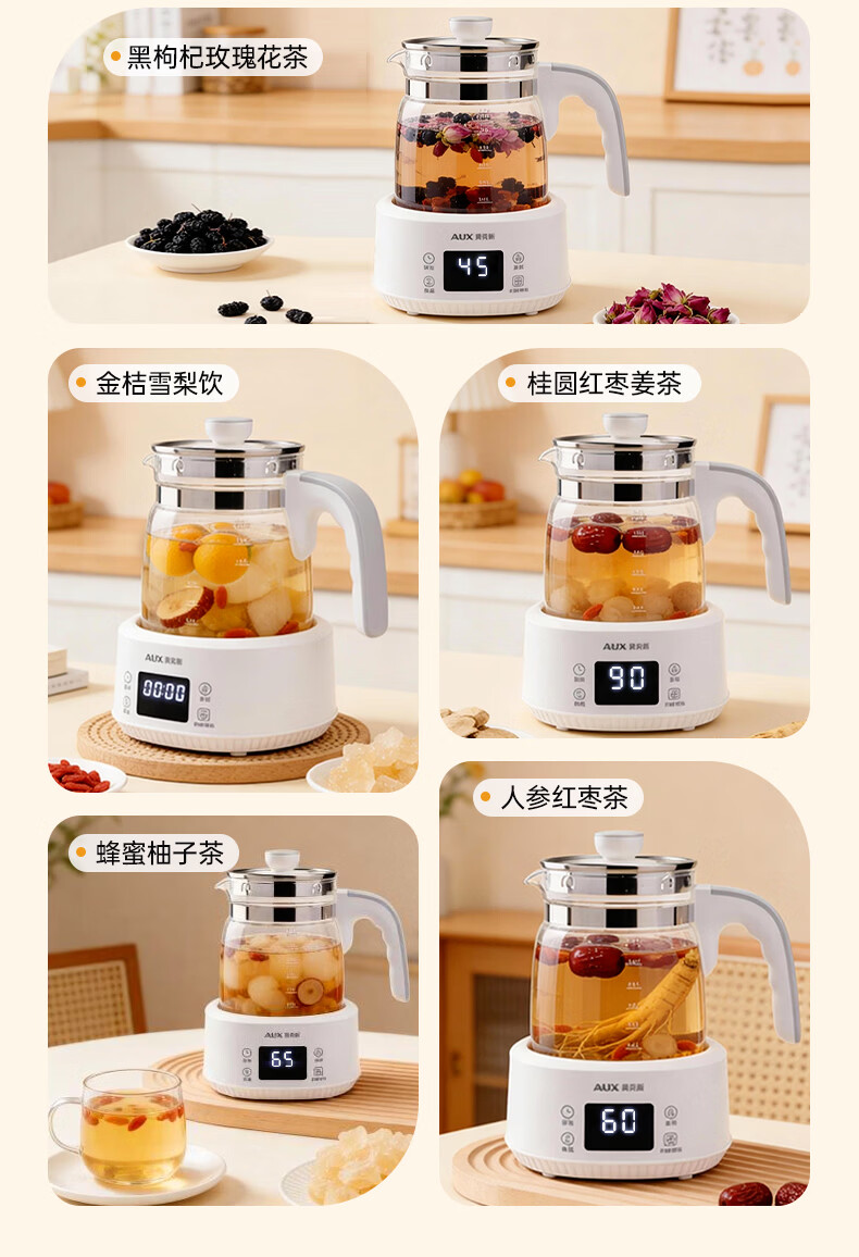奥克斯冲调奶器恒温热水壶全玻璃养生壶保温一体全自动恒温0胶水婴儿用养生烧水壶炖煮一体多功能煮茶壶 1.3L 加厚全玻璃+滤网