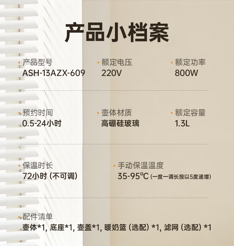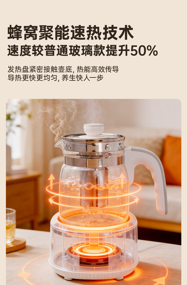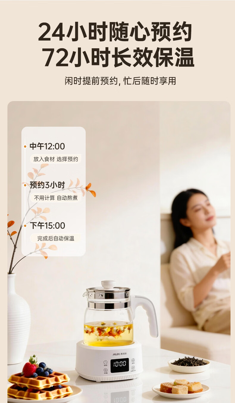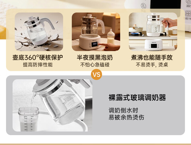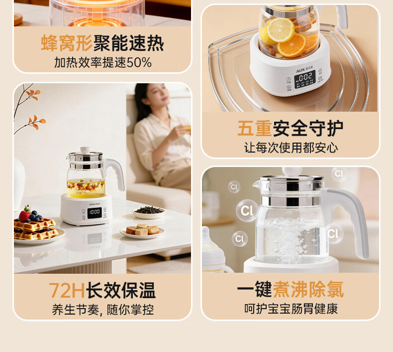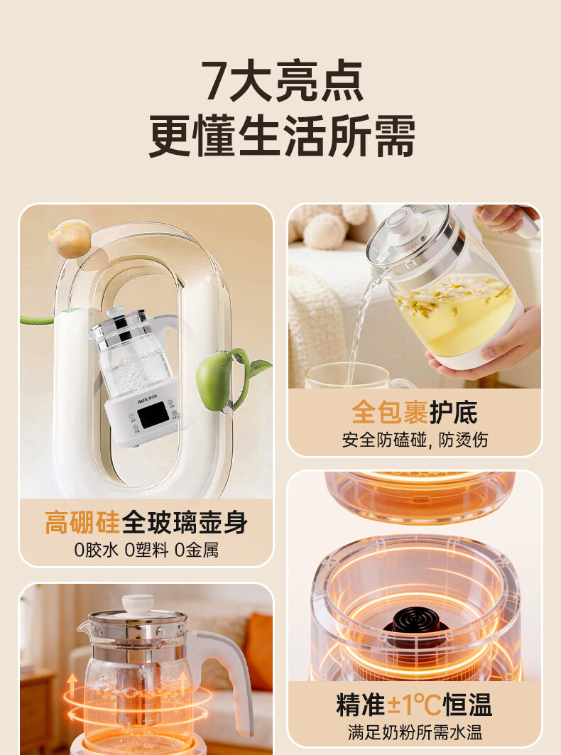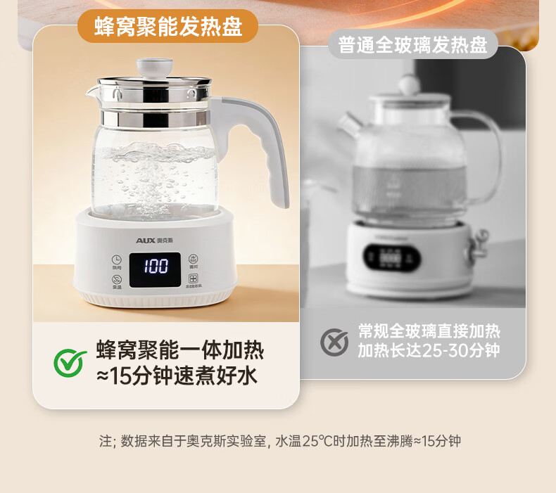 奥克斯冲调奶器恒温热水壶全玻璃养生壶保温一体全自动恒温0胶水婴儿用养生烧水壶炖煮一体多功能煮茶壶 1.3L 加厚全玻璃+滤网