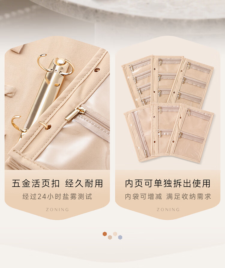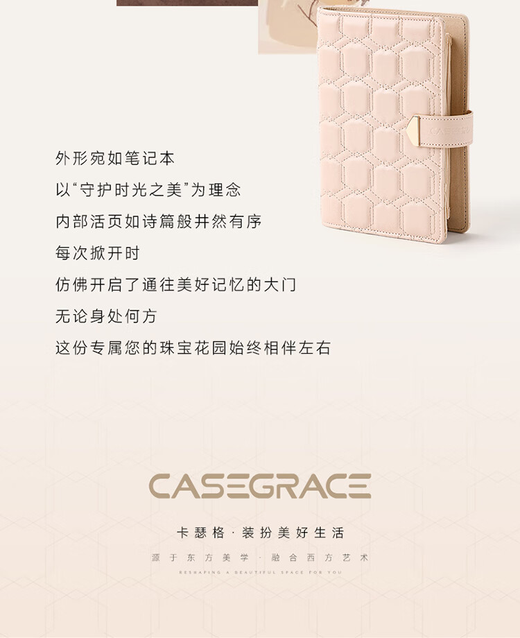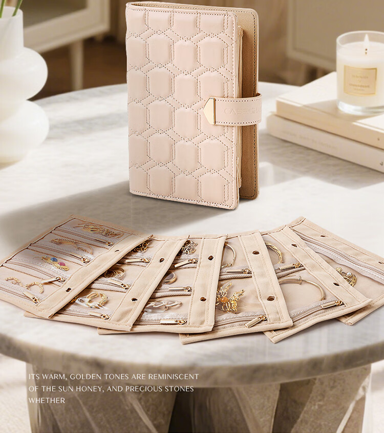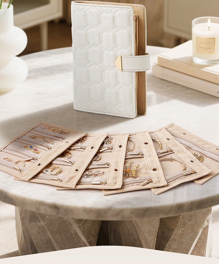 卡瑟格(CASEGRACE)黄金收纳册首饰盒首饰金银珠宝饰品收纳包笔记本手饰精致收纳盒 黄金收纳册大号奶油白【共6页】