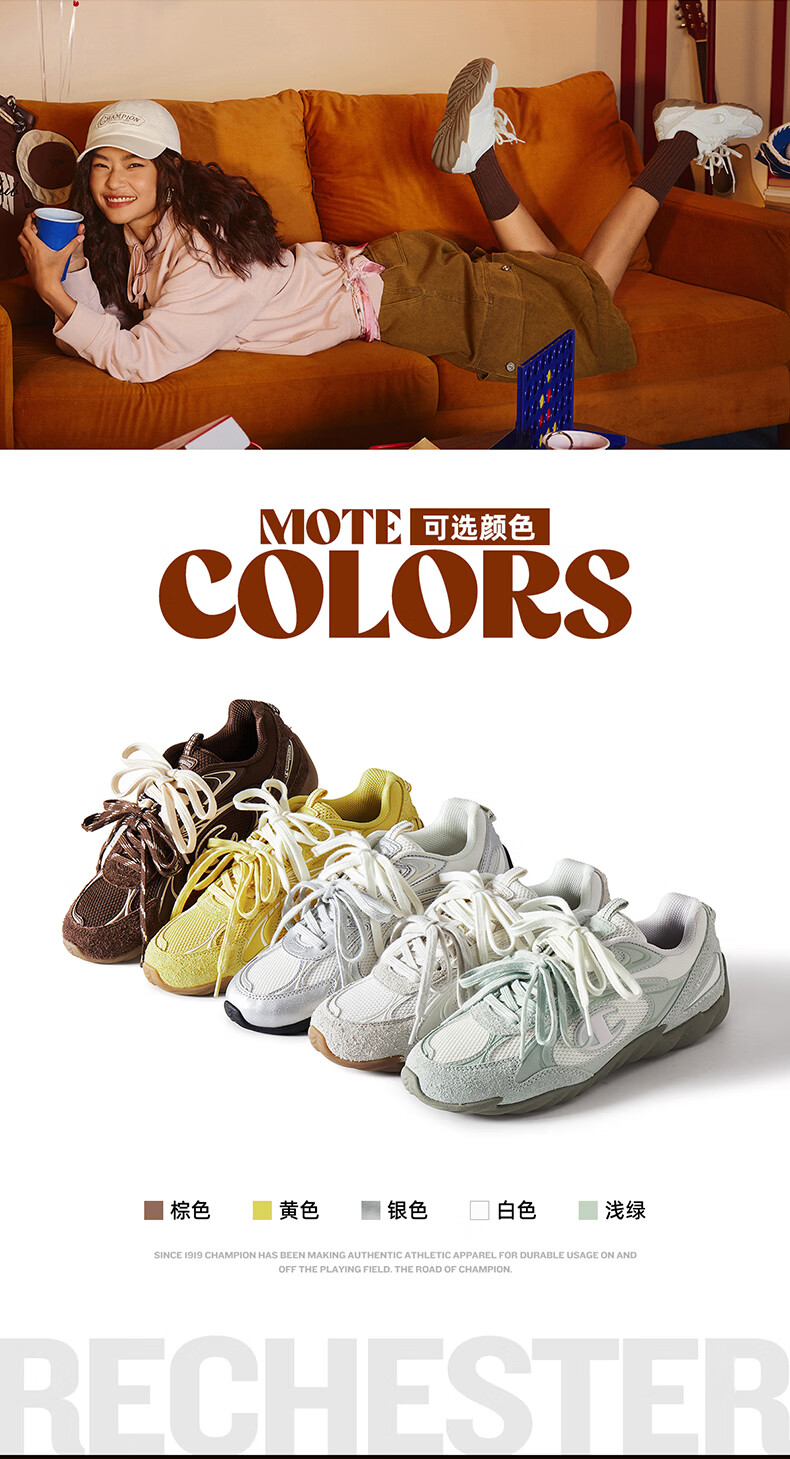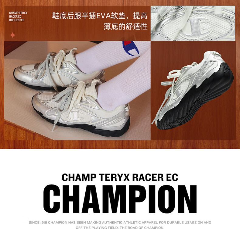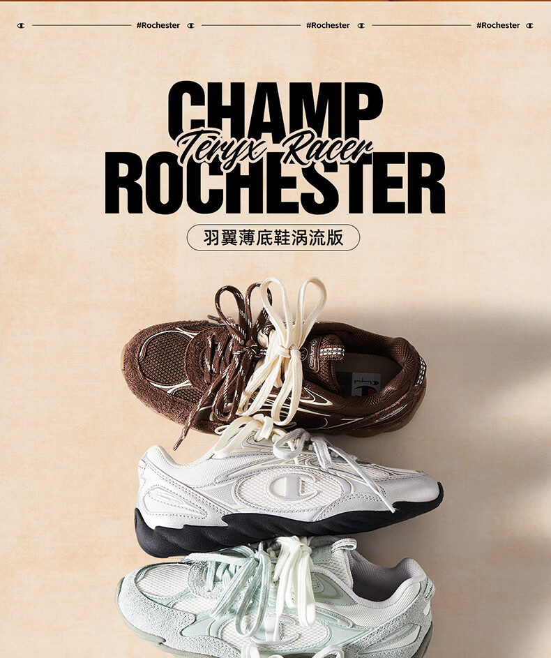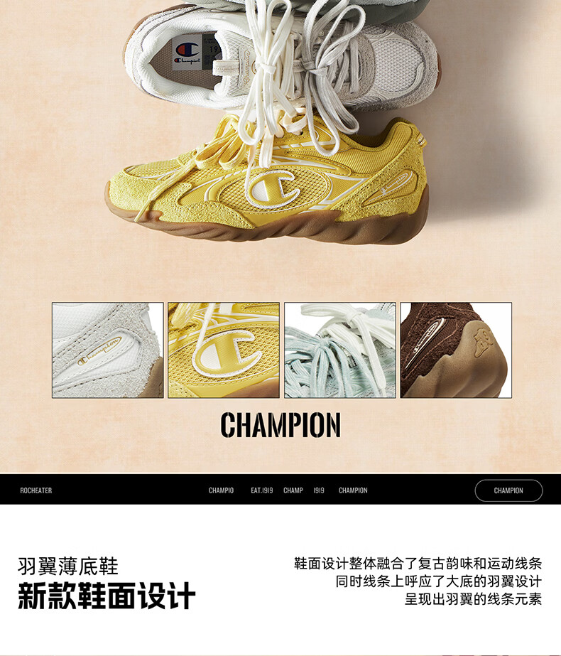 Champion美国冠军2025新款跑鞋男女 复古百搭舒适运动羽翼薄底板鞋25FWR82