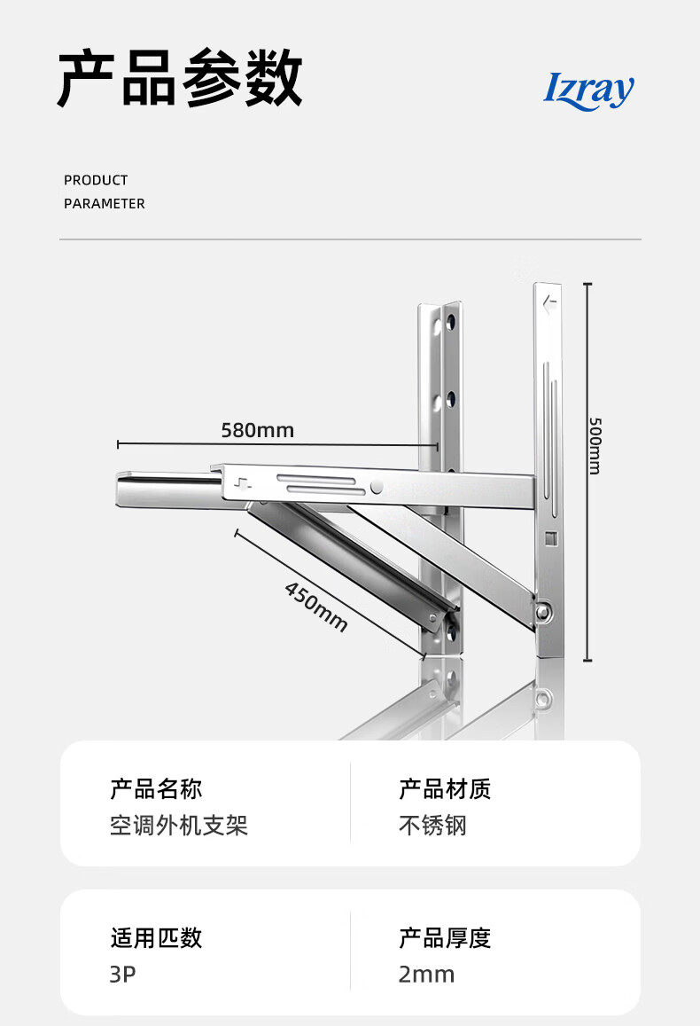 艾知瑞加厚不锈钢空调外机支架空调专用架加厚不锈钢空调支架适用奥克斯小米格力美的海尔科龙TCL等通用
