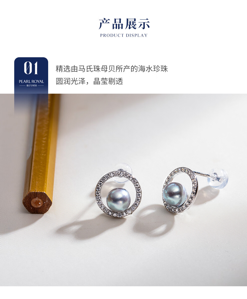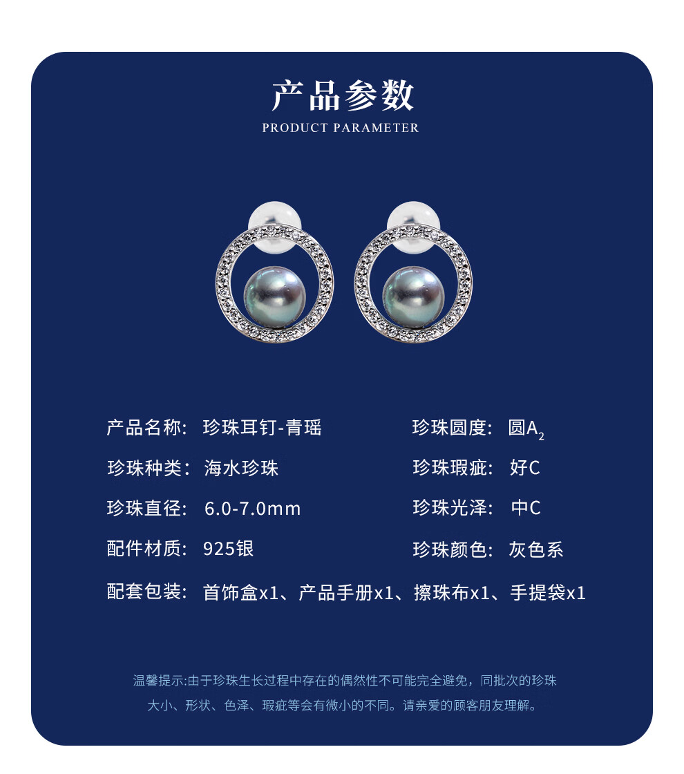 南珠宫青瑶925银真多麻海水珍珠耳环强光圆形珍珠耳钉优雅百搭送妈妈 6.0-7.0mm 925银海水珍珠耳环