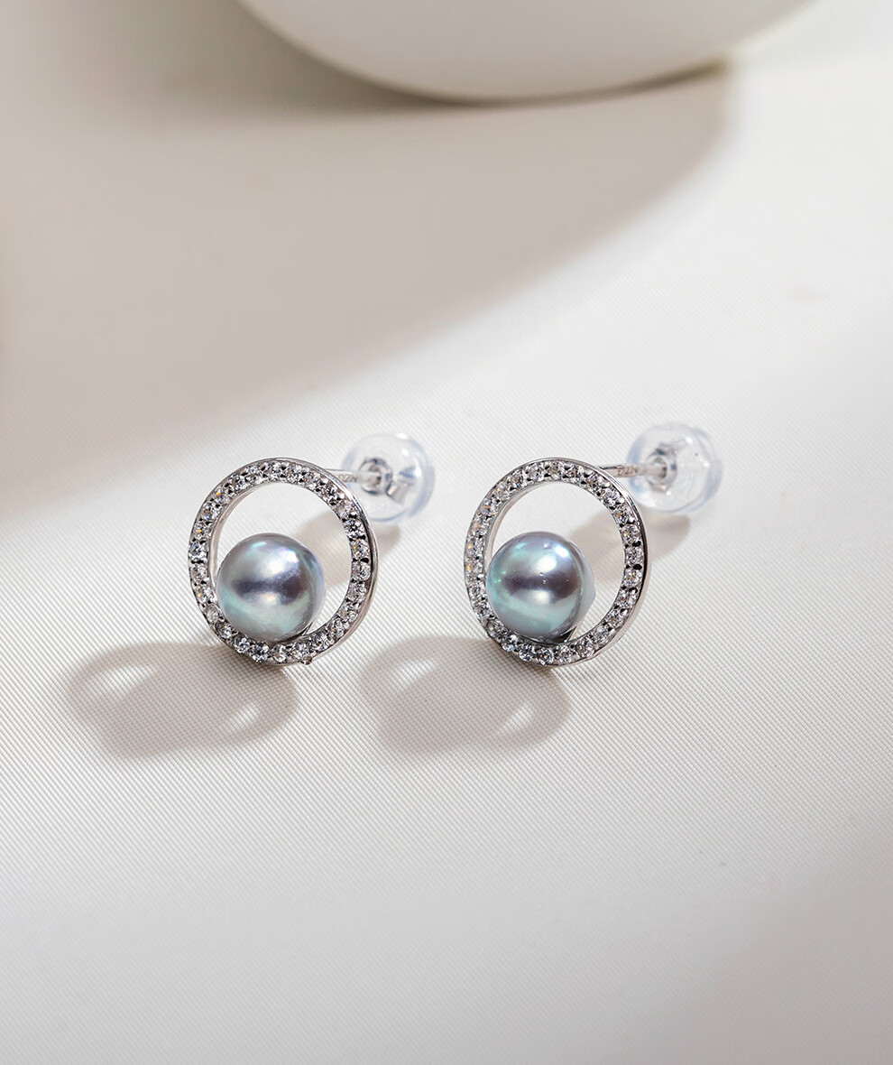 南珠宫流光18K金大溪地海水珍珠耳环强光圆形精致百搭生日礼物送老婆 银色款 8.0-9.0mm
