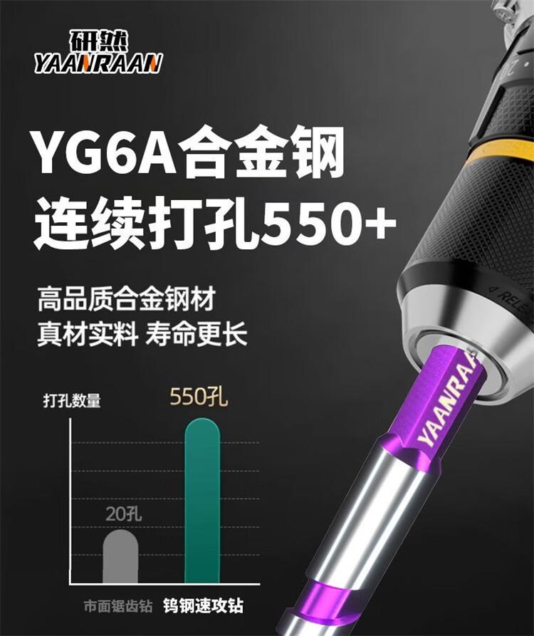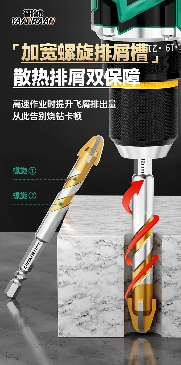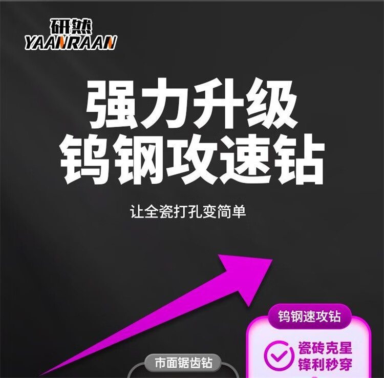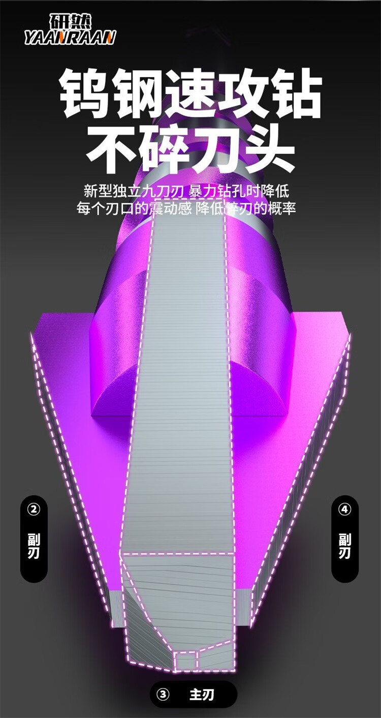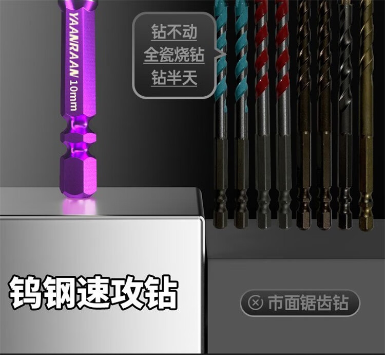 研然 钨钢速攻钻四刃合金偏心钻头瓷砖混凝土打孔 速攻钻6+8+10+12mm