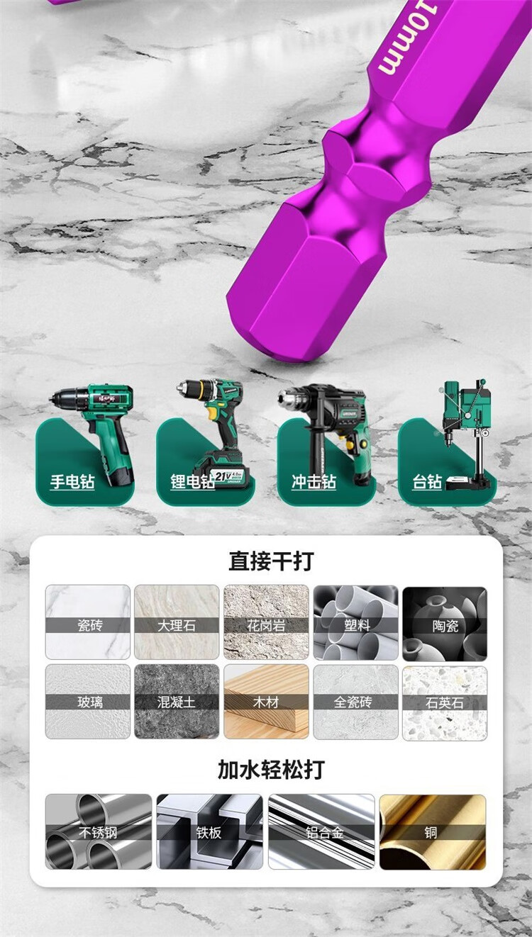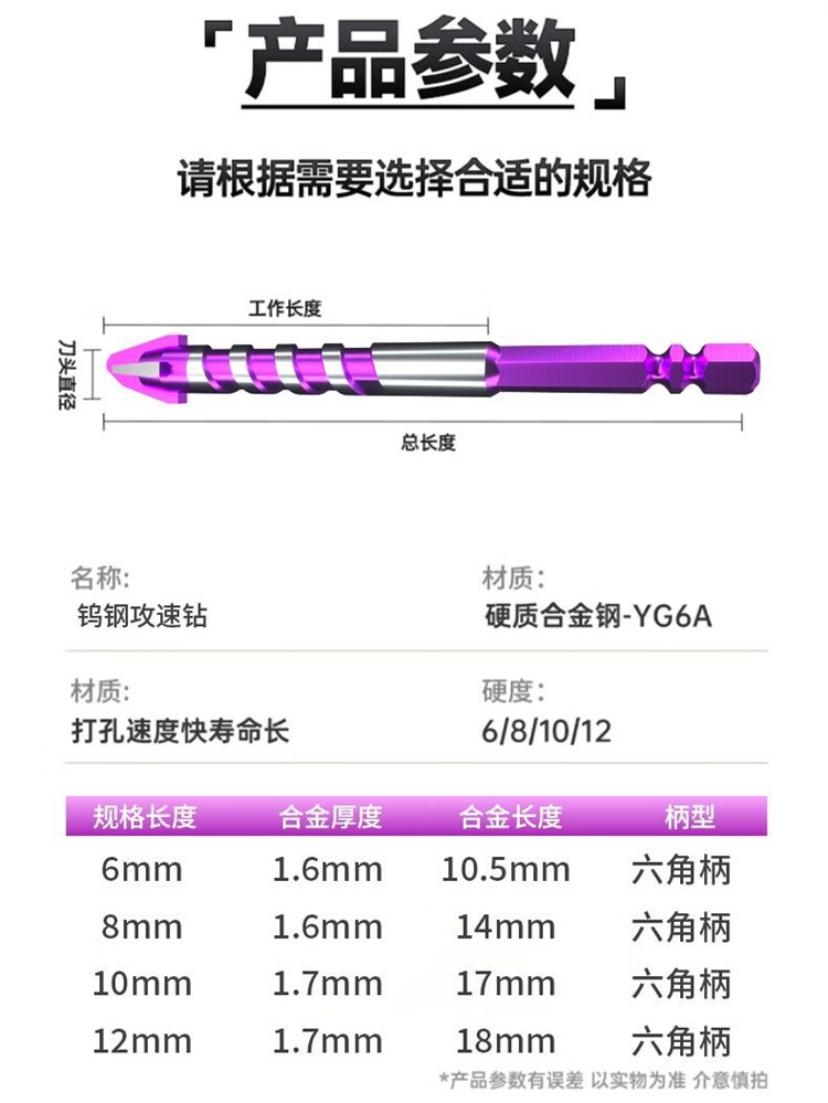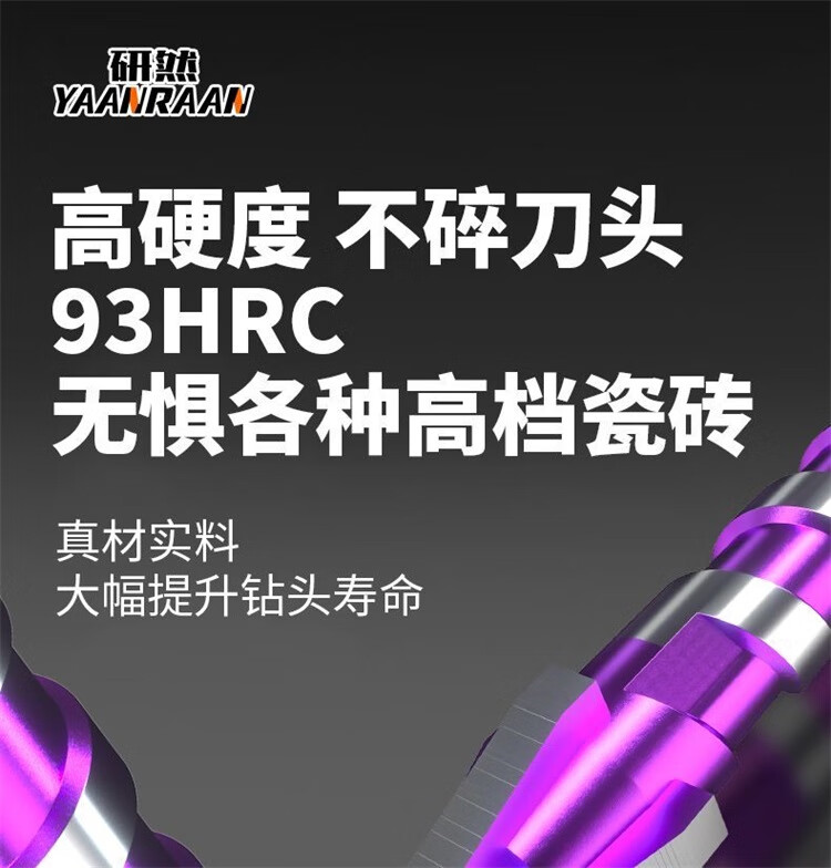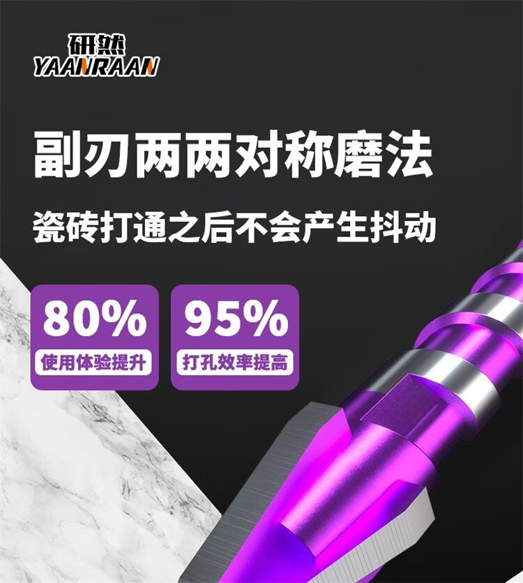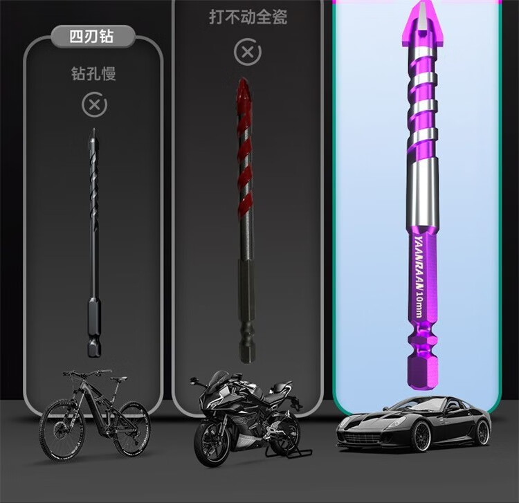 研然 钨钢速攻钻四刃合金偏心钻头瓷砖混凝土打孔 速攻钻6+8+10+12mm