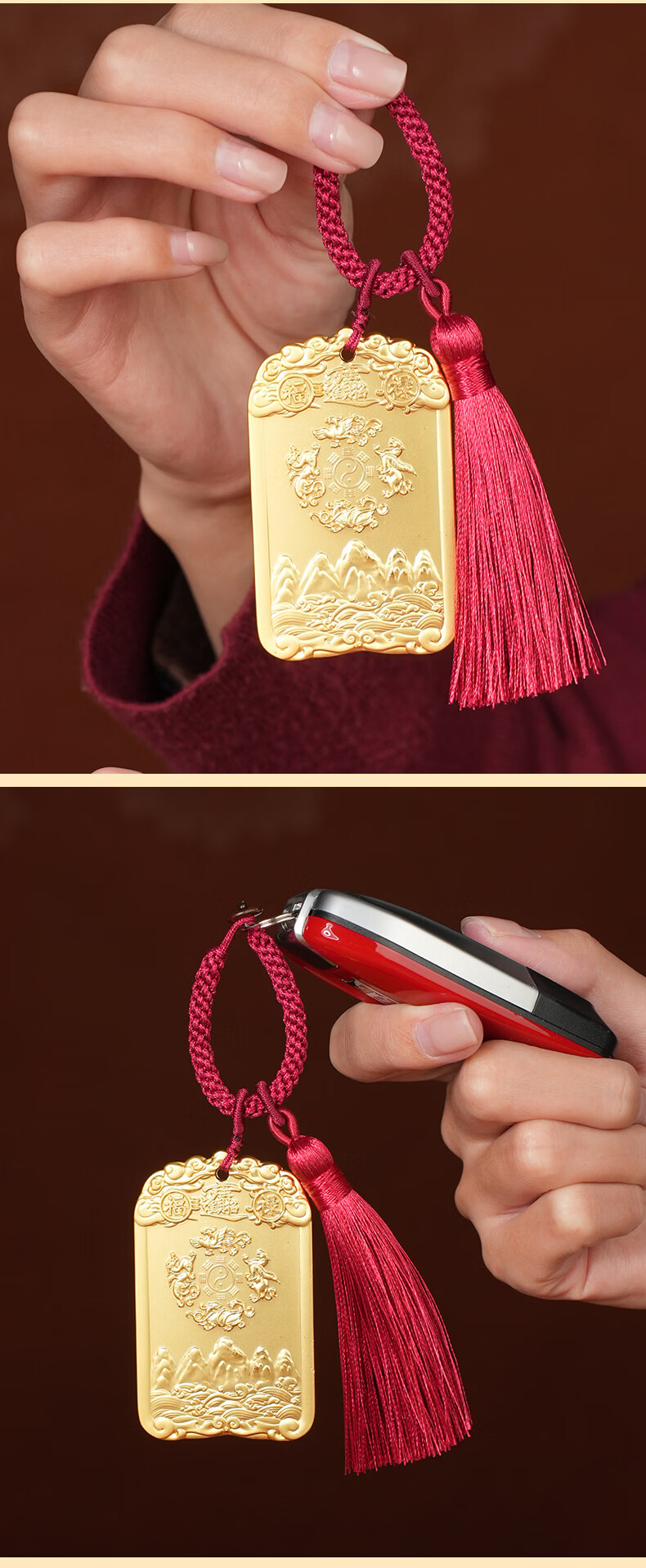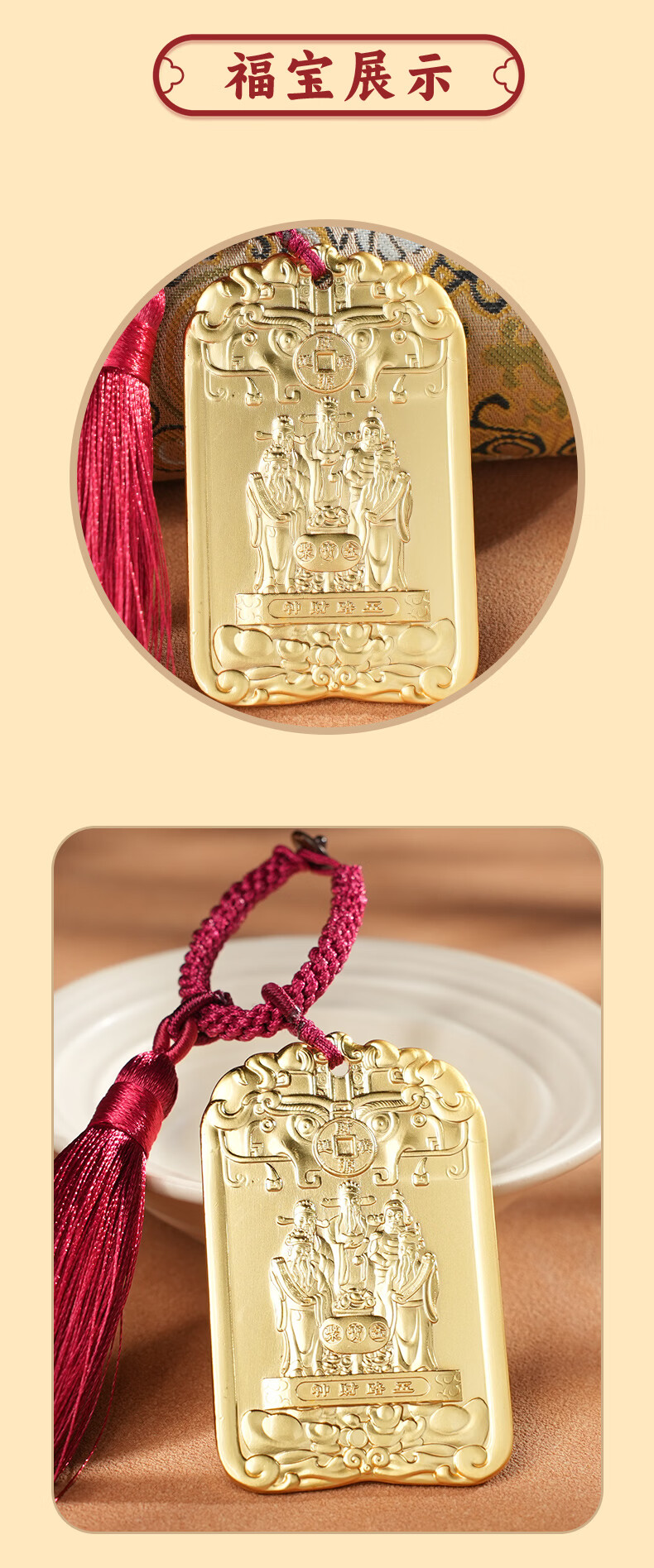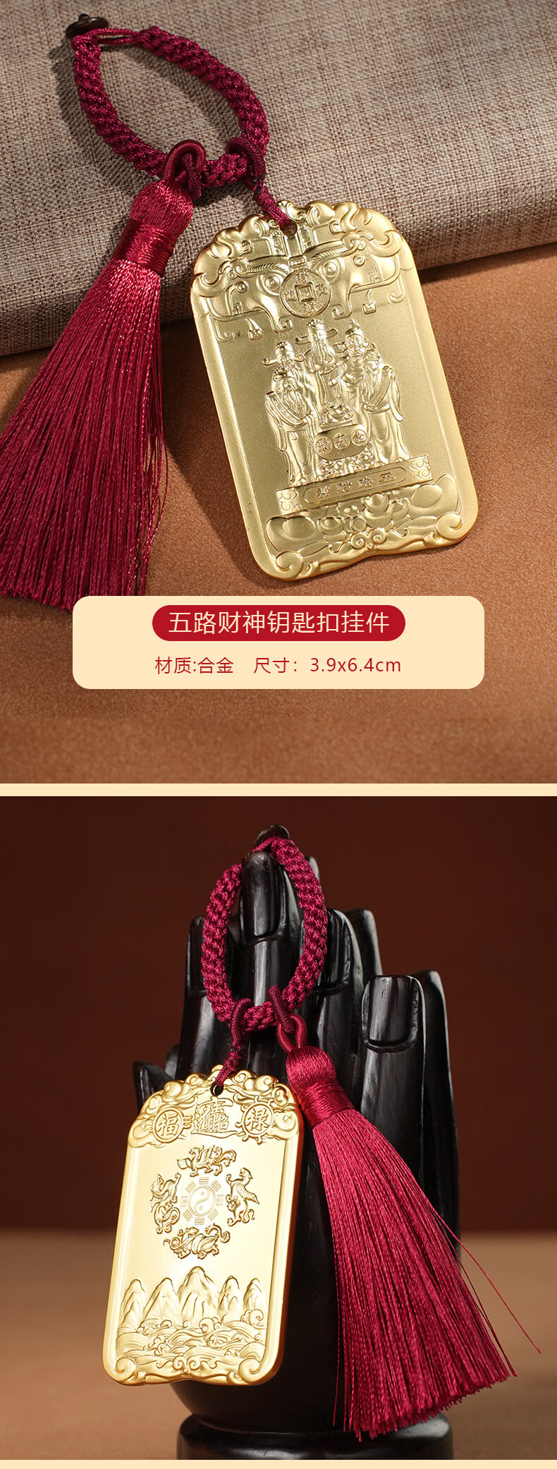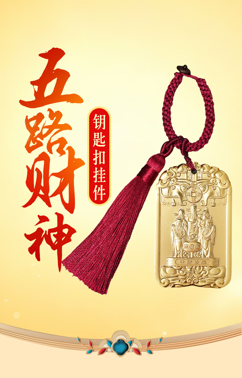 慈元阁五路财神令牌钥匙扣复古高档招财盘玩汽车钥匙扣挂件包包挂饰礼物 五路财神令牌钥匙扣