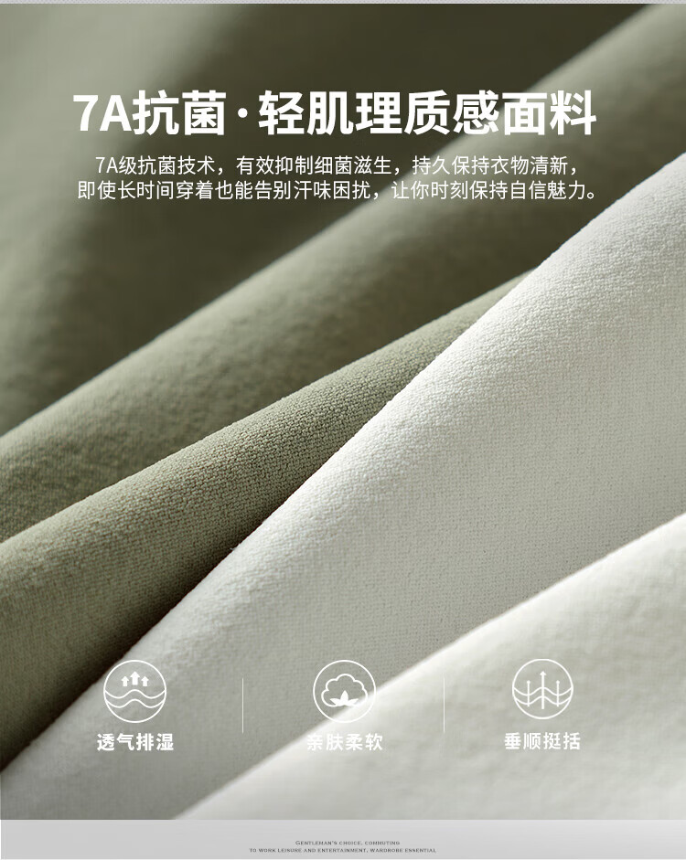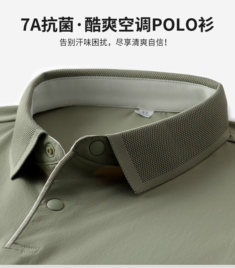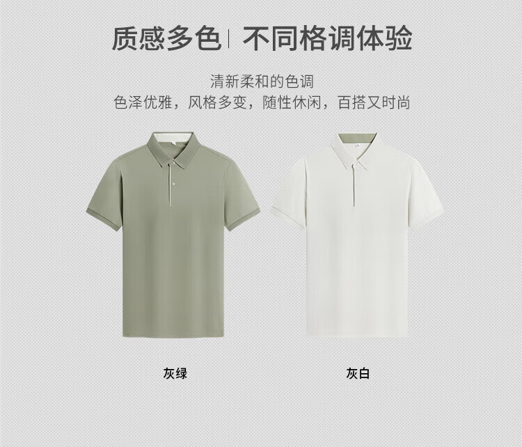 杉杉(FIRS)【7A抗菌】短袖T恤男夏提花透气亲肤商务休闲纯色轻薄polo领上衣 灰绿 M 170/88A