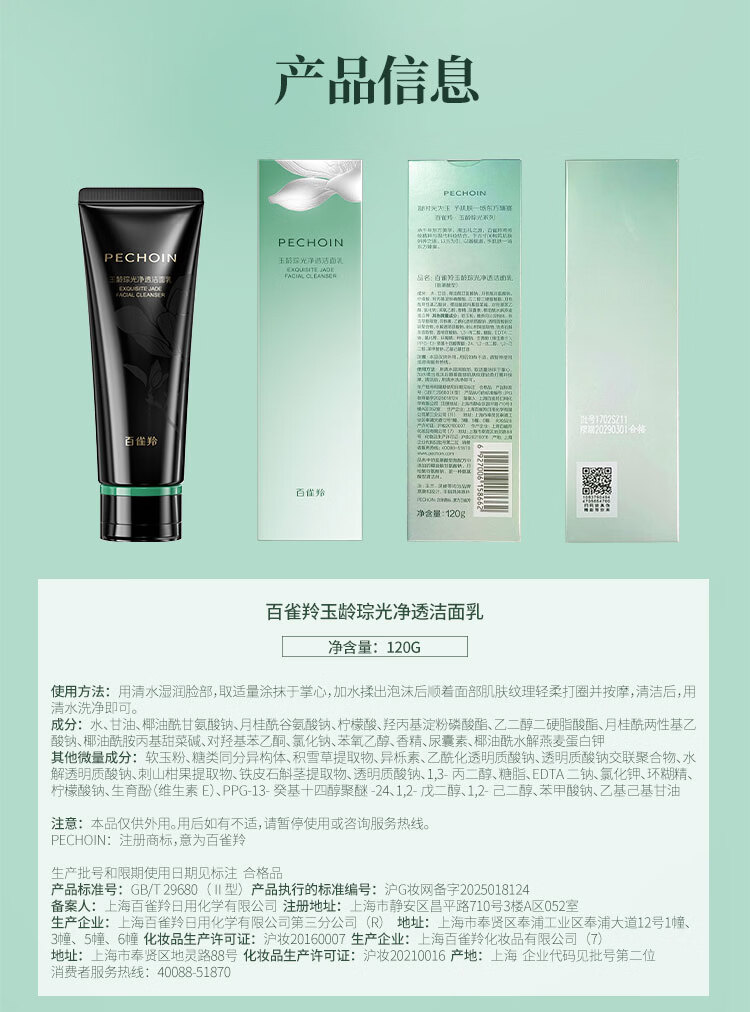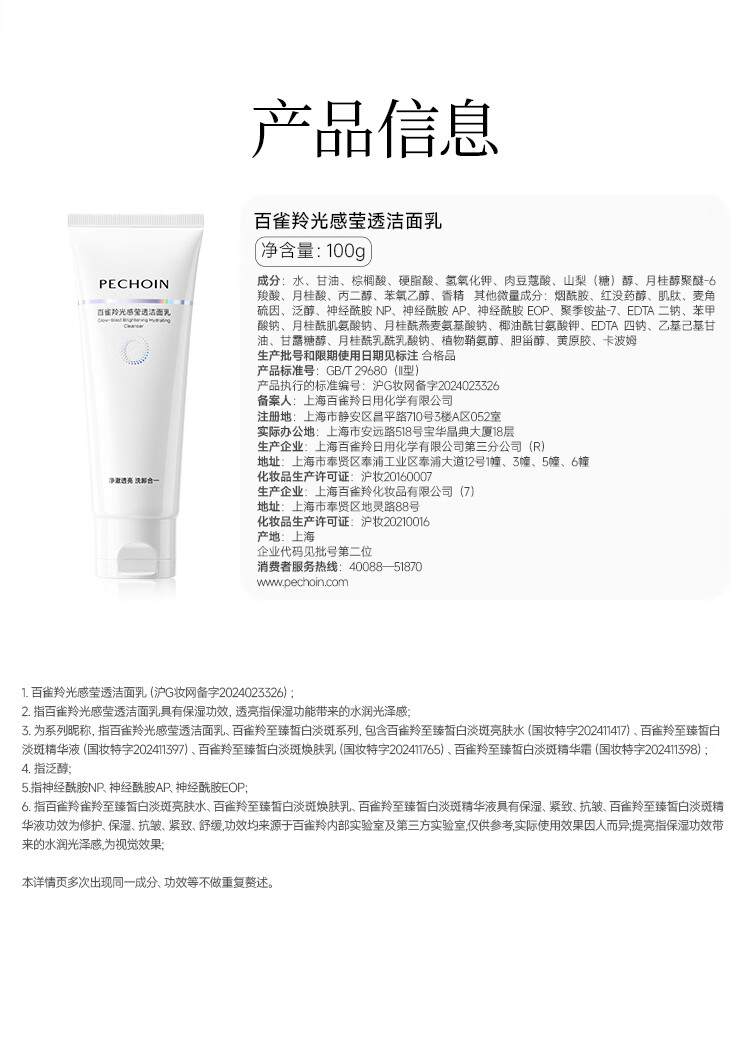 百雀羚屈臣氏百雀羚净透洁面乳 光感莹透洁面乳 100g