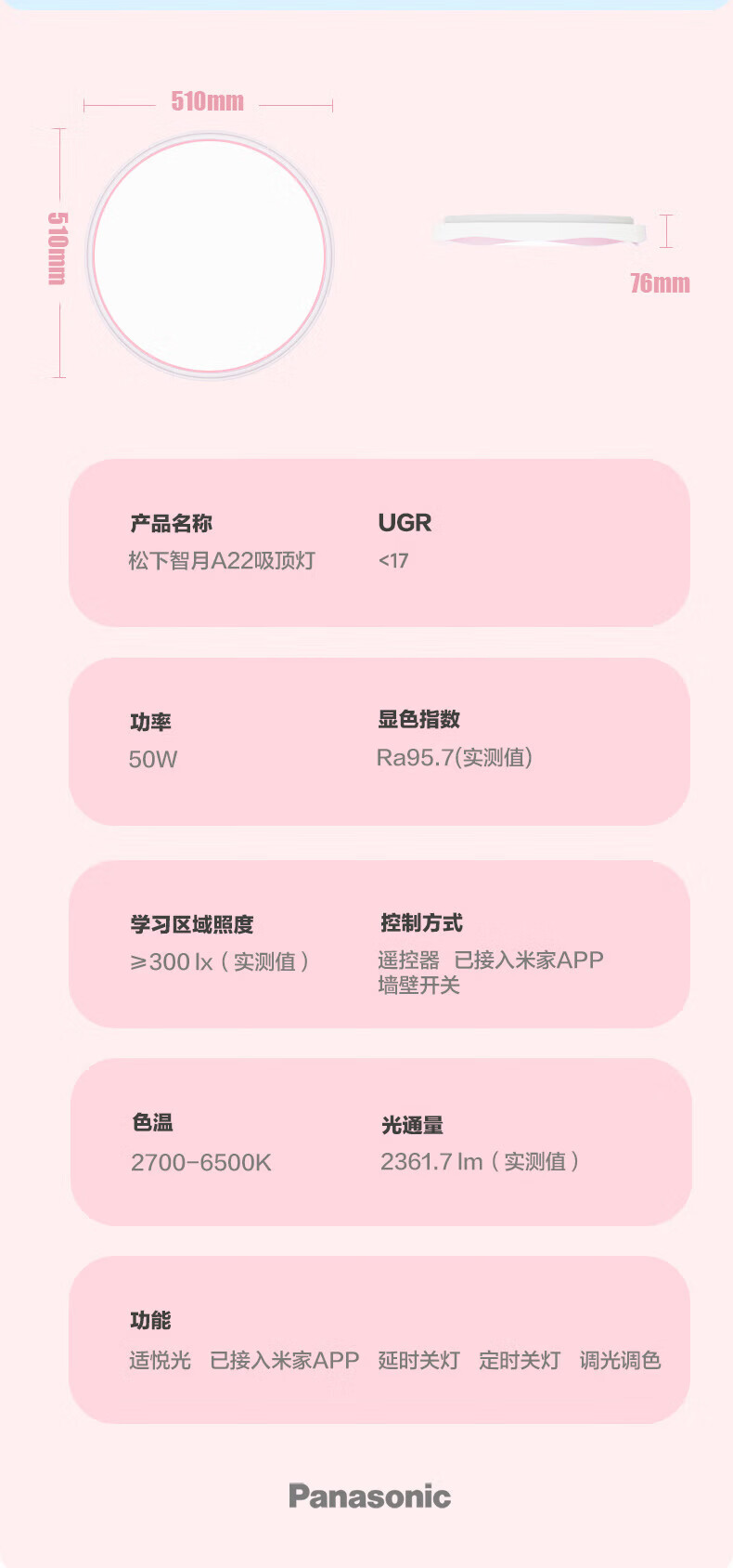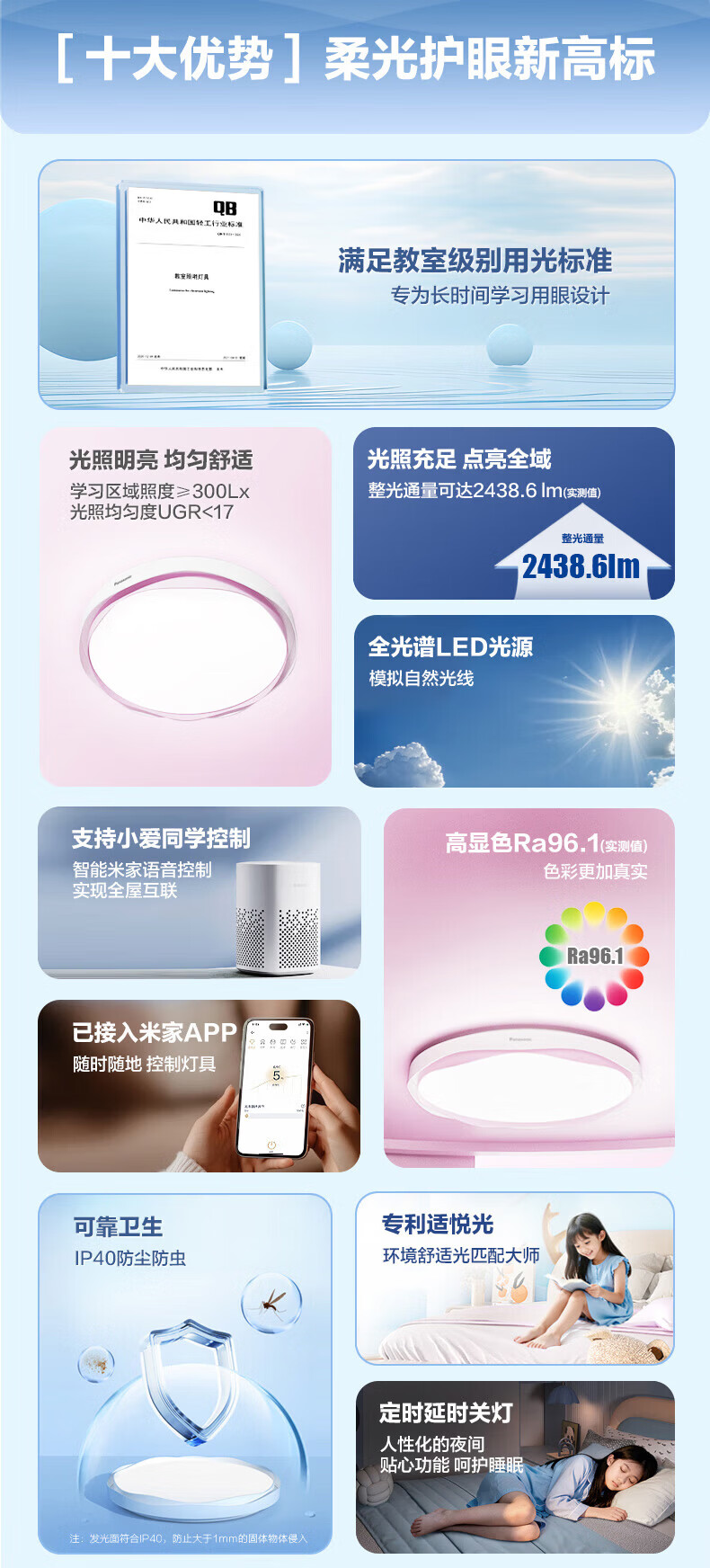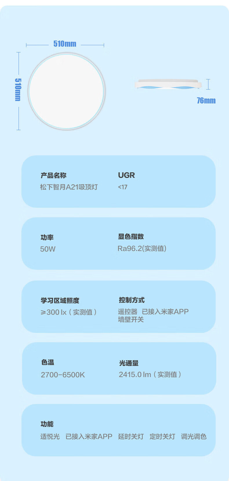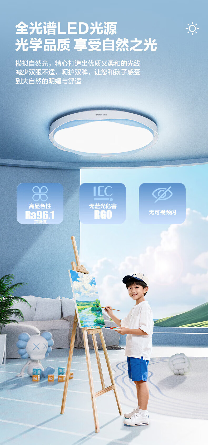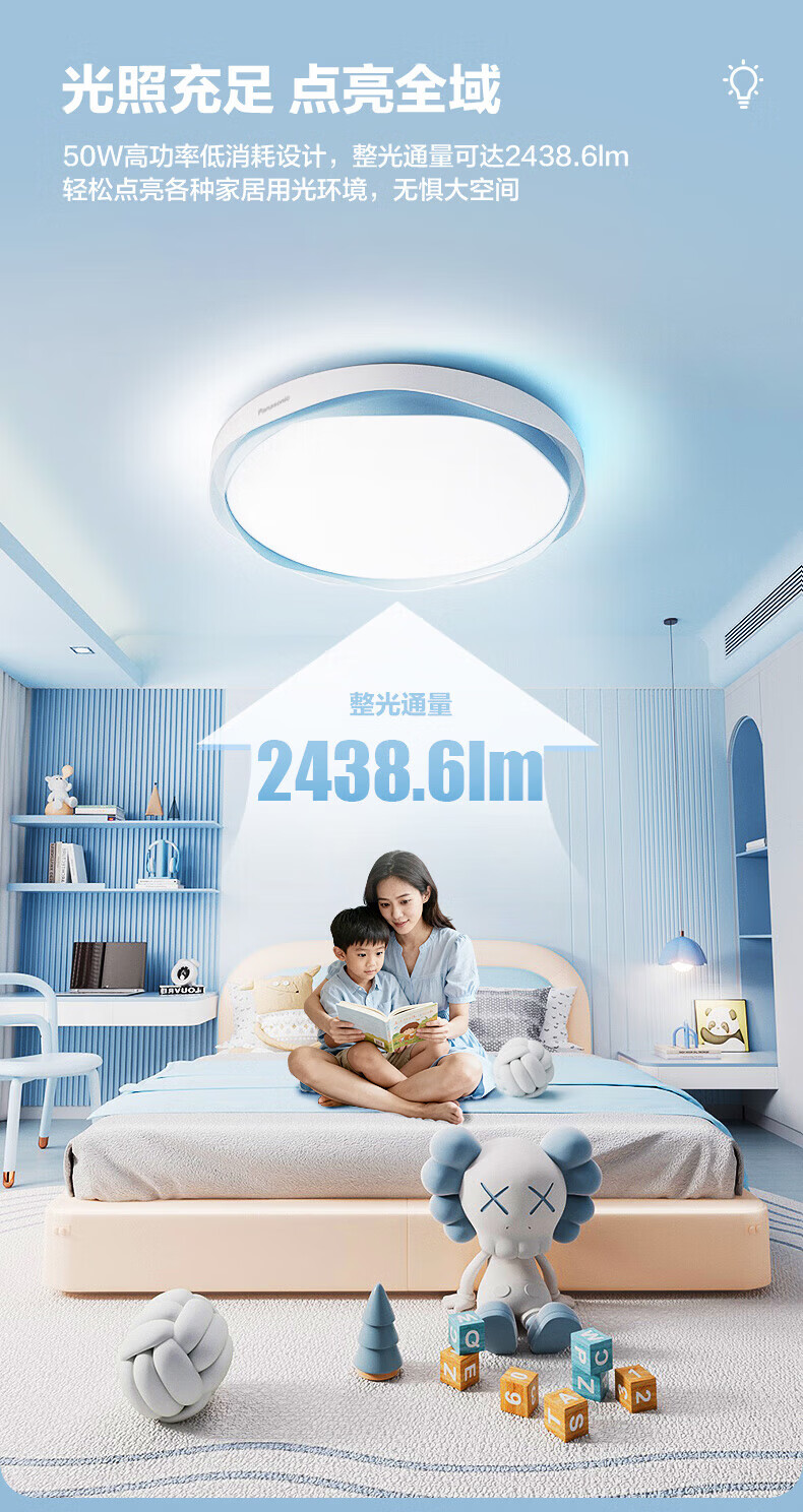 松下吸顶灯全光谱智能教育照明儿童房卧室灯 50W 2500lm 教室照明儿童房蓝色