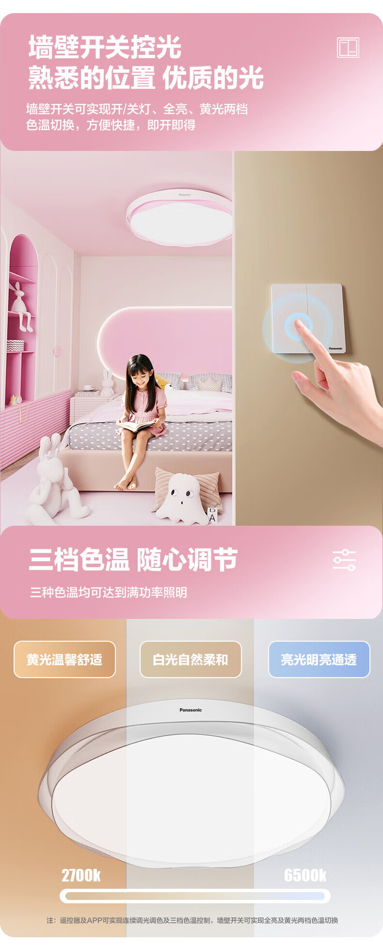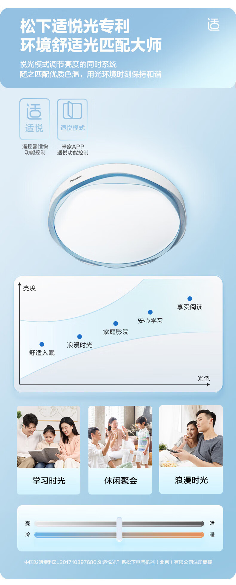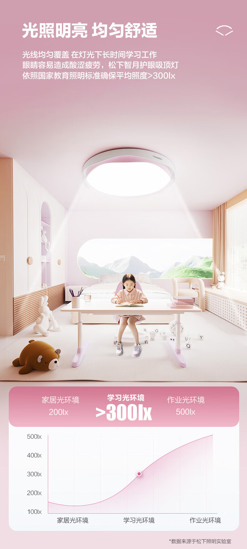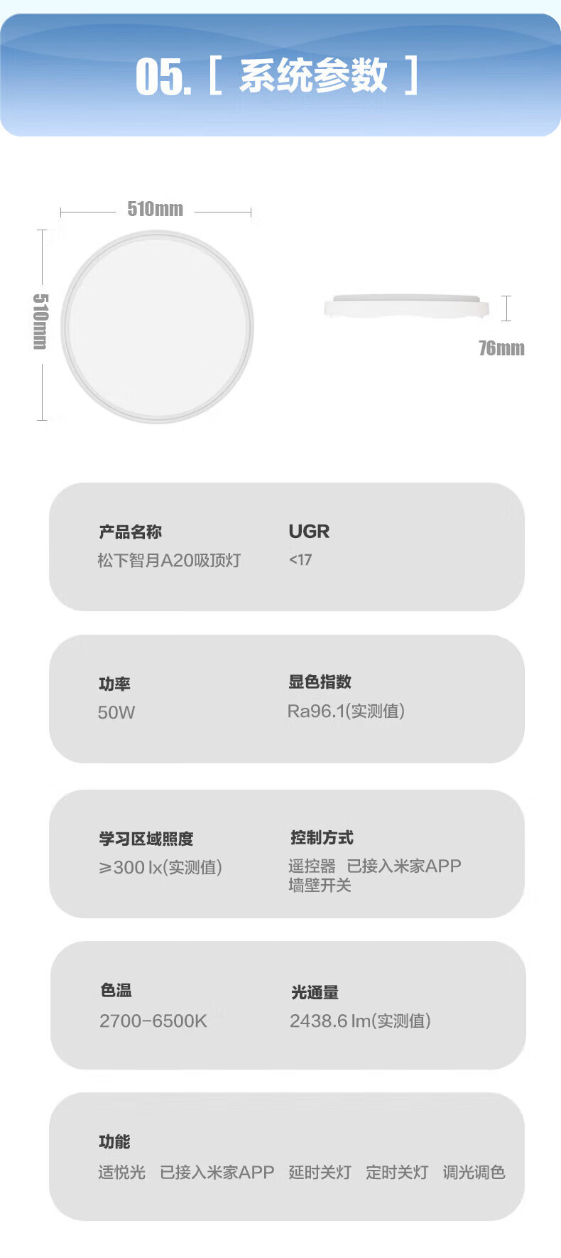 松下吸顶灯全光谱智能教育照明儿童房卧室灯 50W 2500lm 教室照明儿童房蓝色