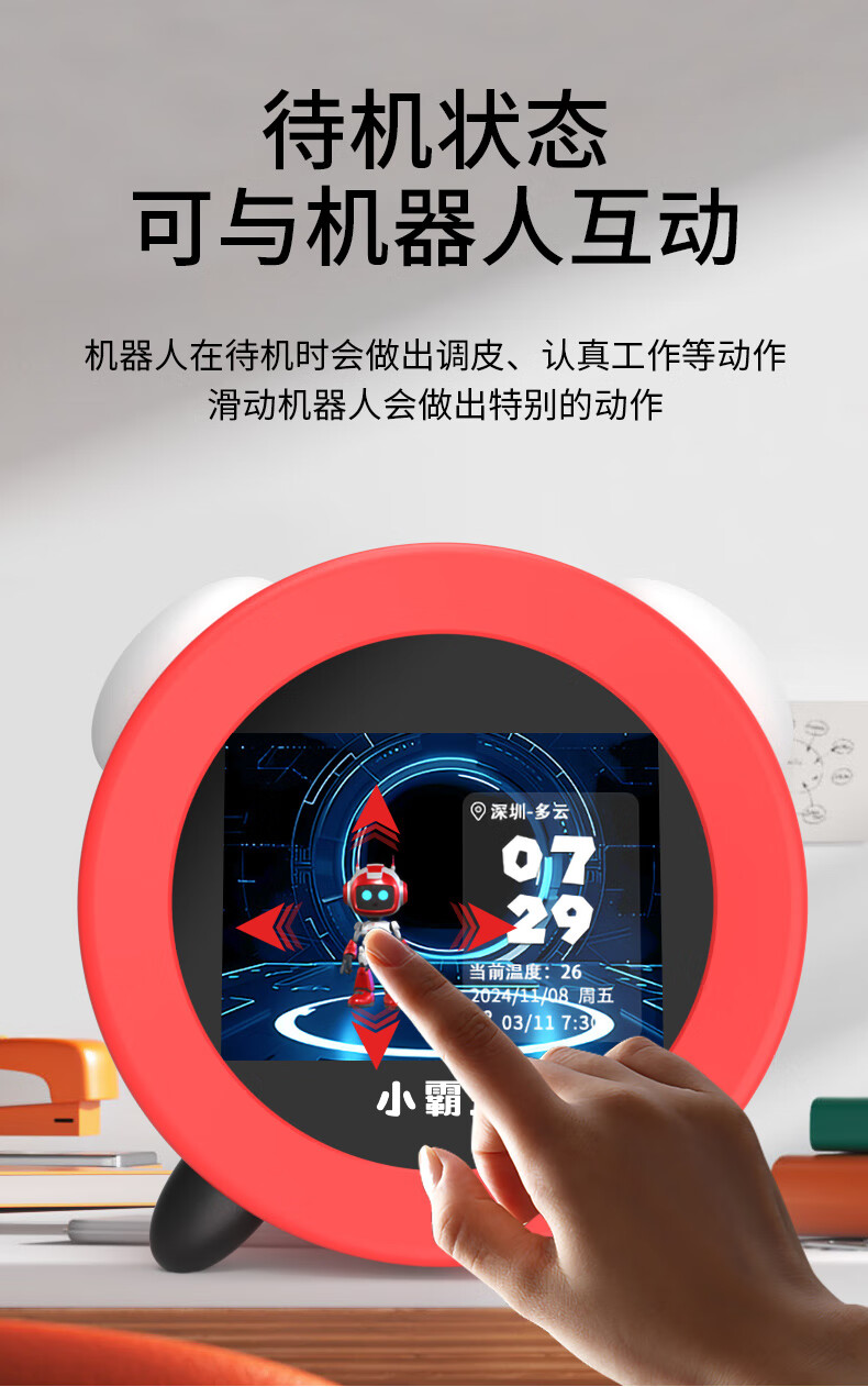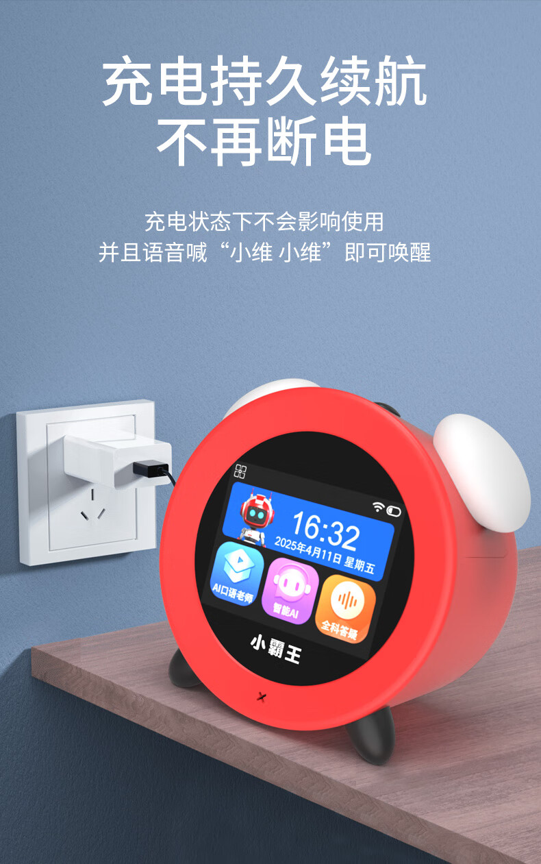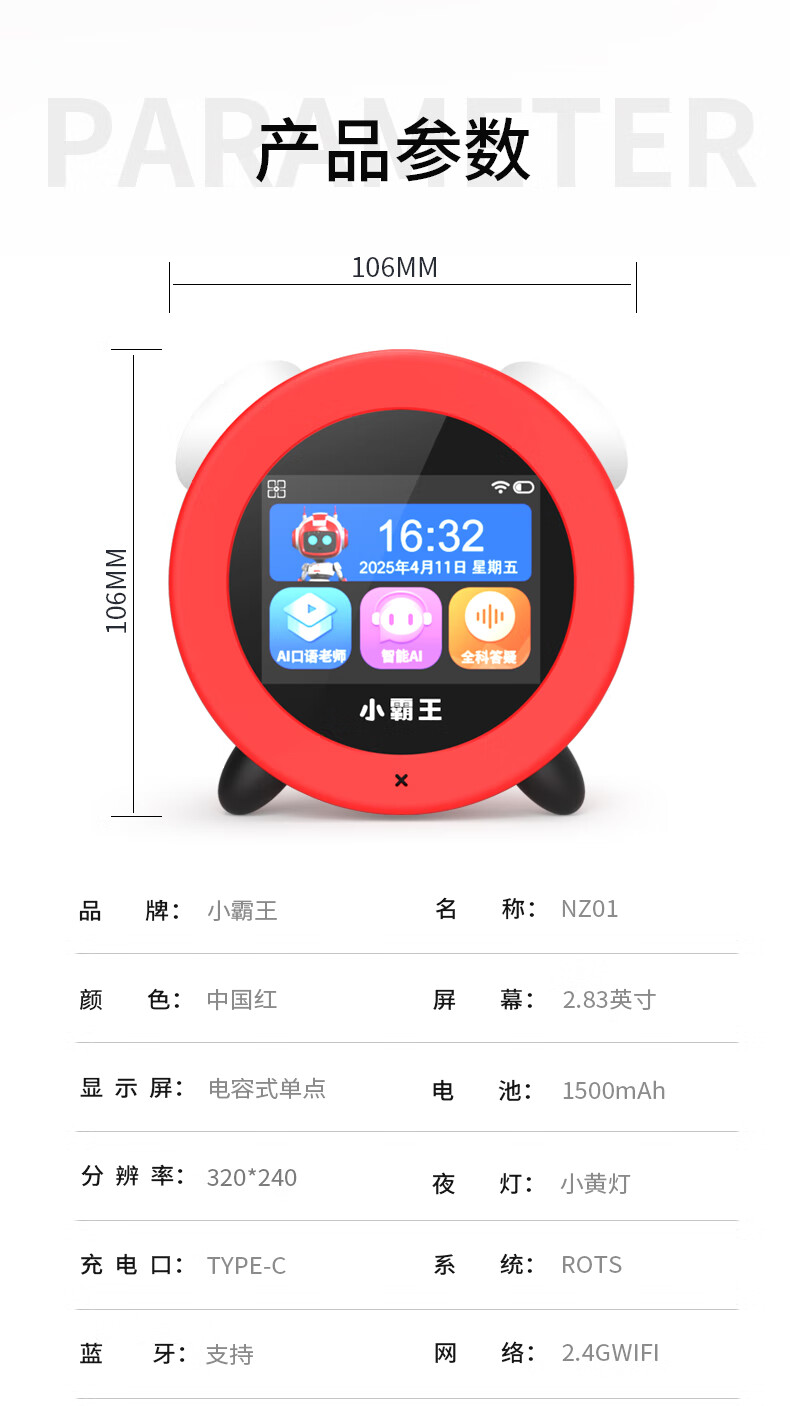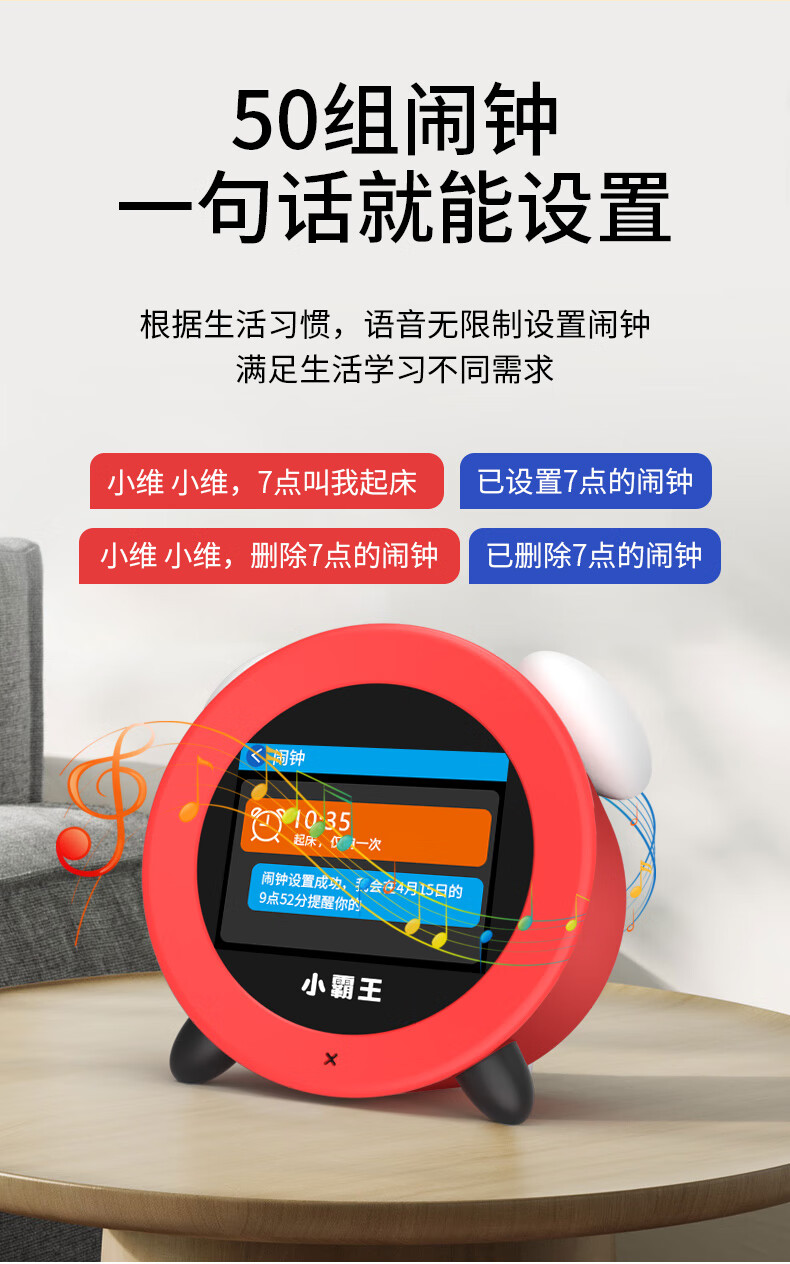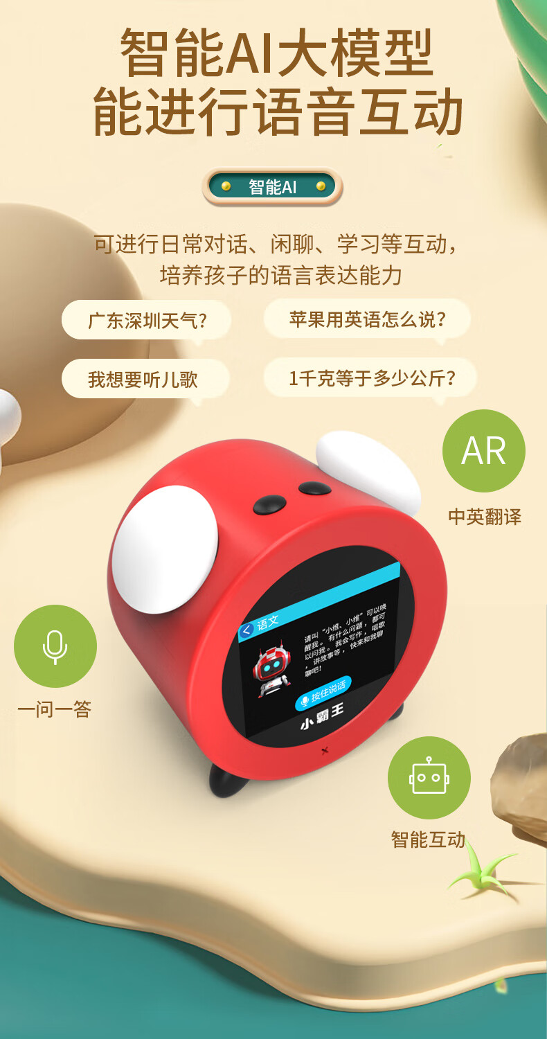 小霸王NZ01智能闹钟AI大模型语音互动学习机听儿歌故事英语学生儿童早教对话交流 红色【海量学习音频+自律管理】 智能AI大模型小初高语音互动解析