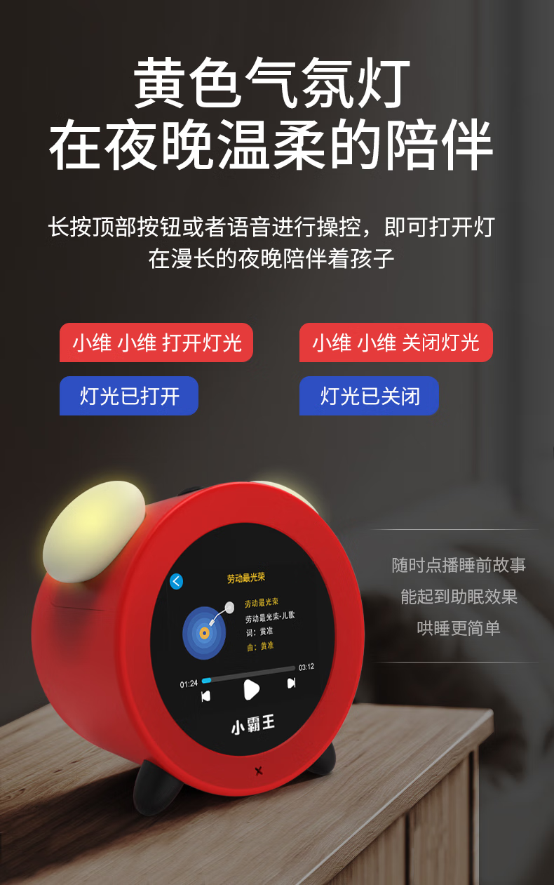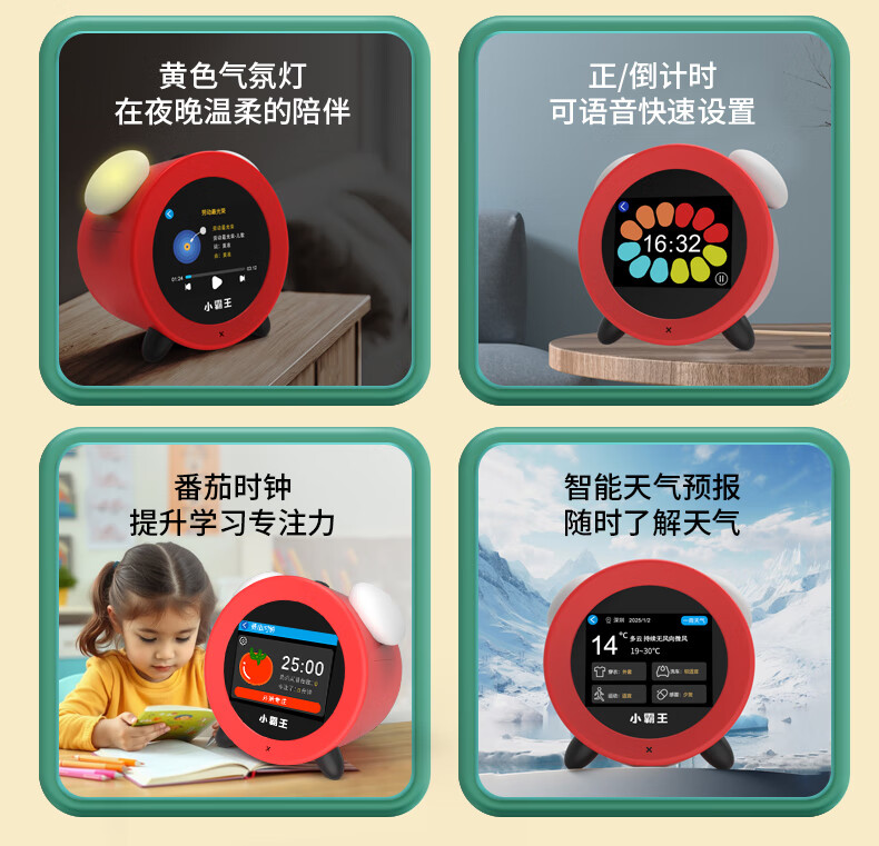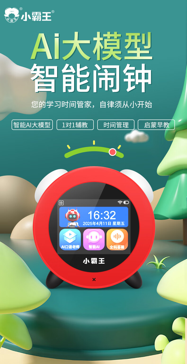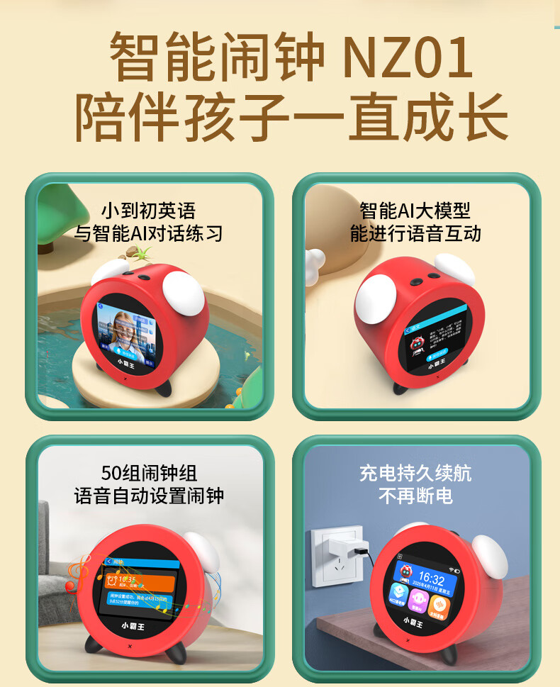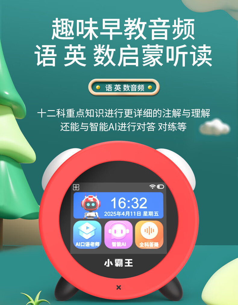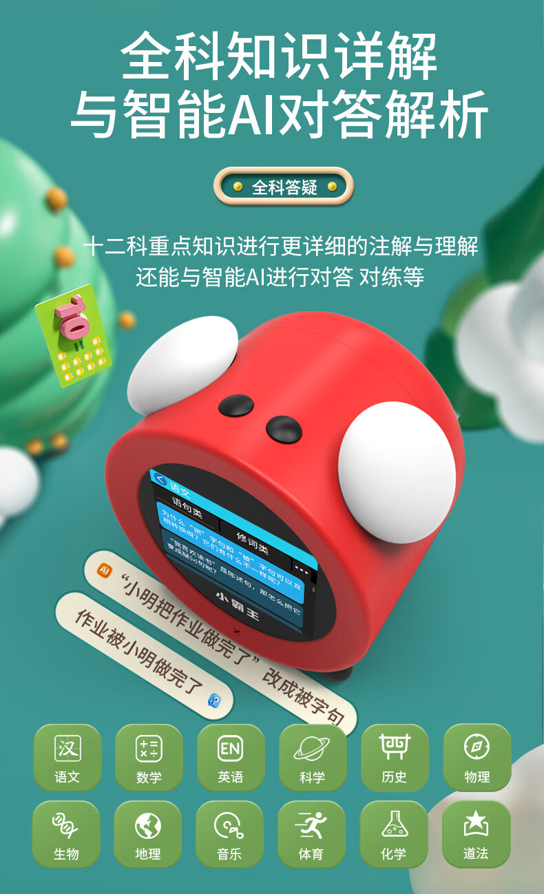 小霸王NZ01智能闹钟AI大模型语音互动学习机听儿歌故事英语学生儿童早教对话交流 红色【海量学习音频+自律管理】 智能AI大模型小初高语音互动解析