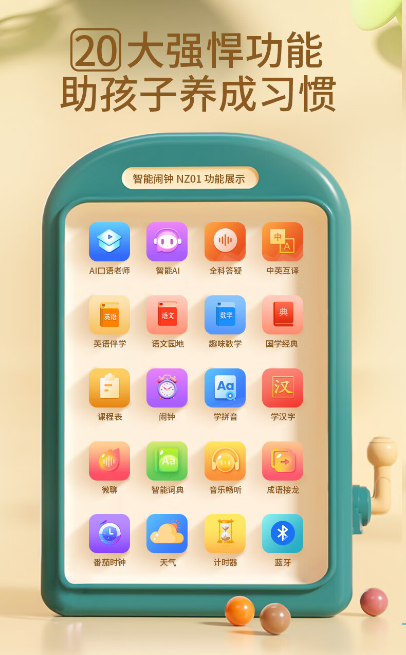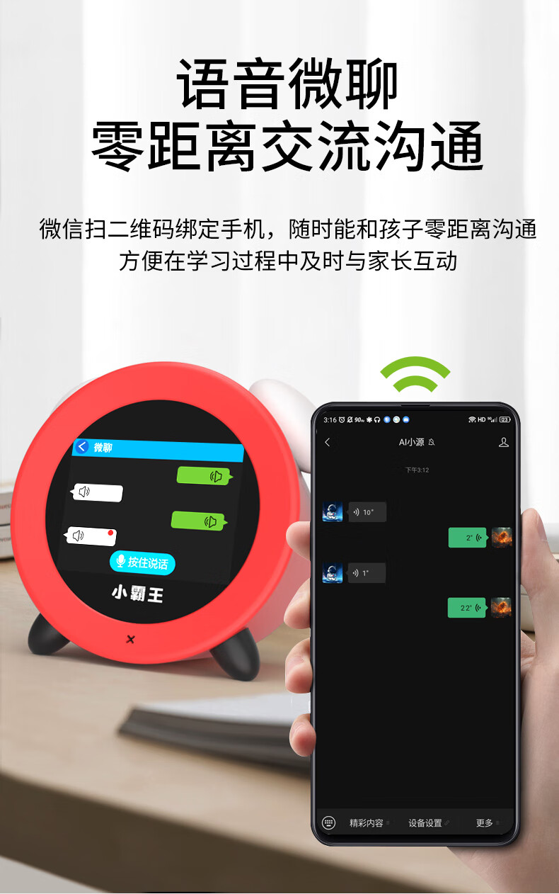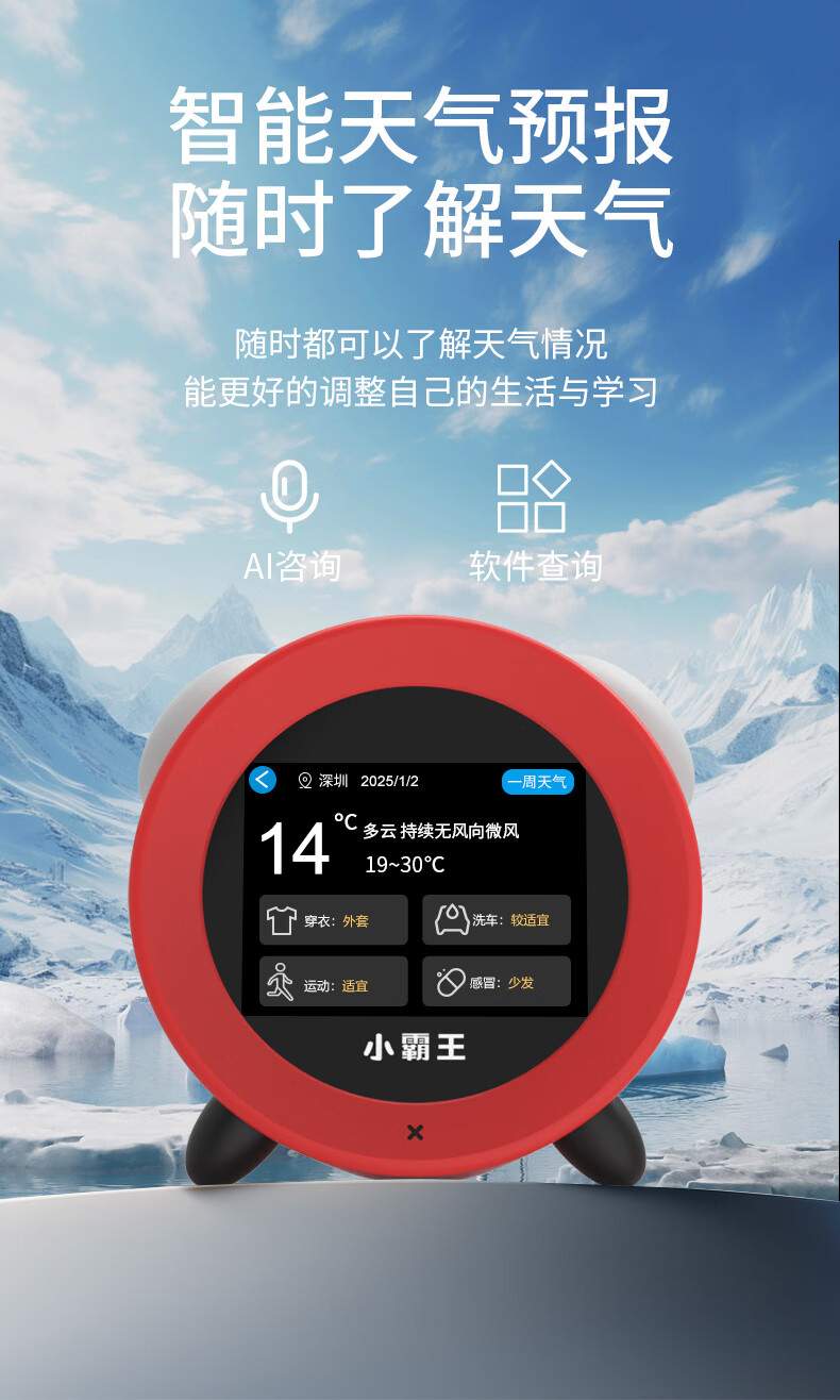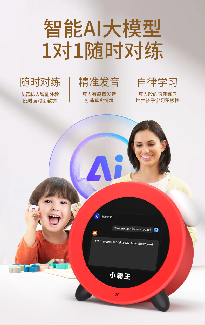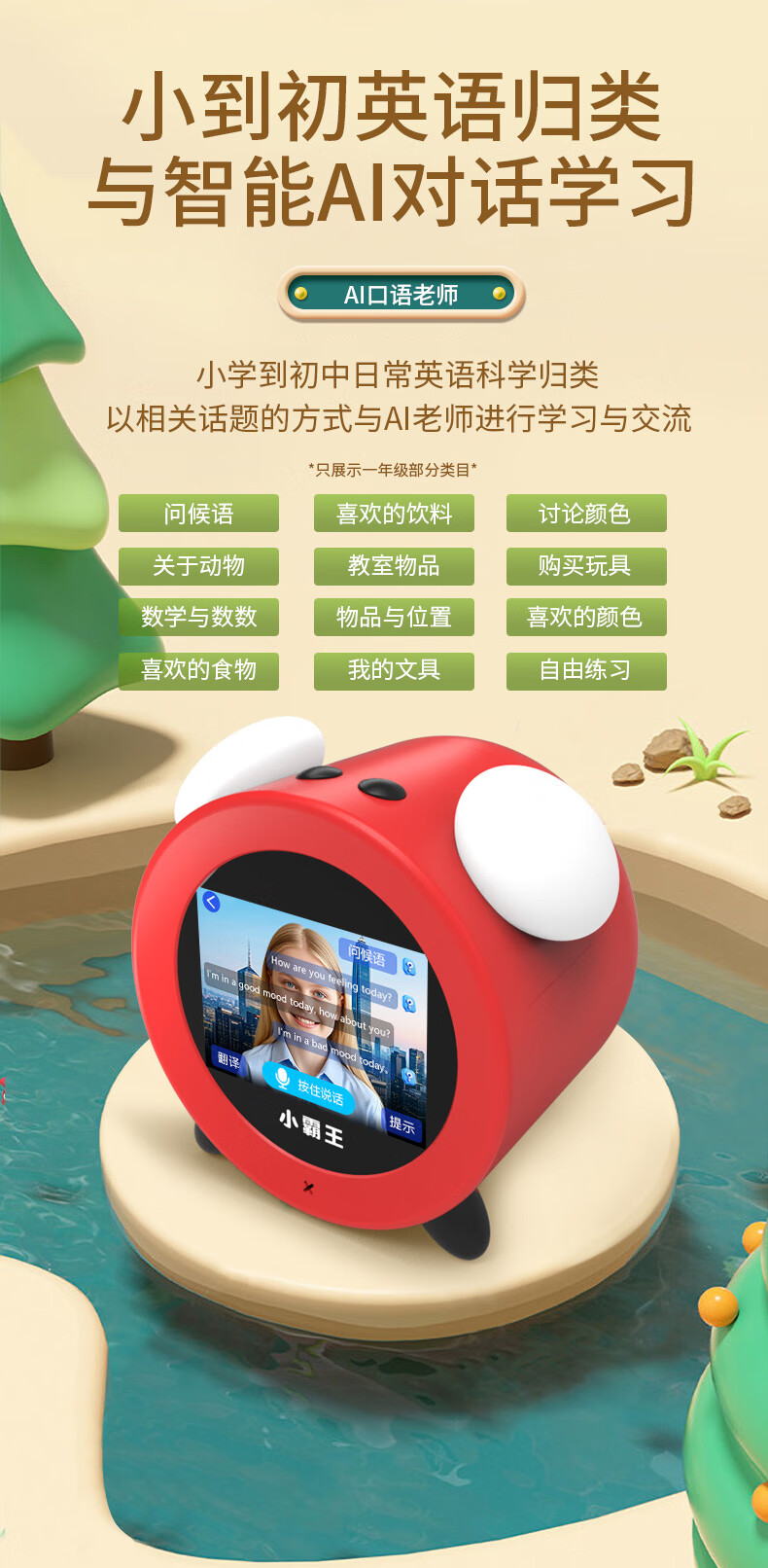 小霸王NZ01智能闹钟AI大模型语音互动学习机听儿歌故事英语学生儿童早教对话交流 红色【海量学习音频+自律管理】 智能AI大模型小初高语音互动解析