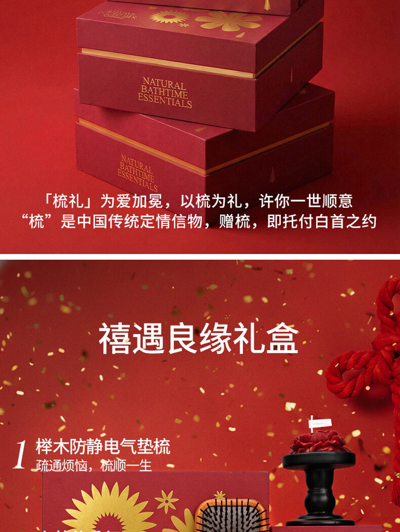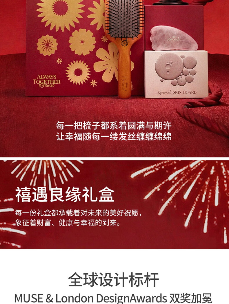 KRRAMEL生日礼物送女生送新娘高级实用梳子礼物新婚礼物 【新婚送礼首选】禧遇良缘礼盒