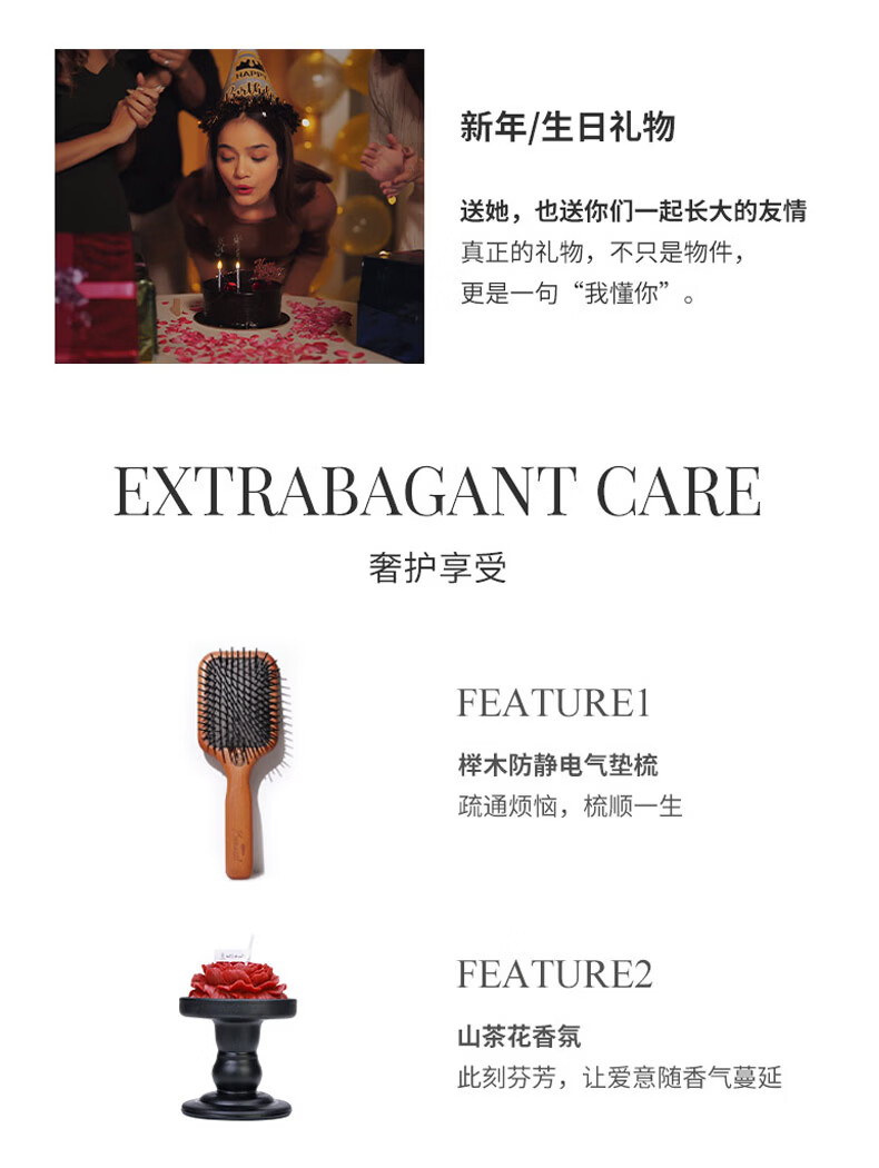 KRRAMEL生日礼物女士送女友女生小众高级实用梳子礼盒新婚礼物 粉黛礼盒【中号樱花粉松塔梳+刮痧板+香薰】
